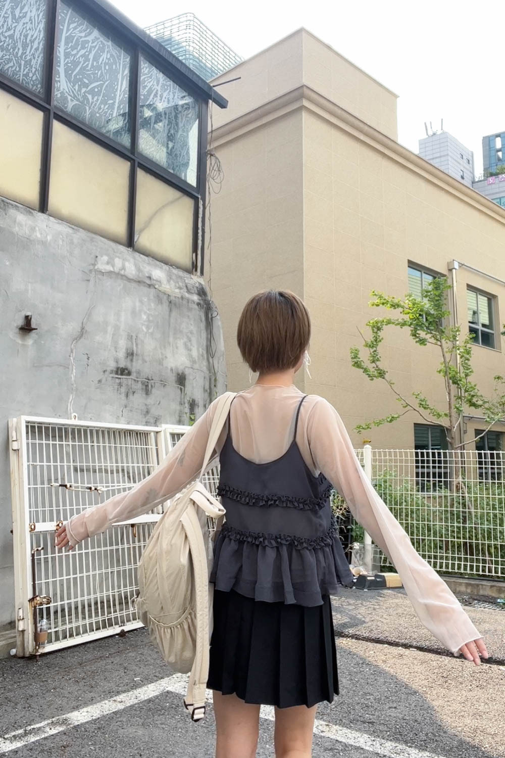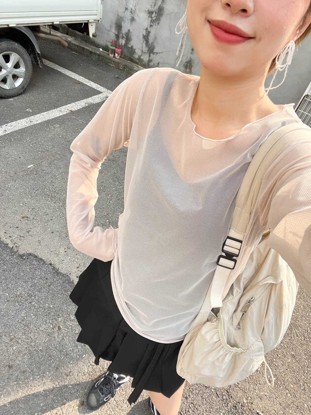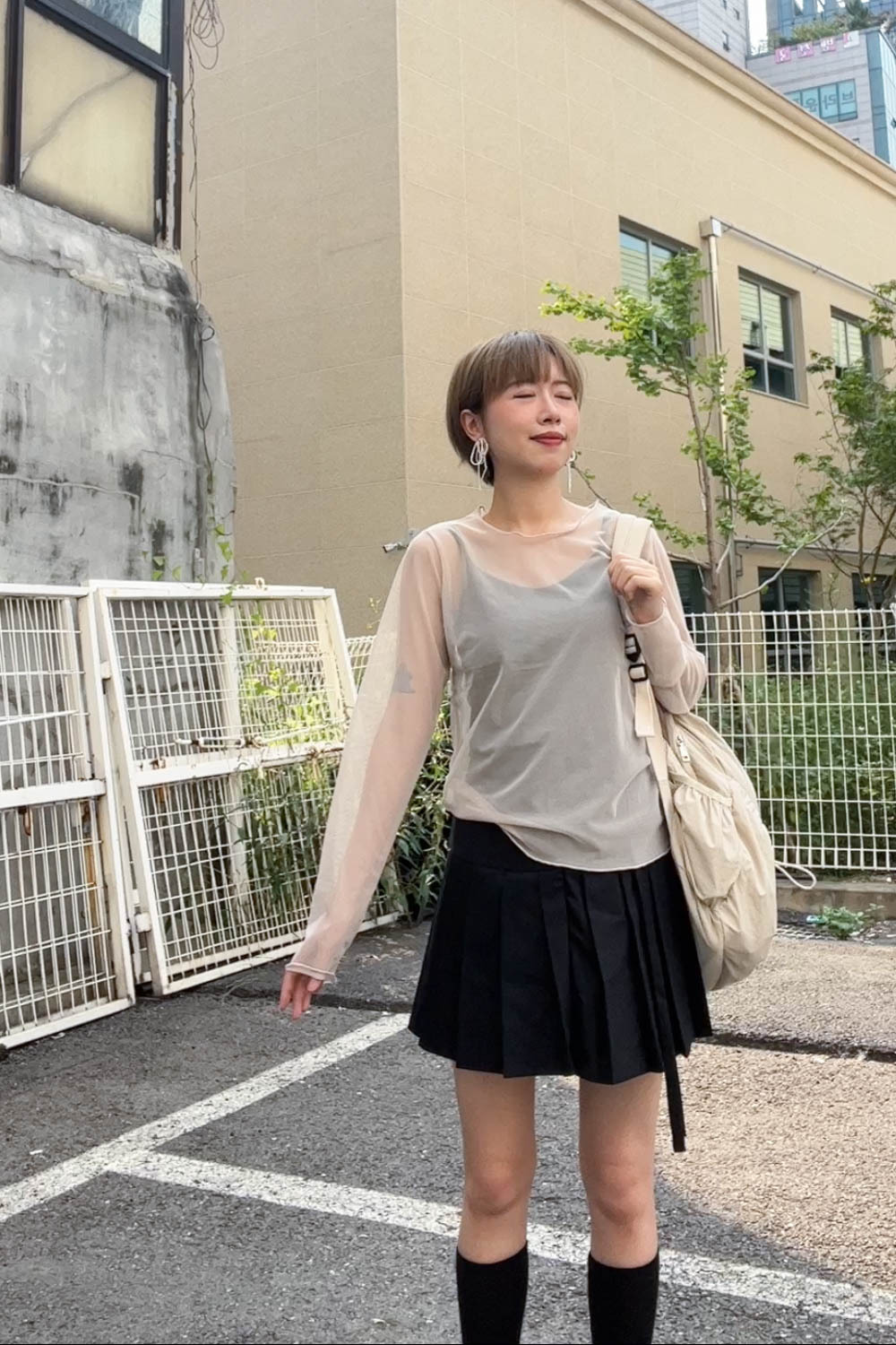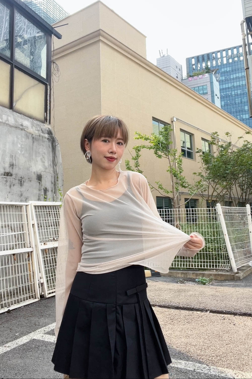 皺增加造型感/ 可作內搭或 外穿在貼身上衣 / 米白溫柔/黑色百搭/綠色時尚