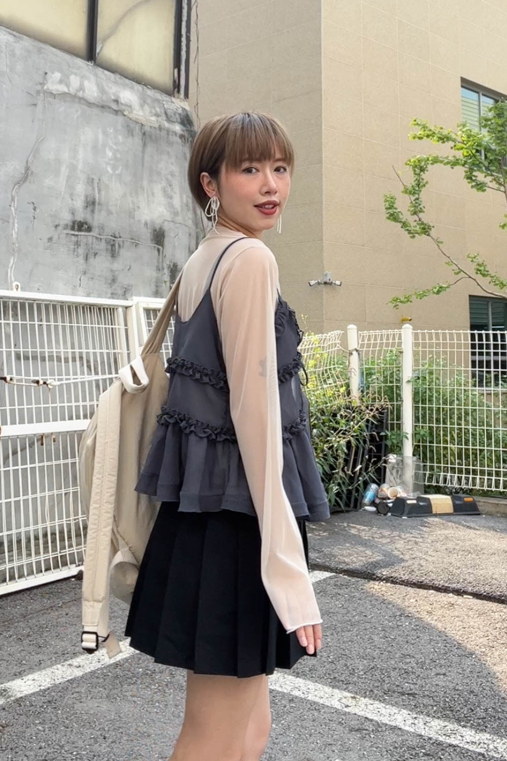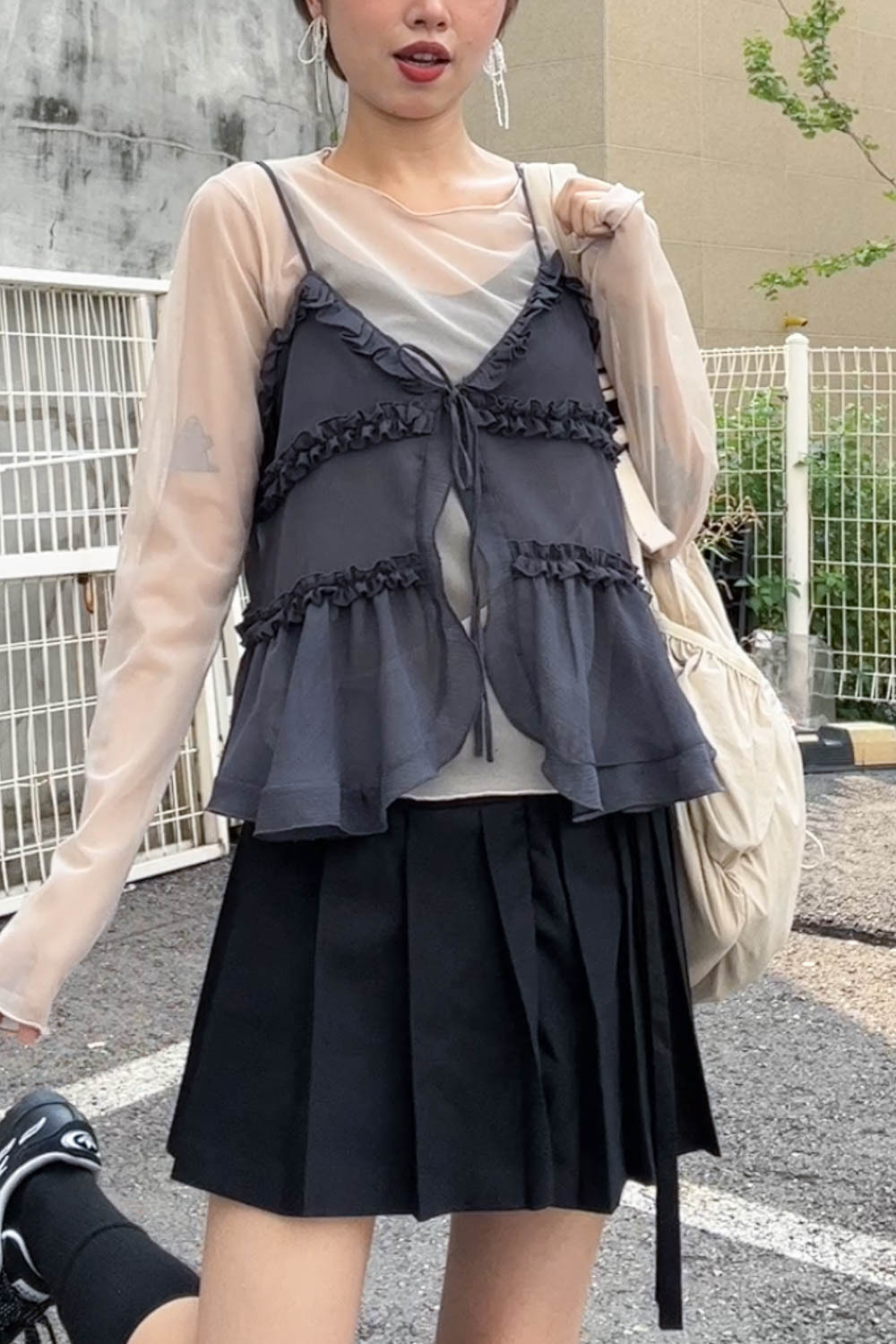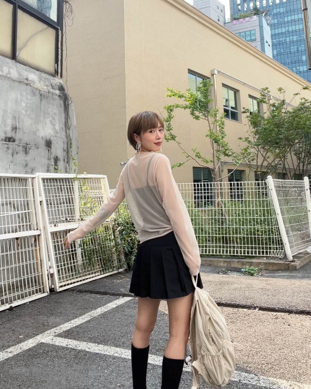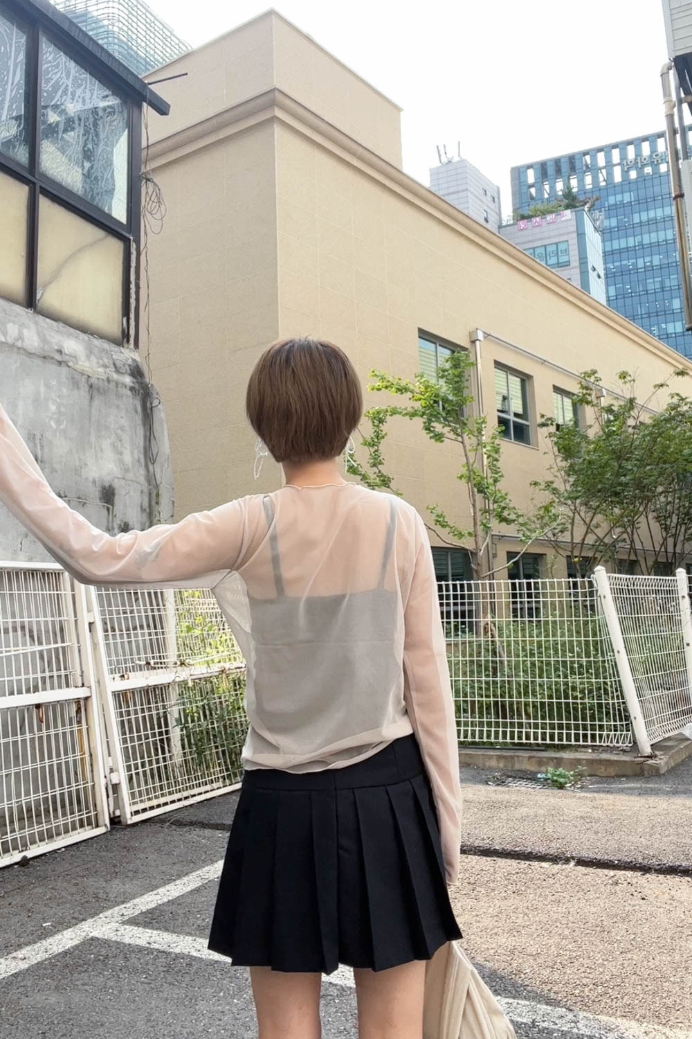 皺增加造型感/ 可作內搭或 外穿在貼身上衣 / 米白溫柔/黑色百搭/綠色時尚