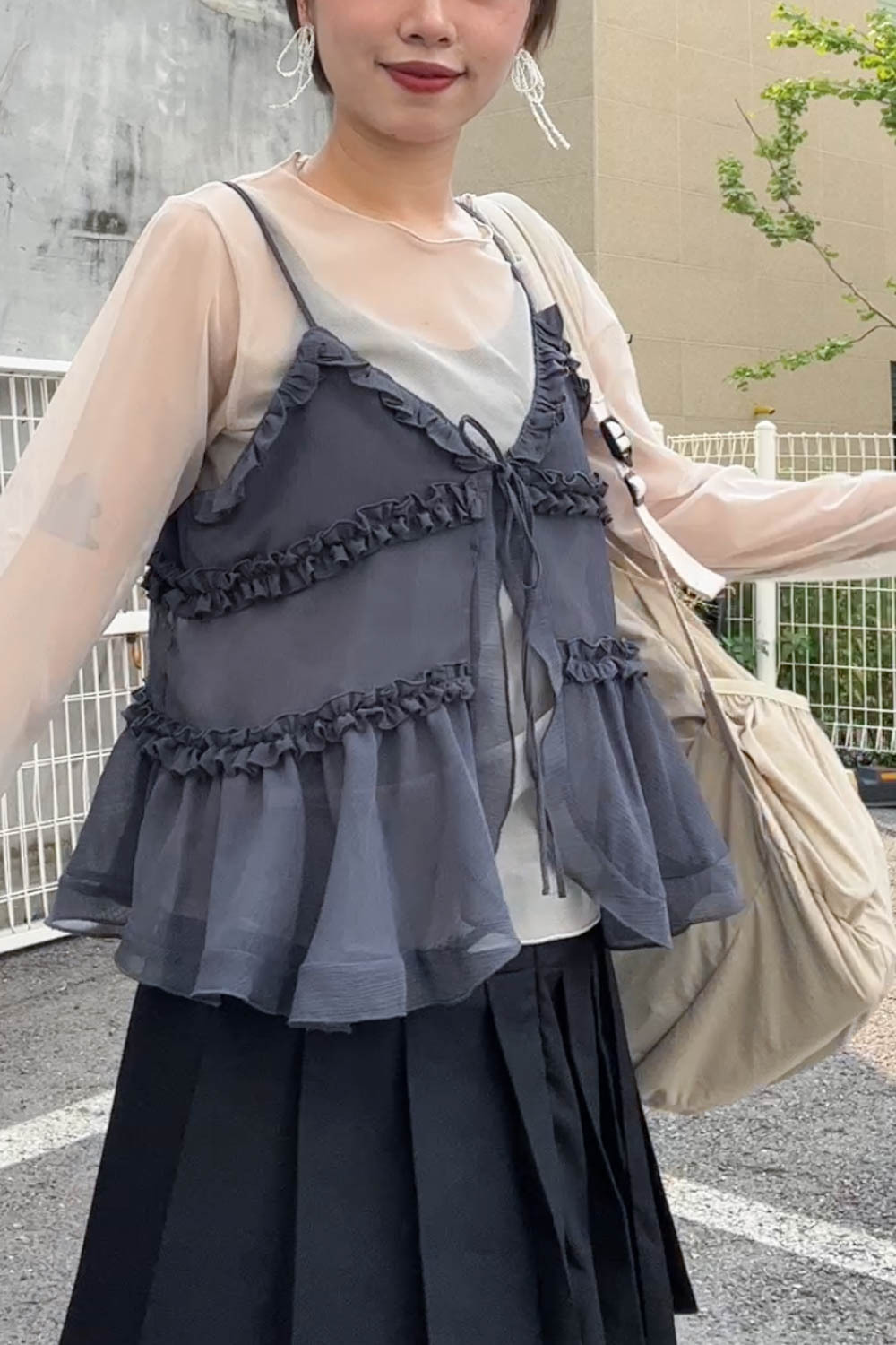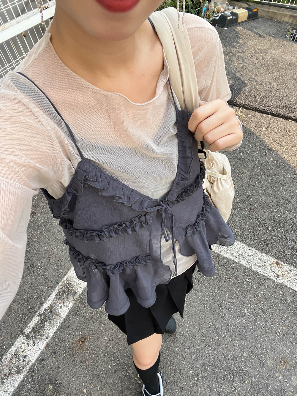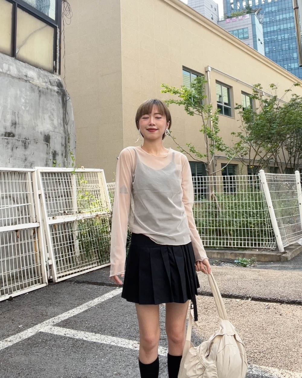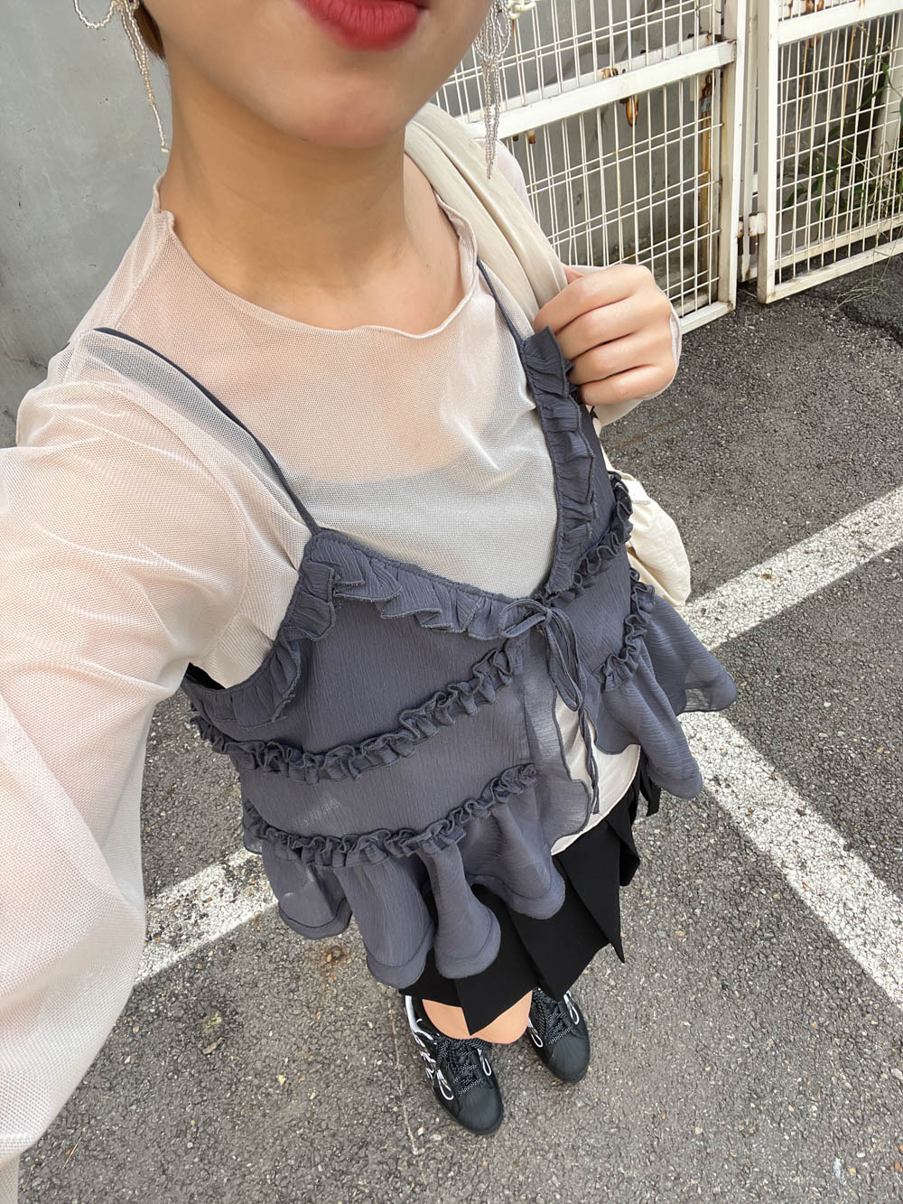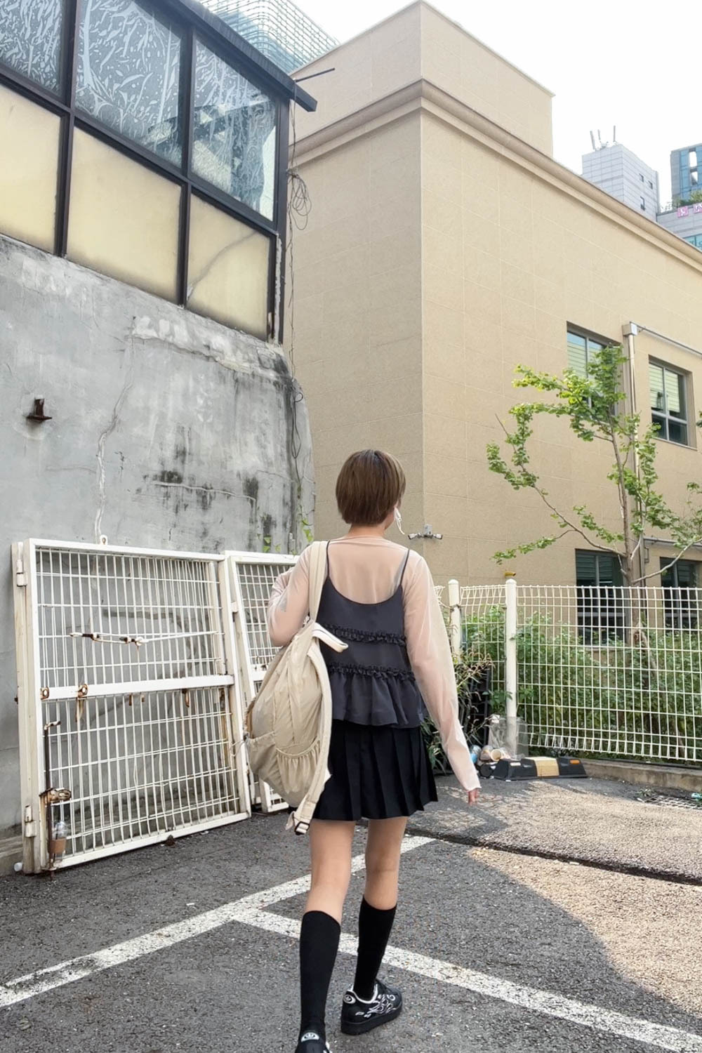 皺增加造型感/ 可作內搭或 外穿在貼身上衣 / 米白溫柔/黑色百搭/綠色時尚