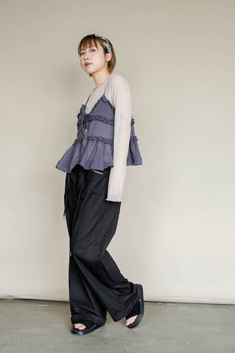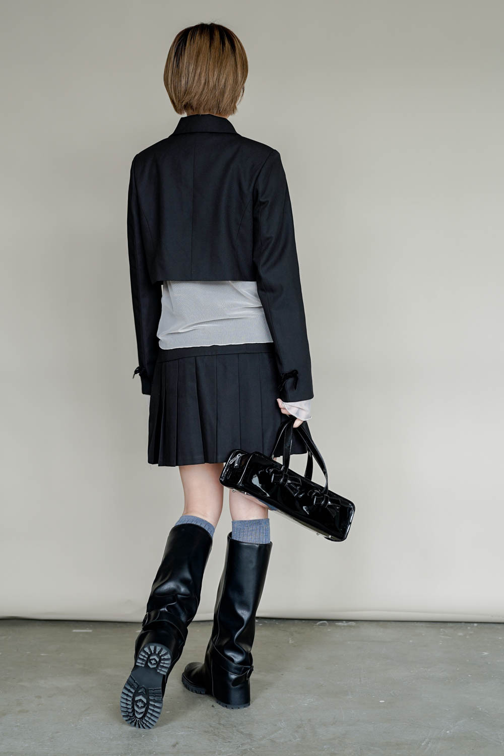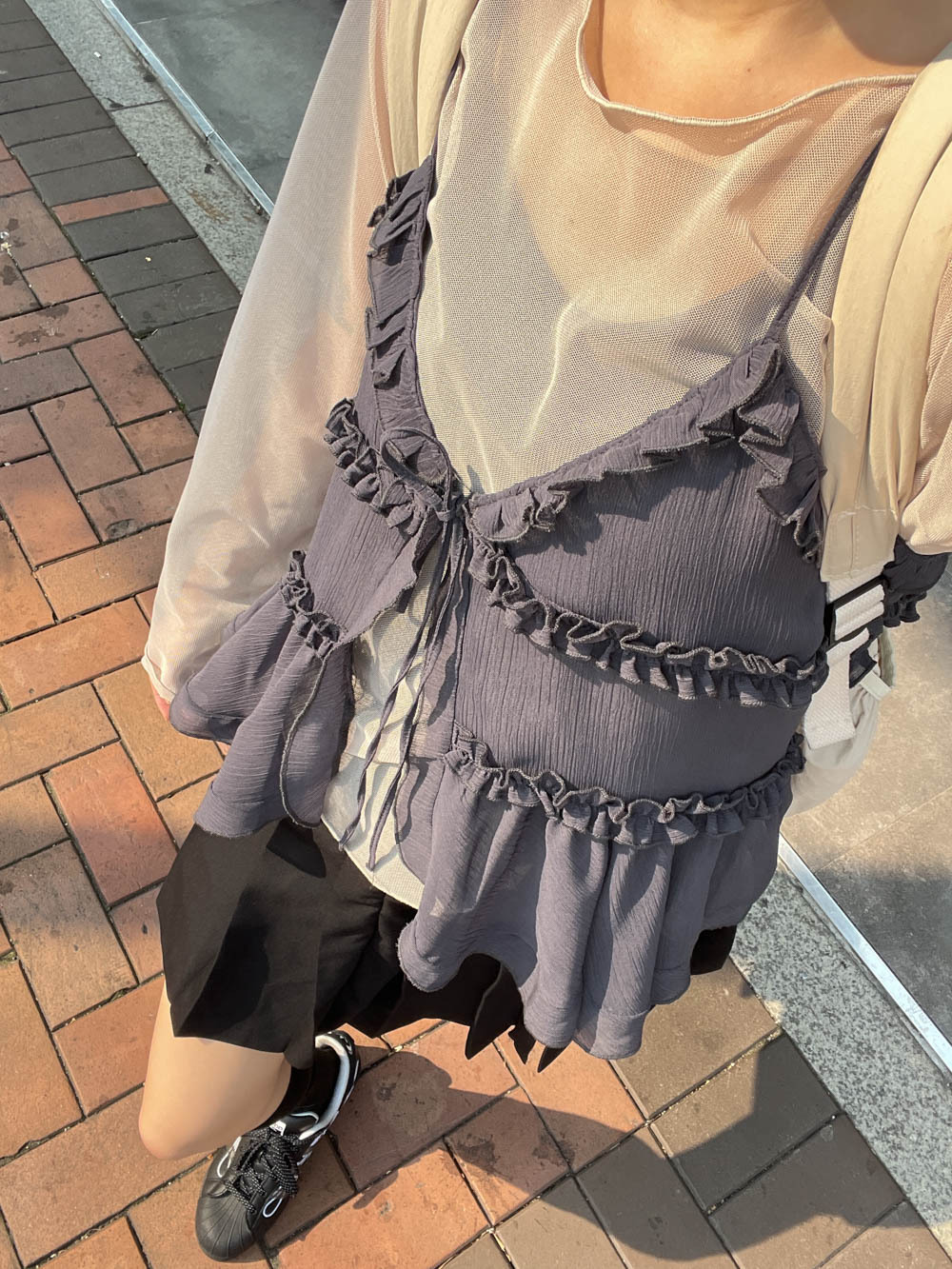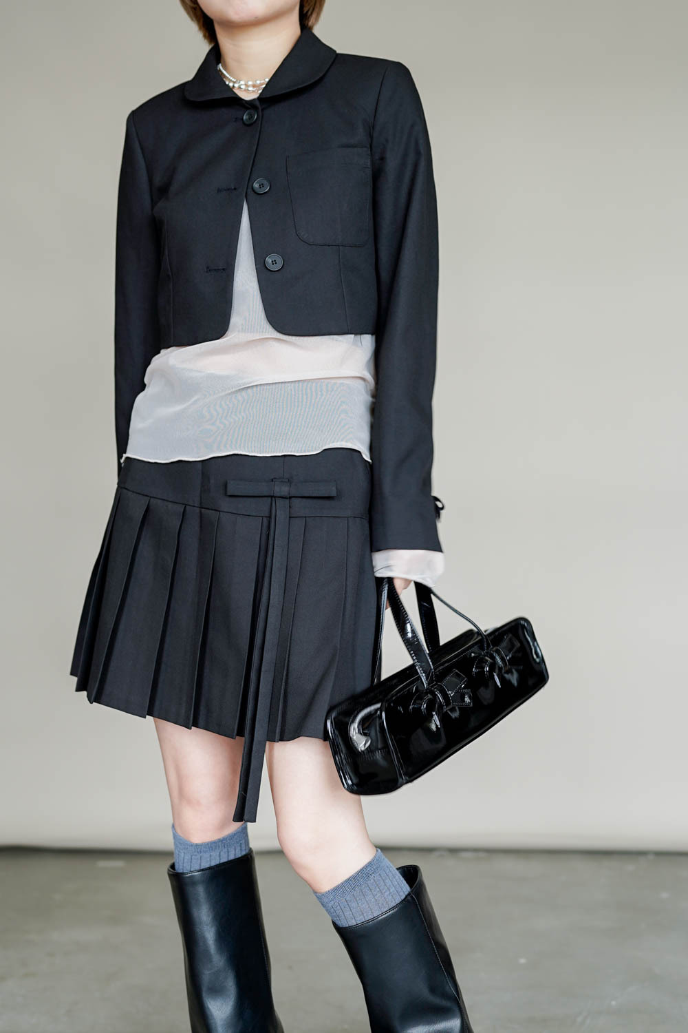 皺增加造型感/ 可作內搭或 外穿在貼身上衣 / 米白溫柔/黑色百搭/綠色時尚