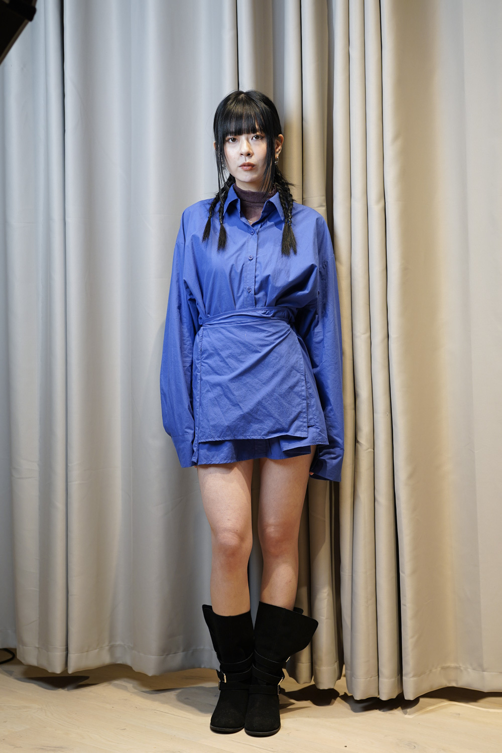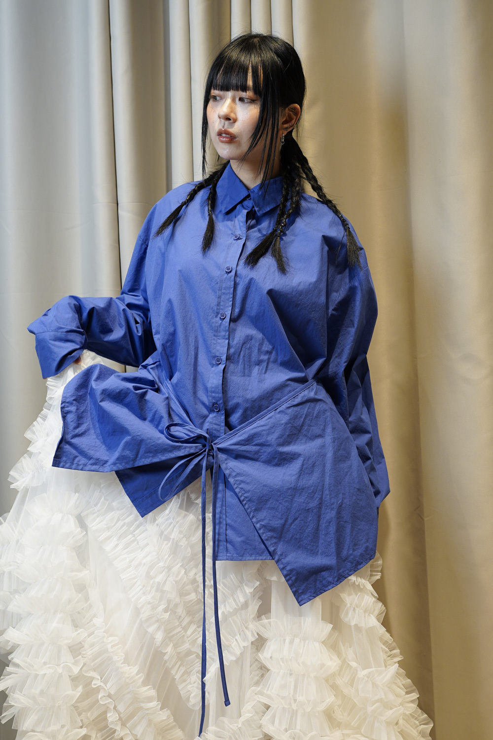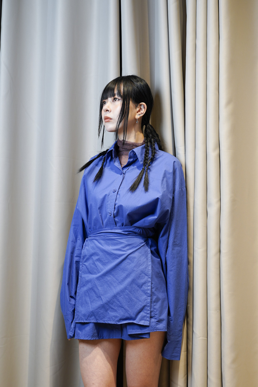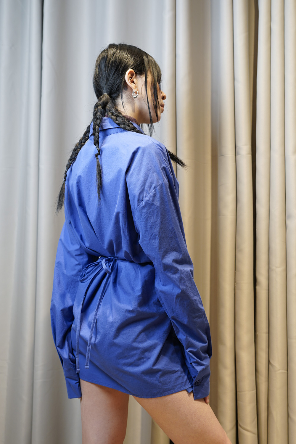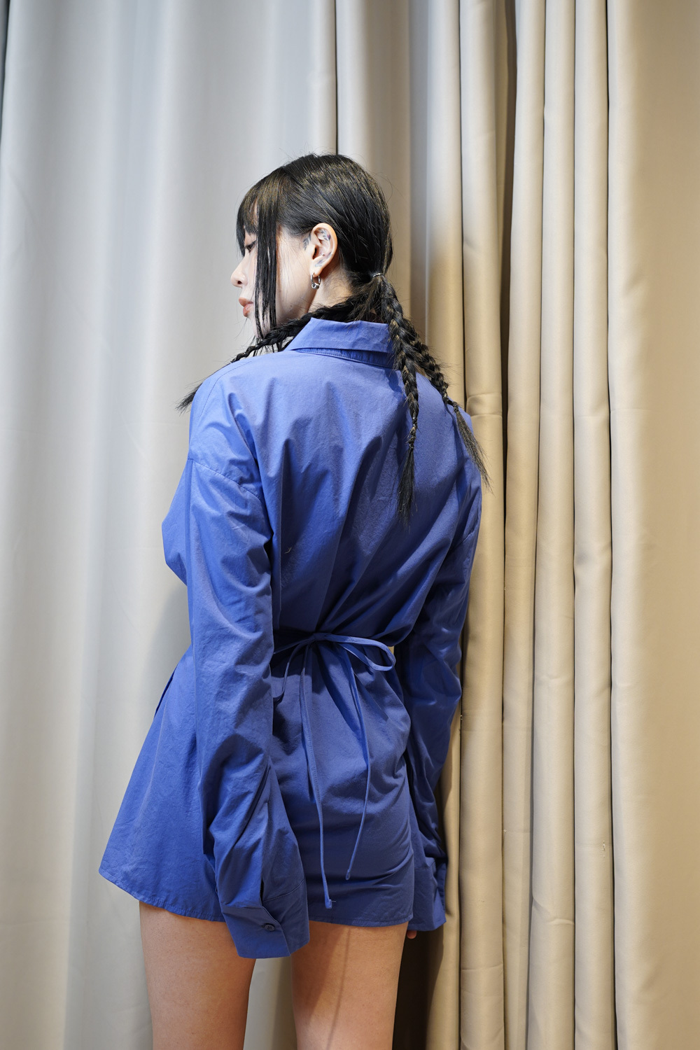 Layering wrapping shirtdress (WHITE/ BLUE)