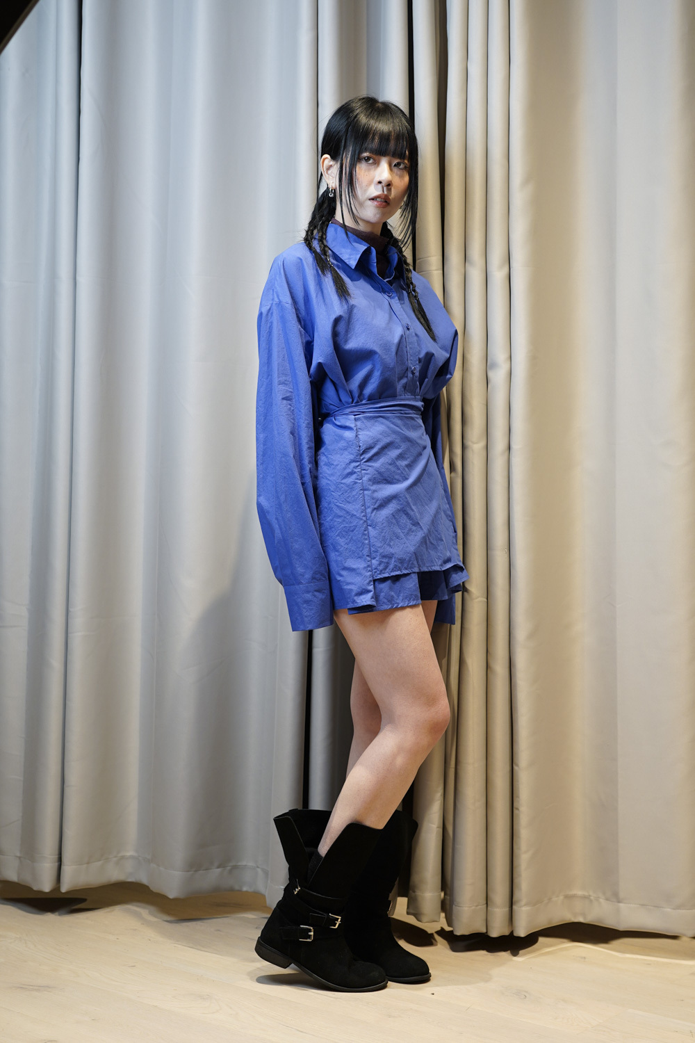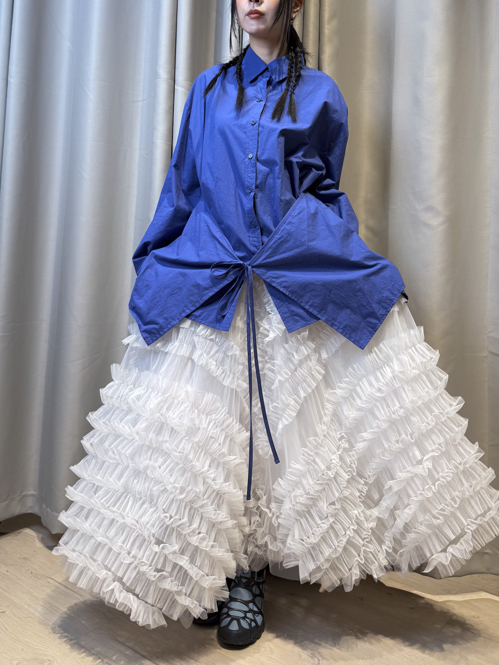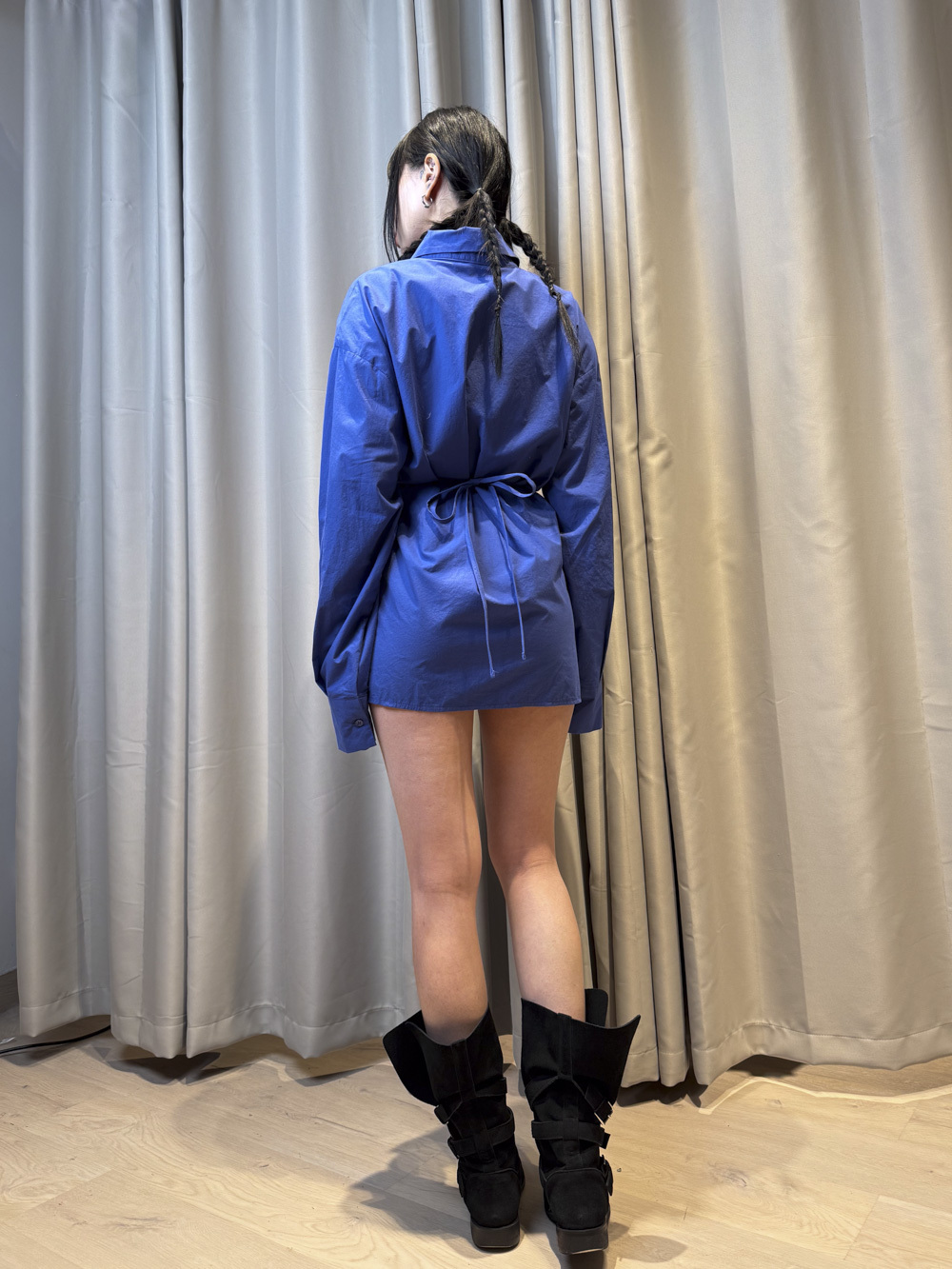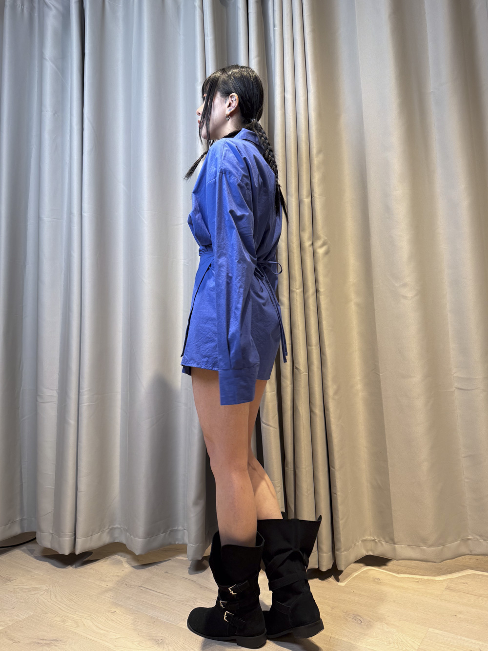 Layering wrapping shirtdress (WHITE/ BLUE)