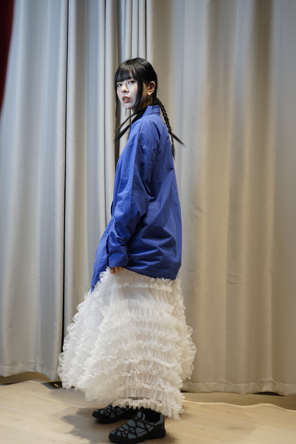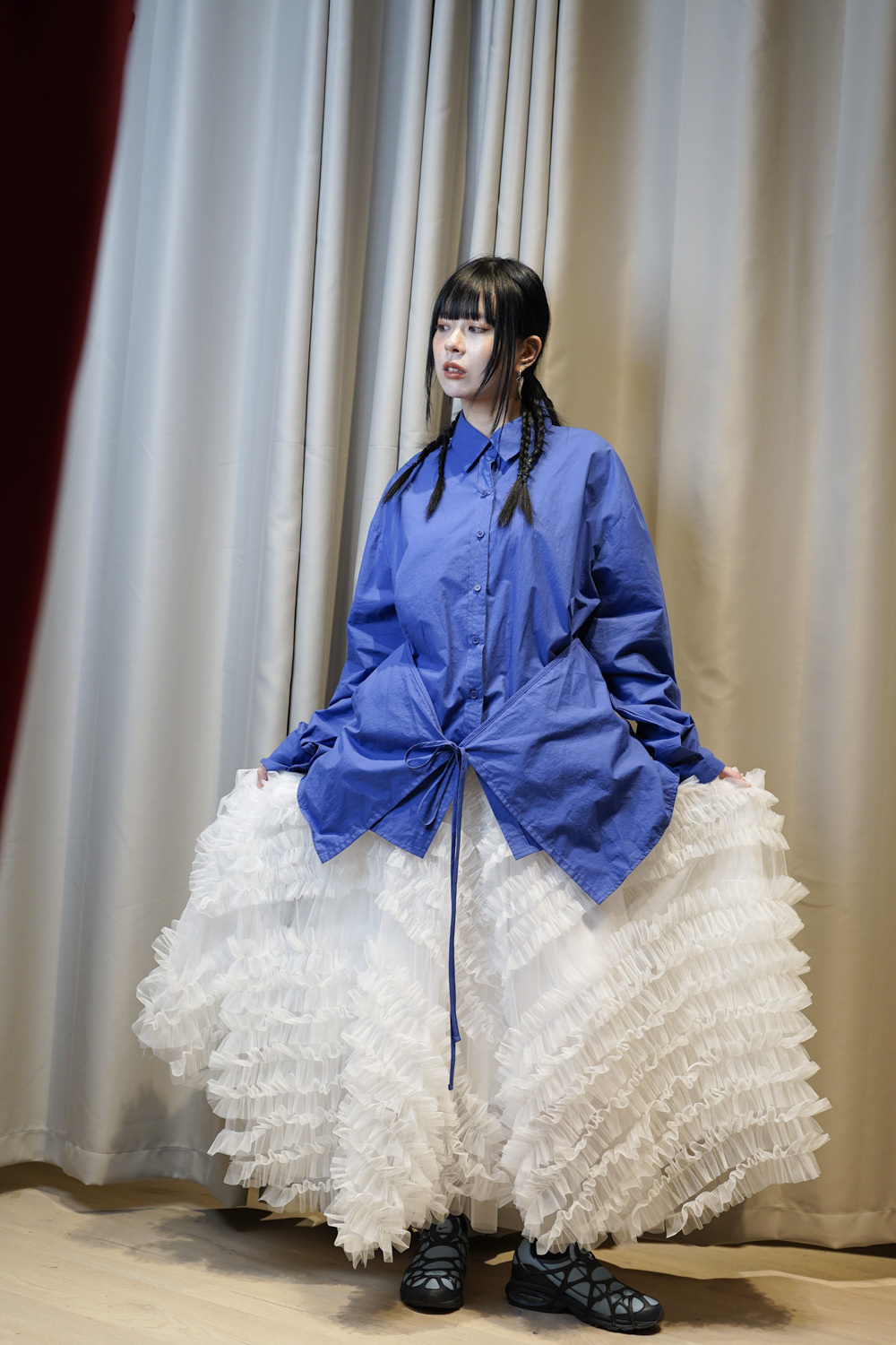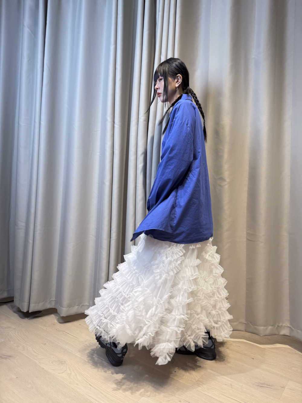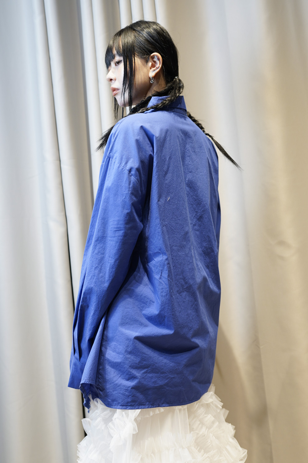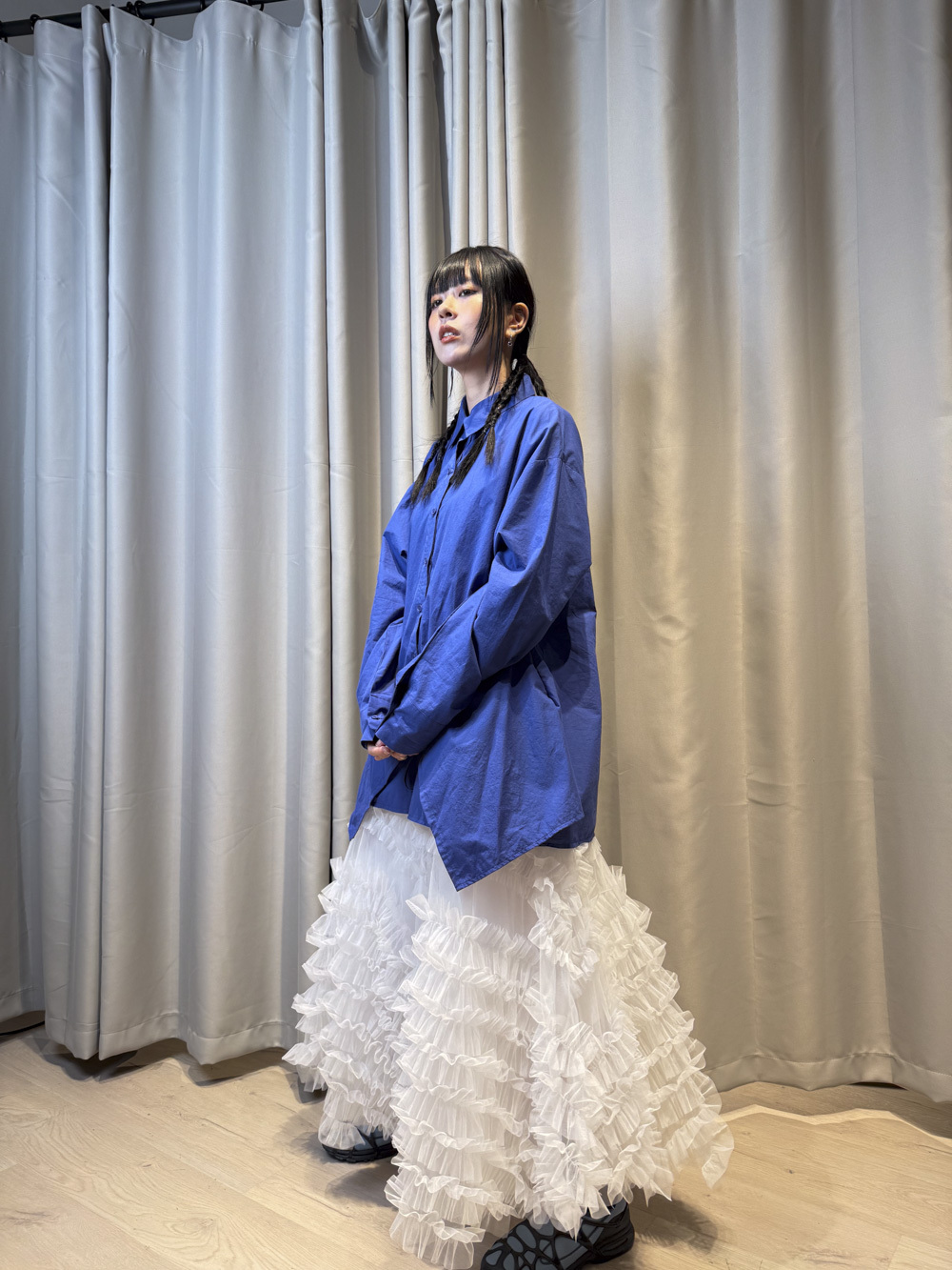 Layering wrapping shirtdress (WHITE/ BLUE)
