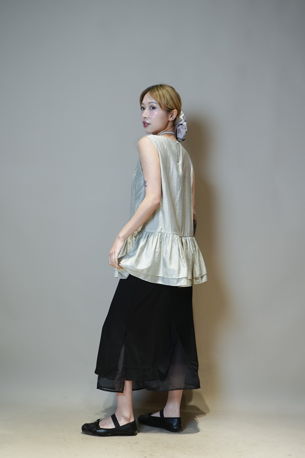 Layers Sheer Skirt - (GREY/BLACK) - free size