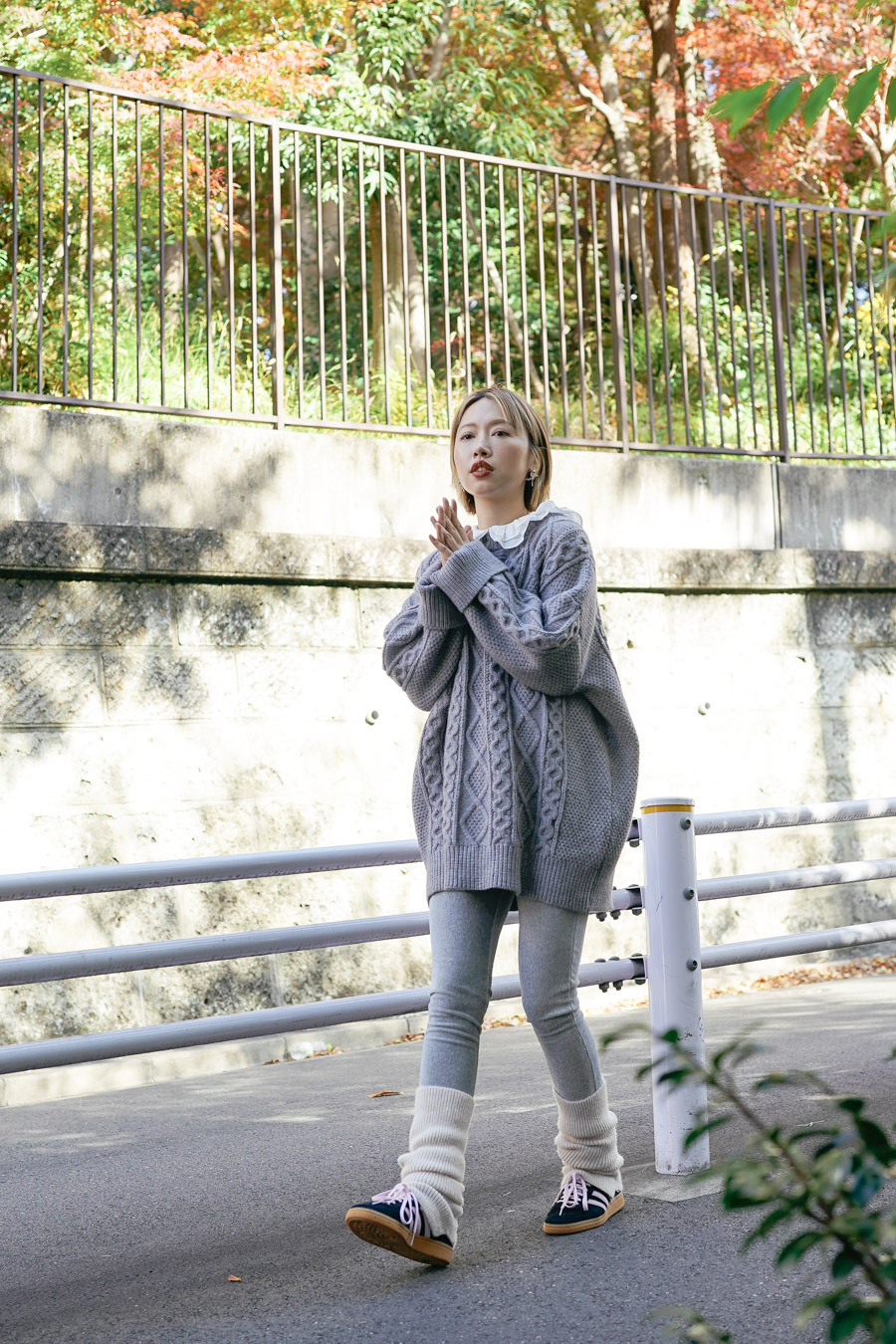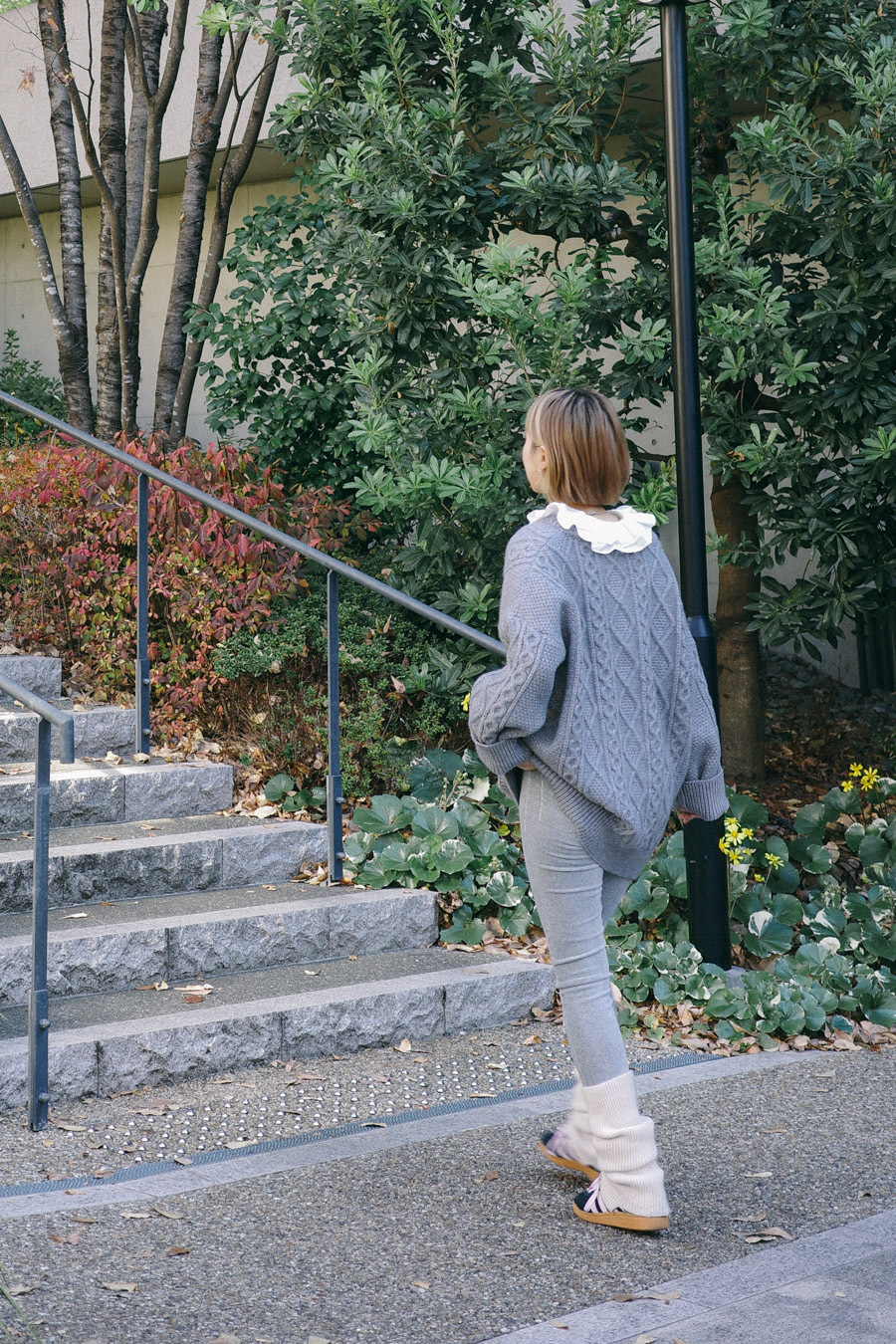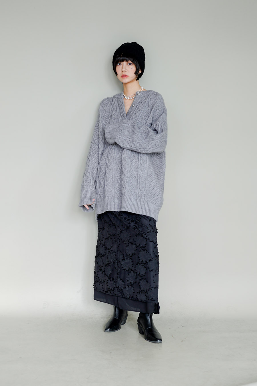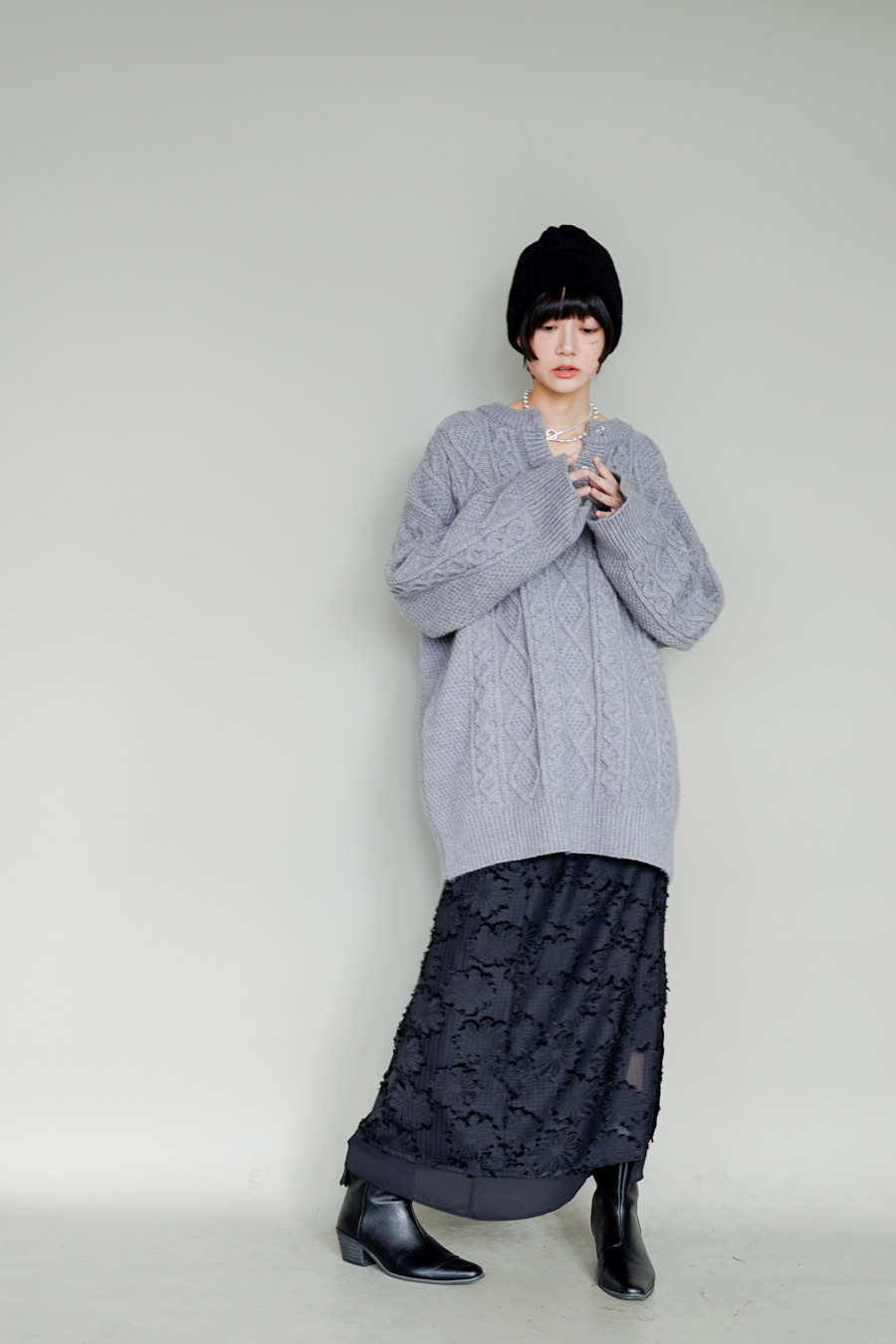 Loose cable knit with front buttons (GREY) -wool 45% , Alpaca 15%