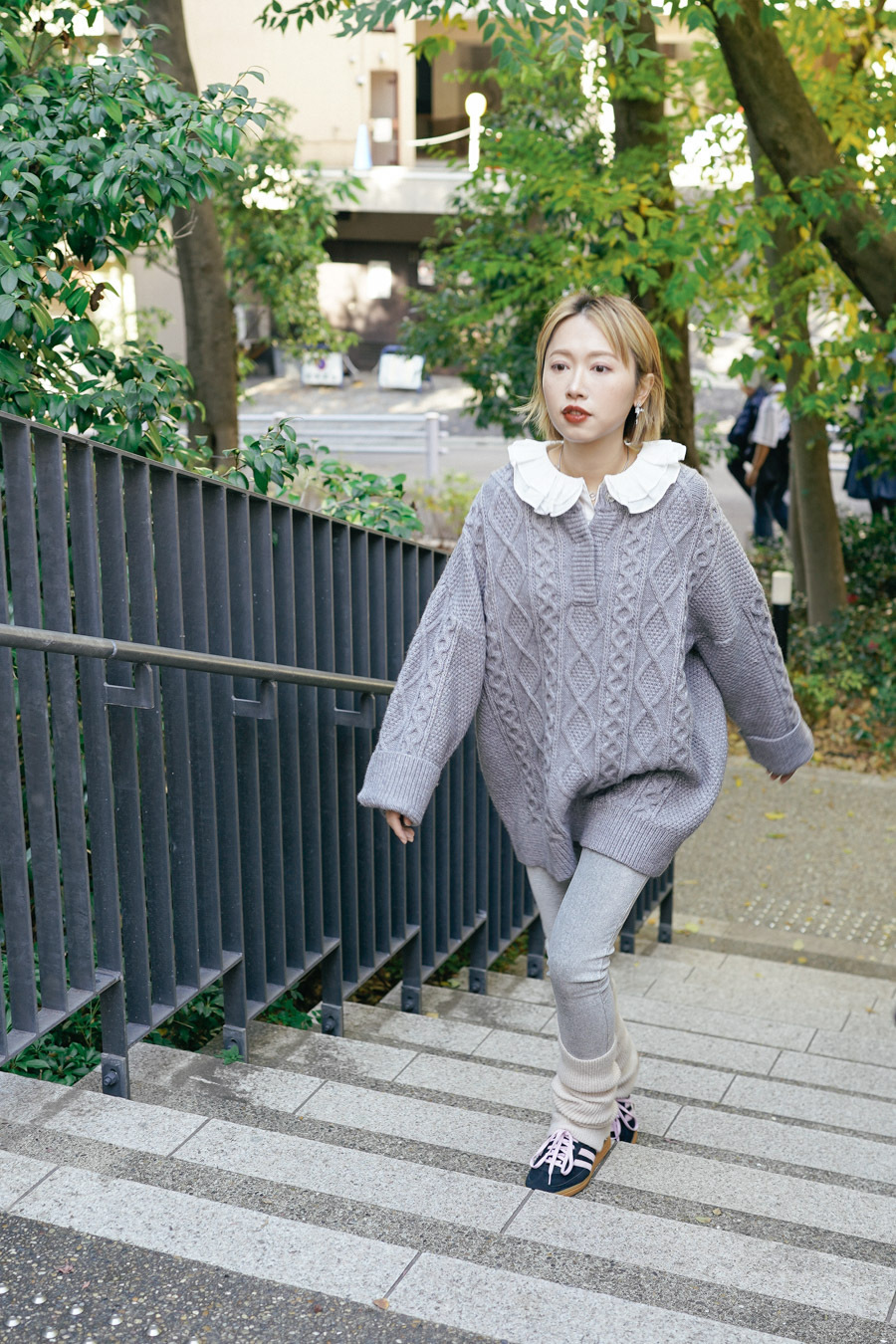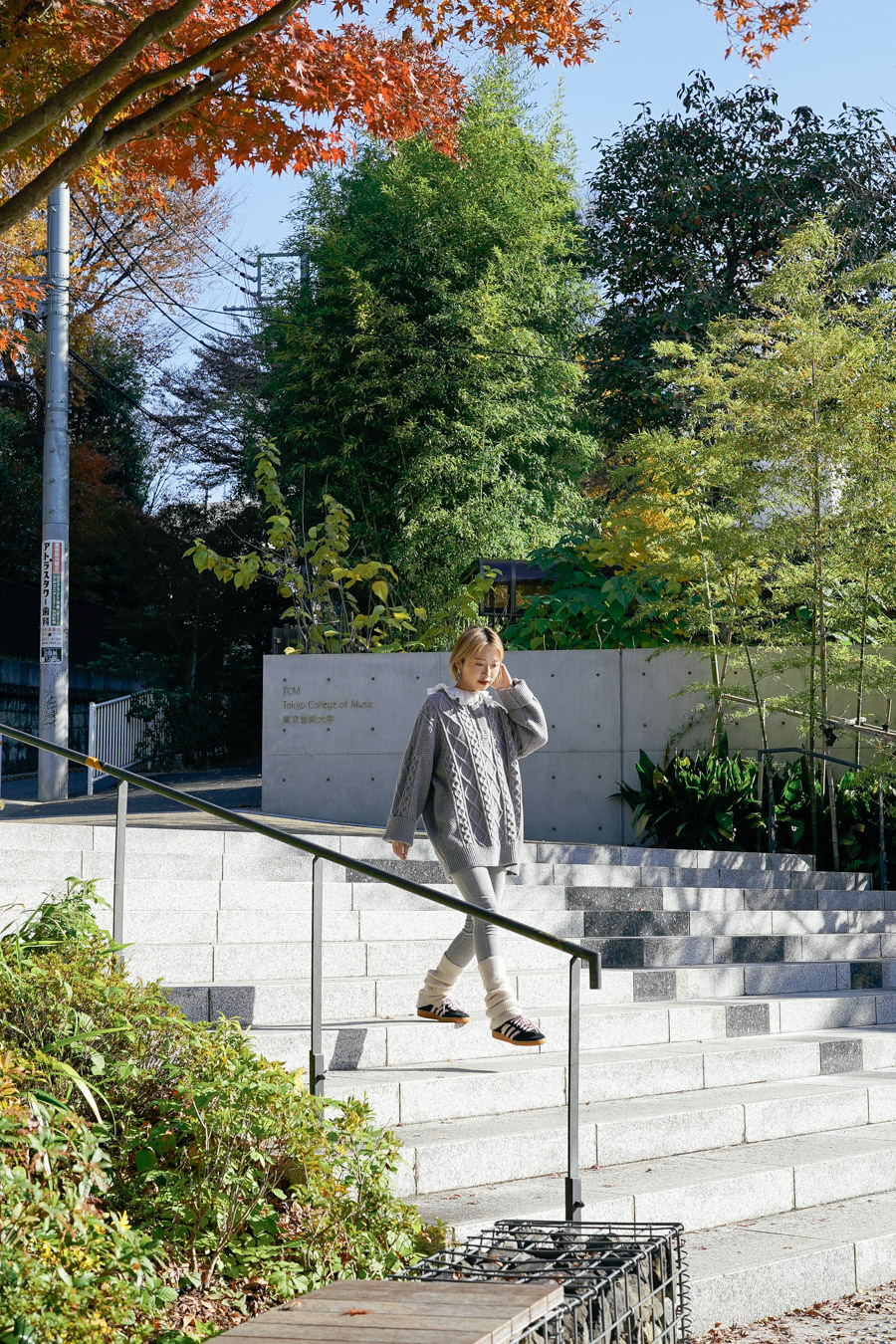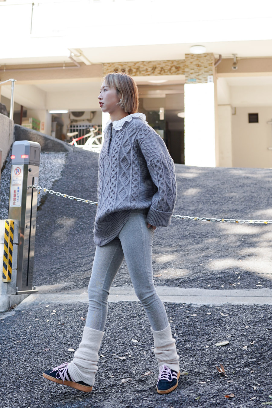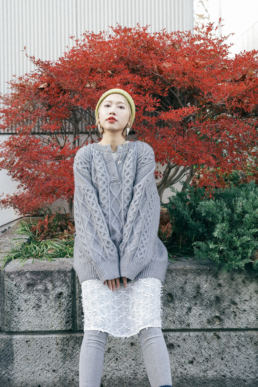 Loose cable knit with front buttons (GREY) -wool 45% , Alpaca 15%