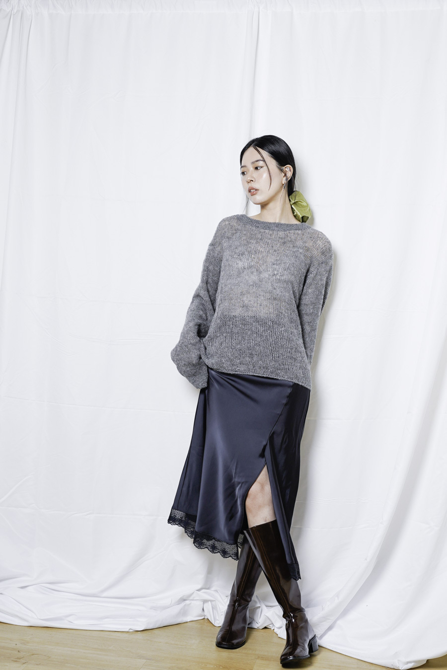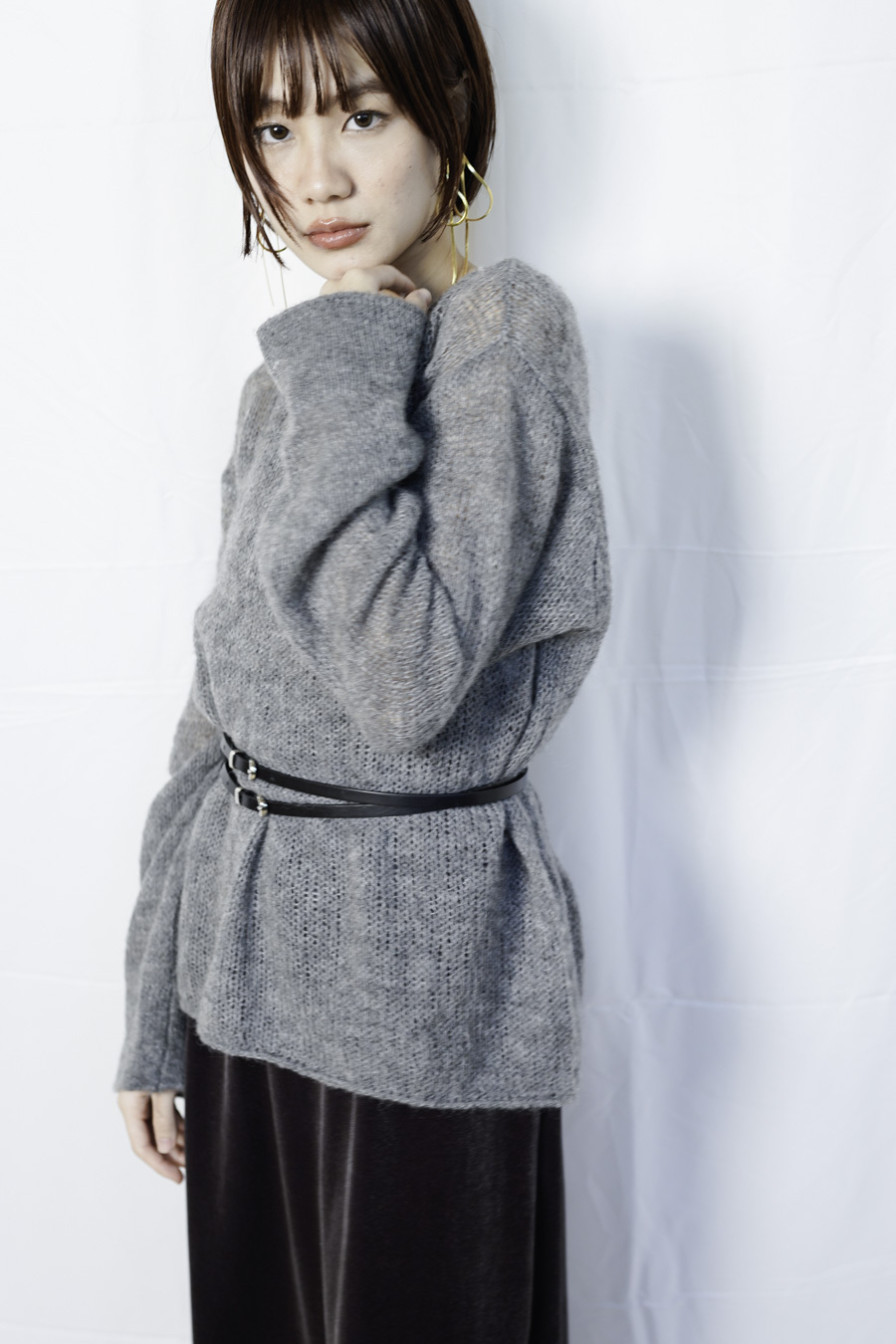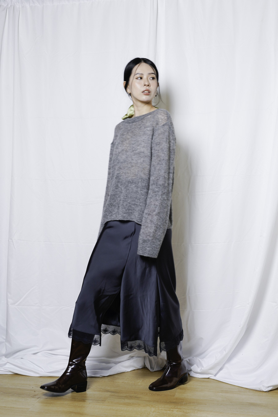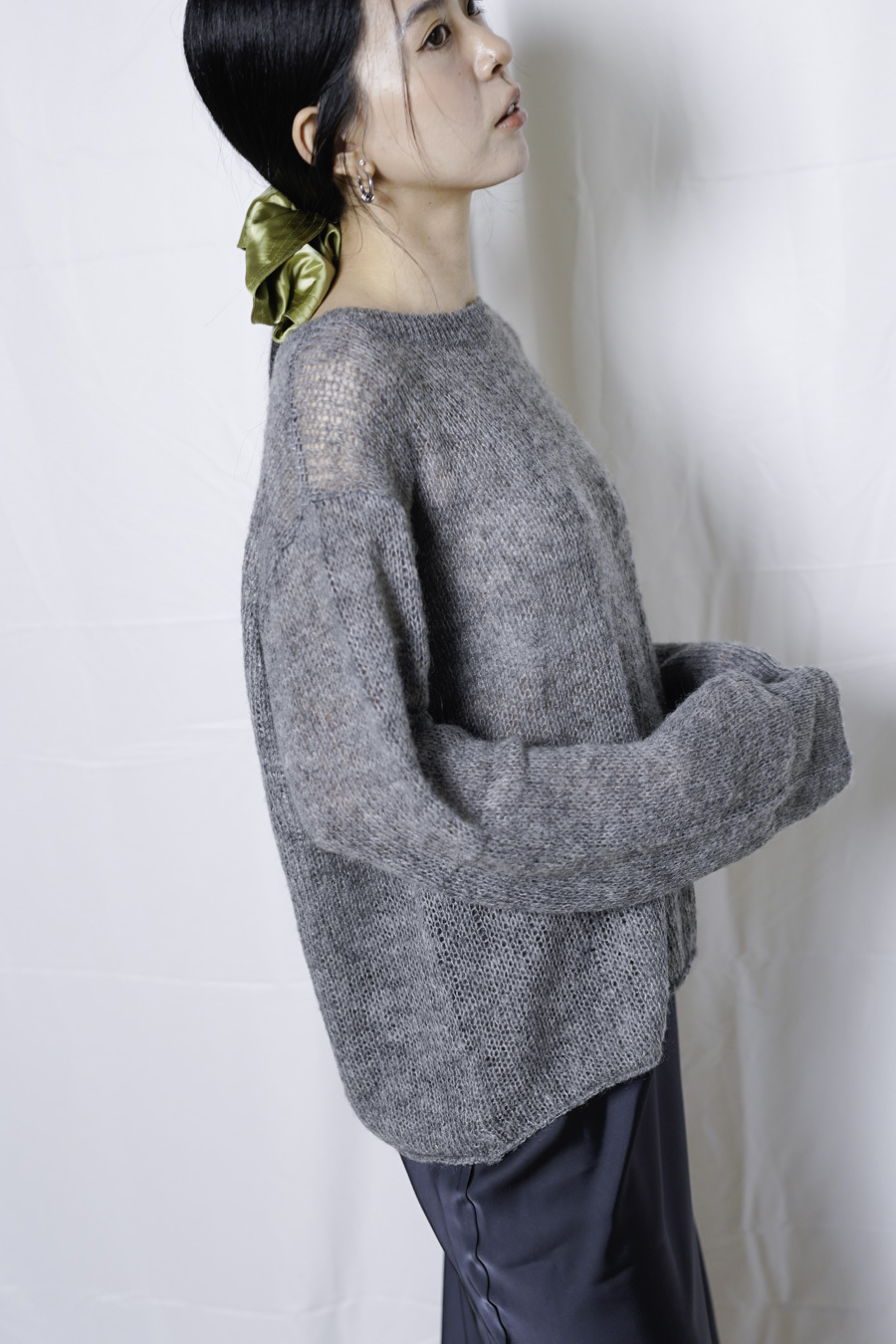loose knit (mohair 40% ,wool 20%) - (PURPLE/ GREY)