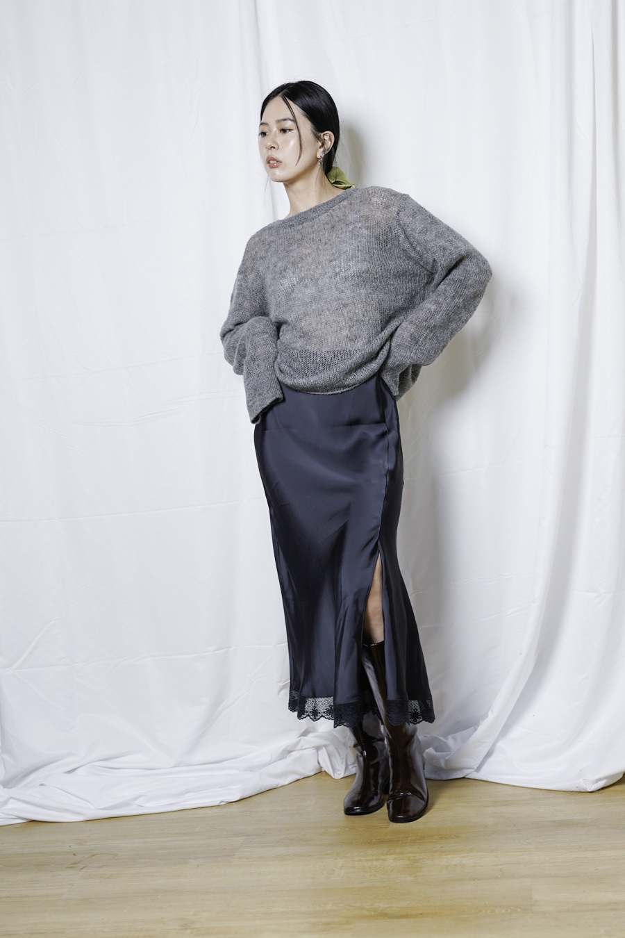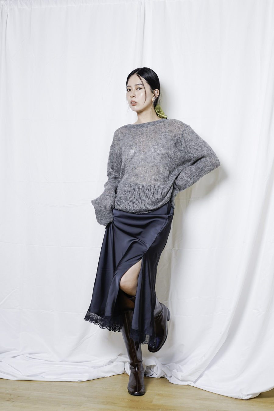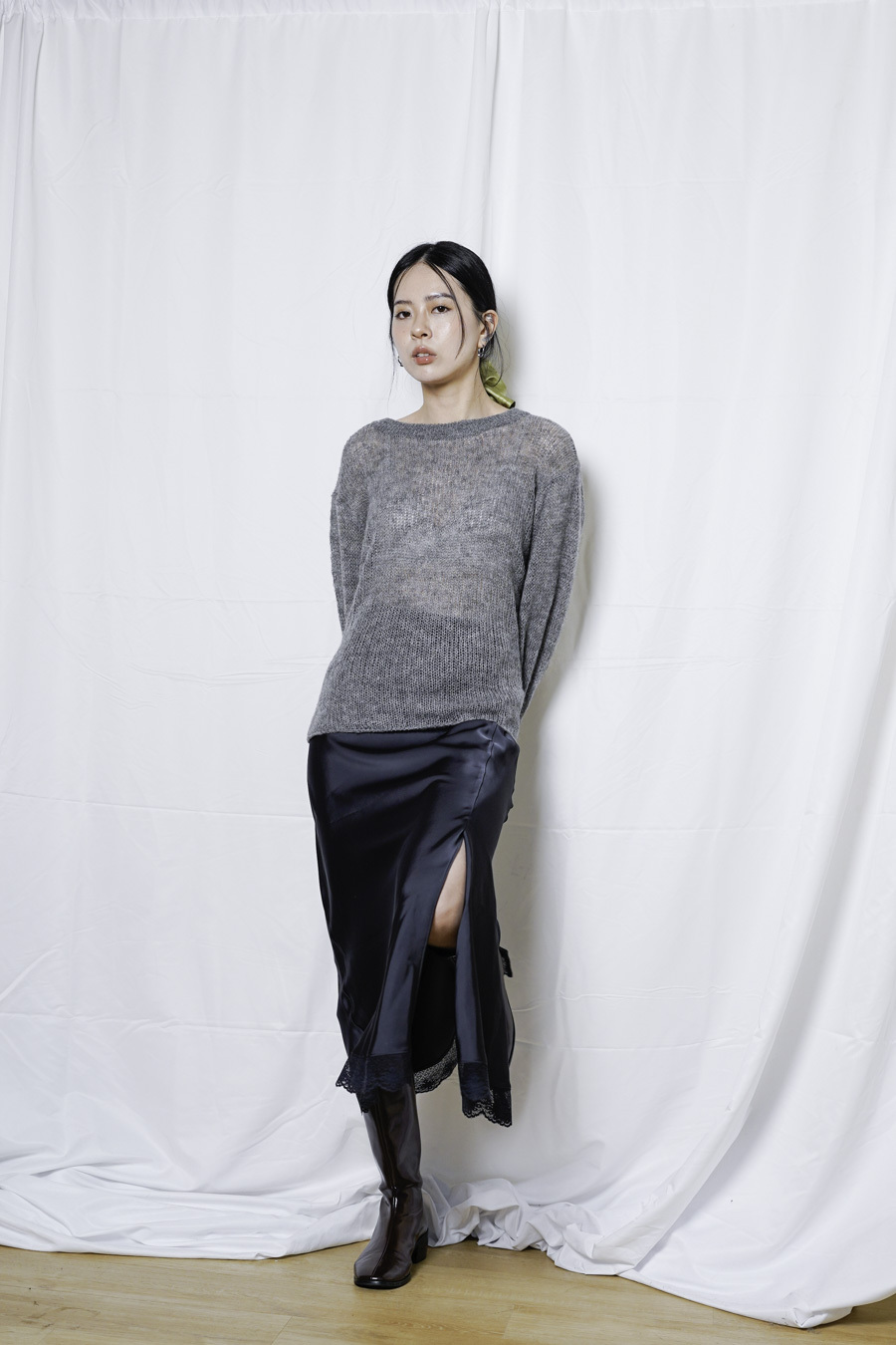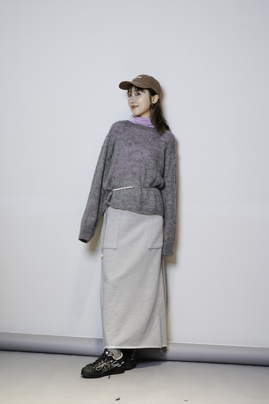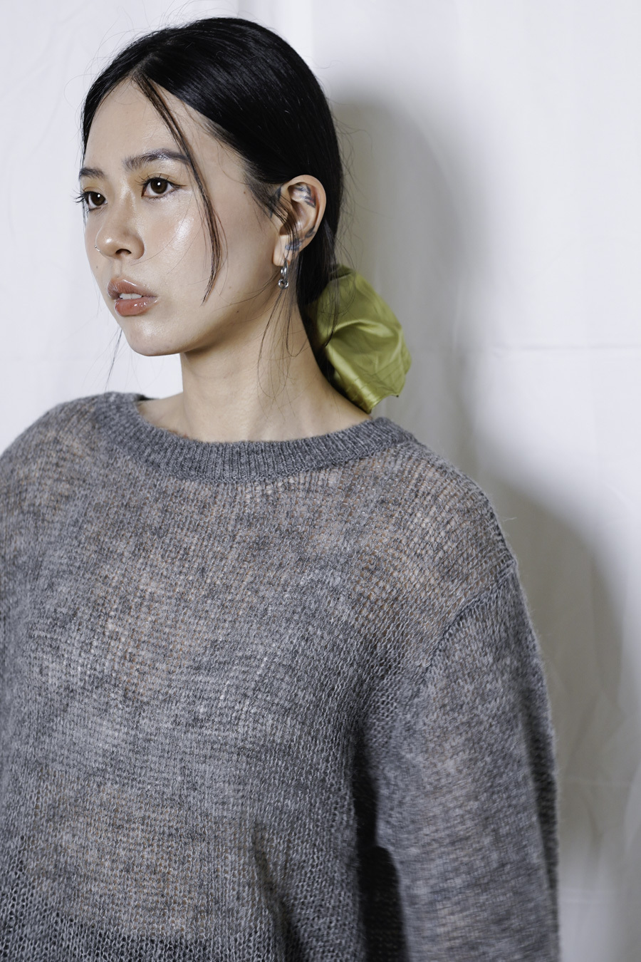 loose knit (mohair 40% ,wool 20%) - (PURPLE/ GREY)