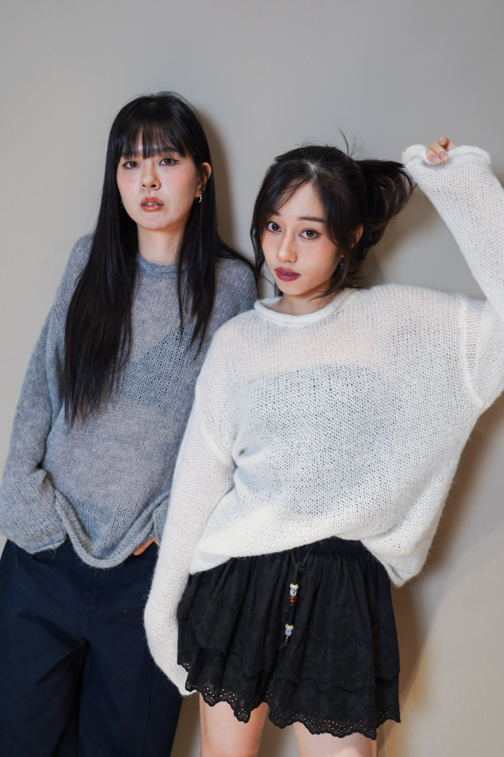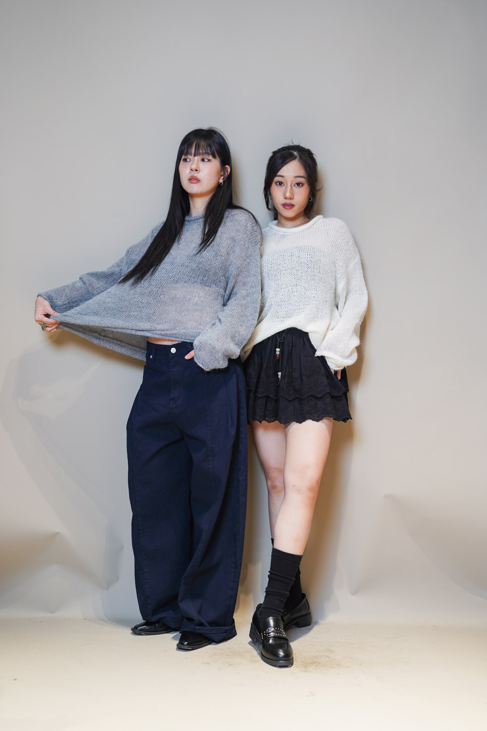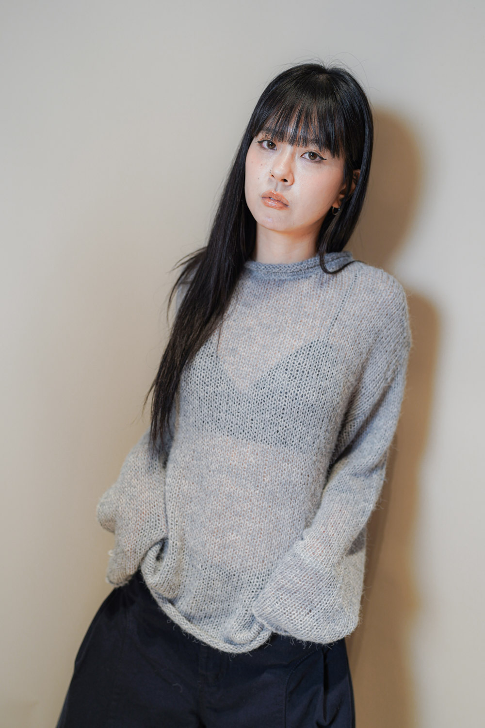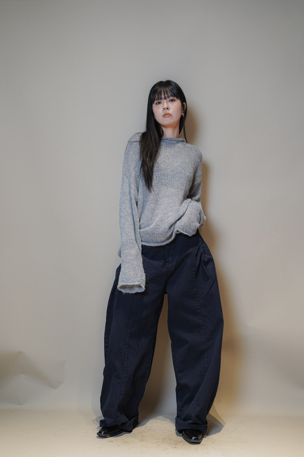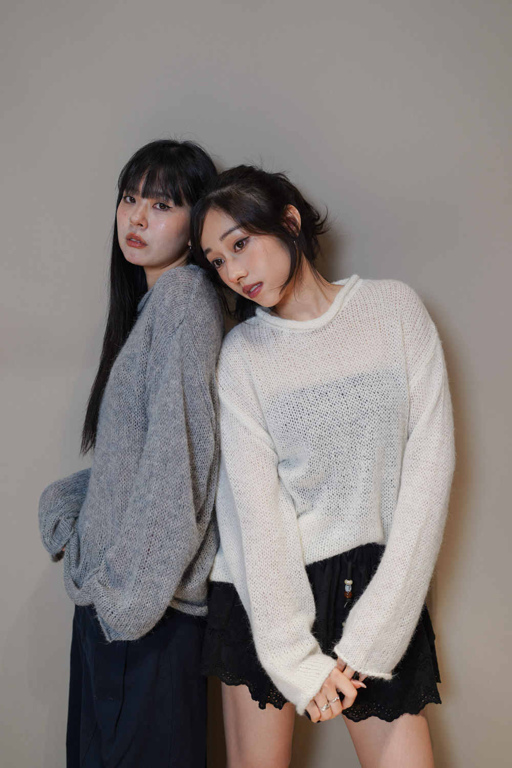 Loose knit roll neck top (WHITE/GREY) -wool 10%