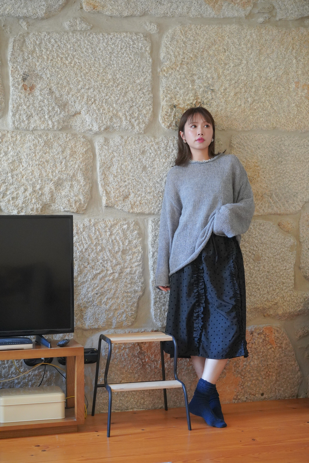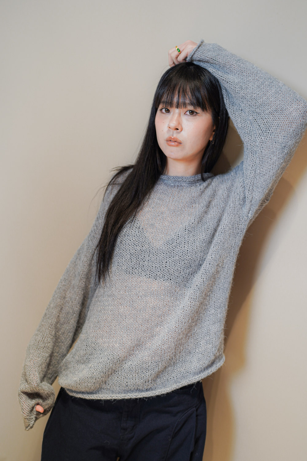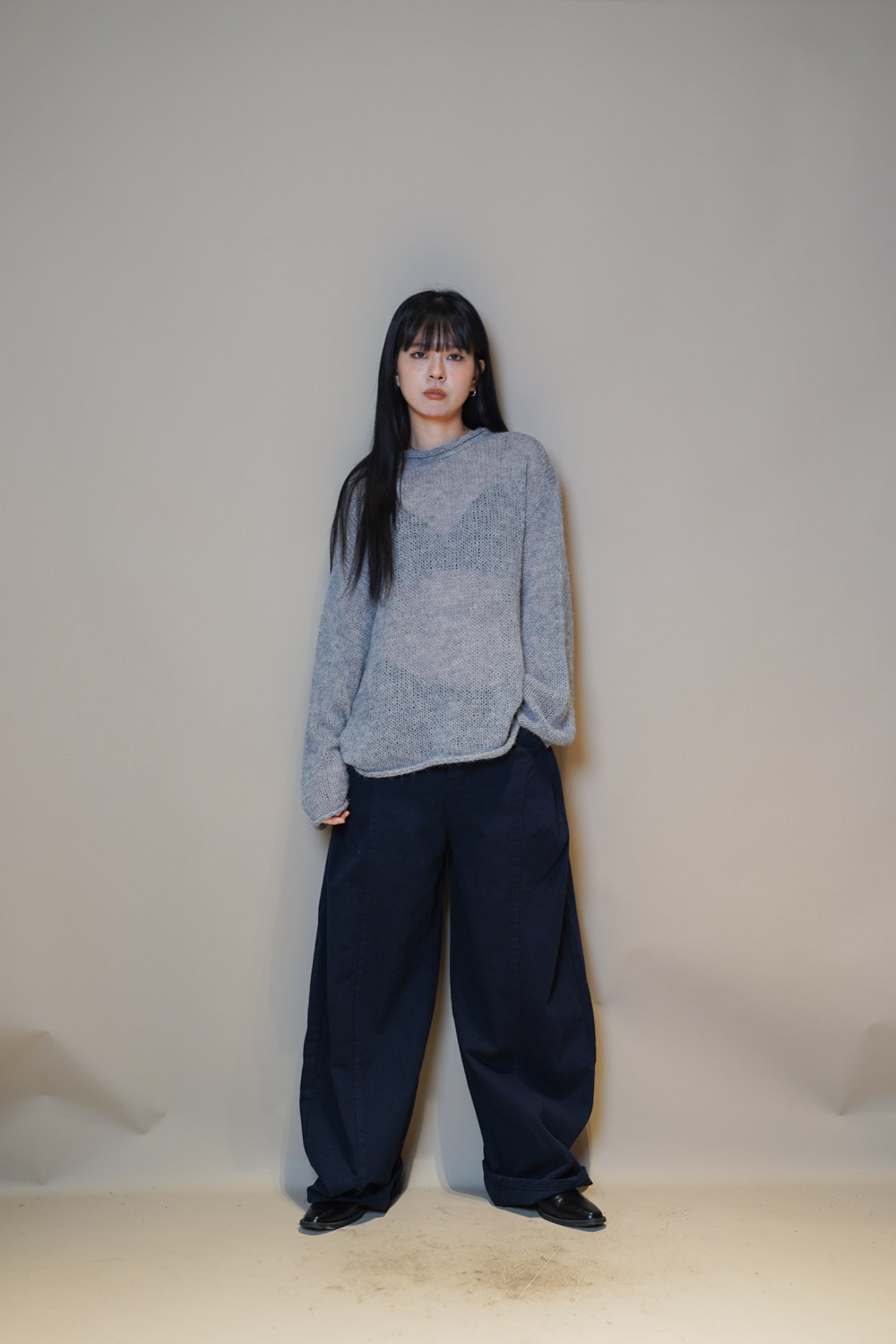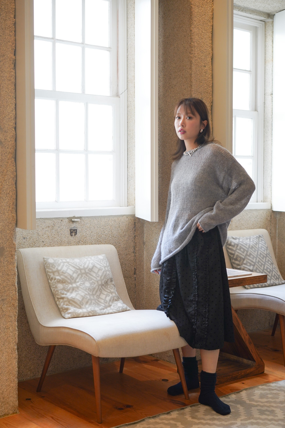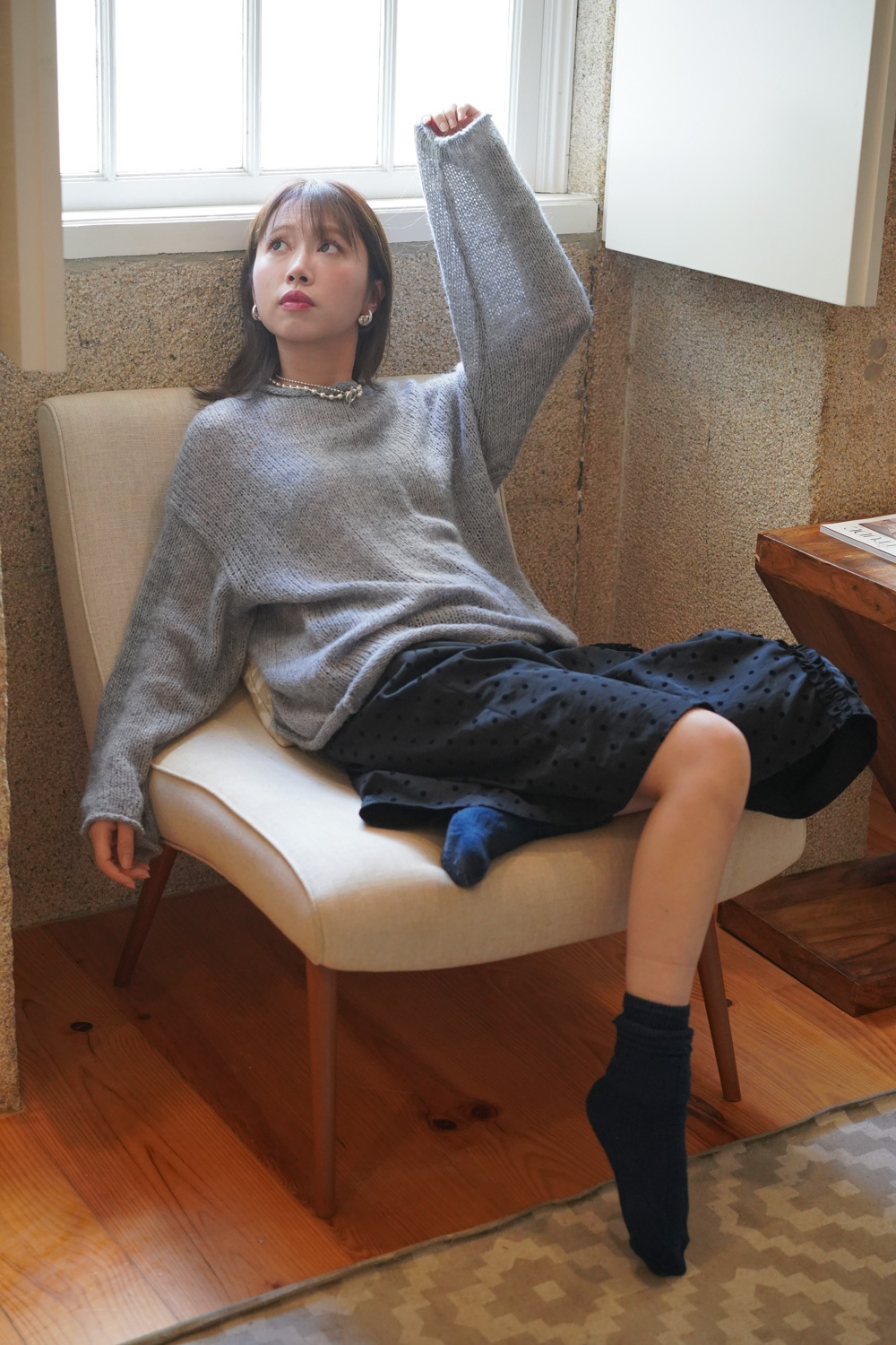 Loose knit roll neck top (WHITE/GREY) -wool 10%