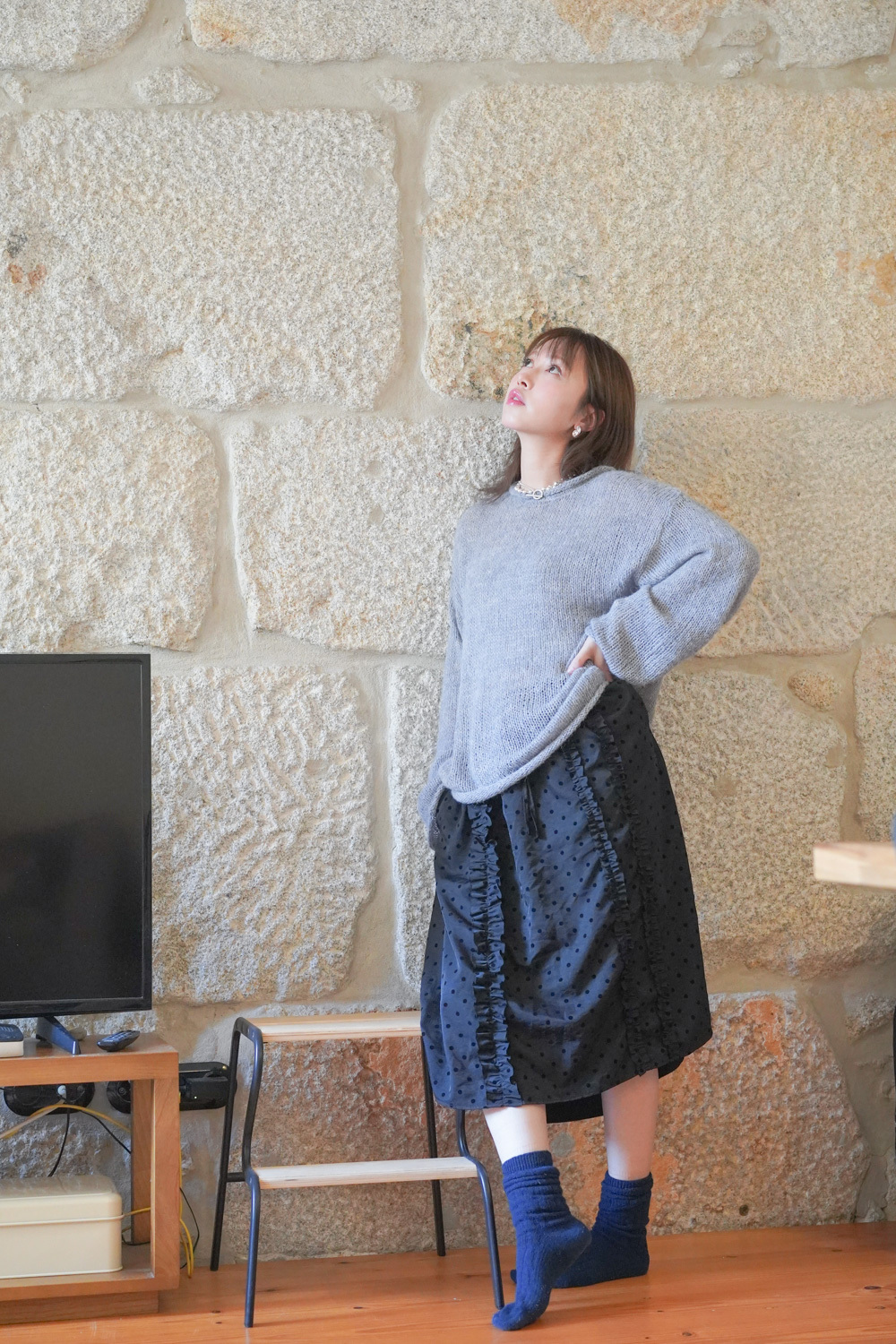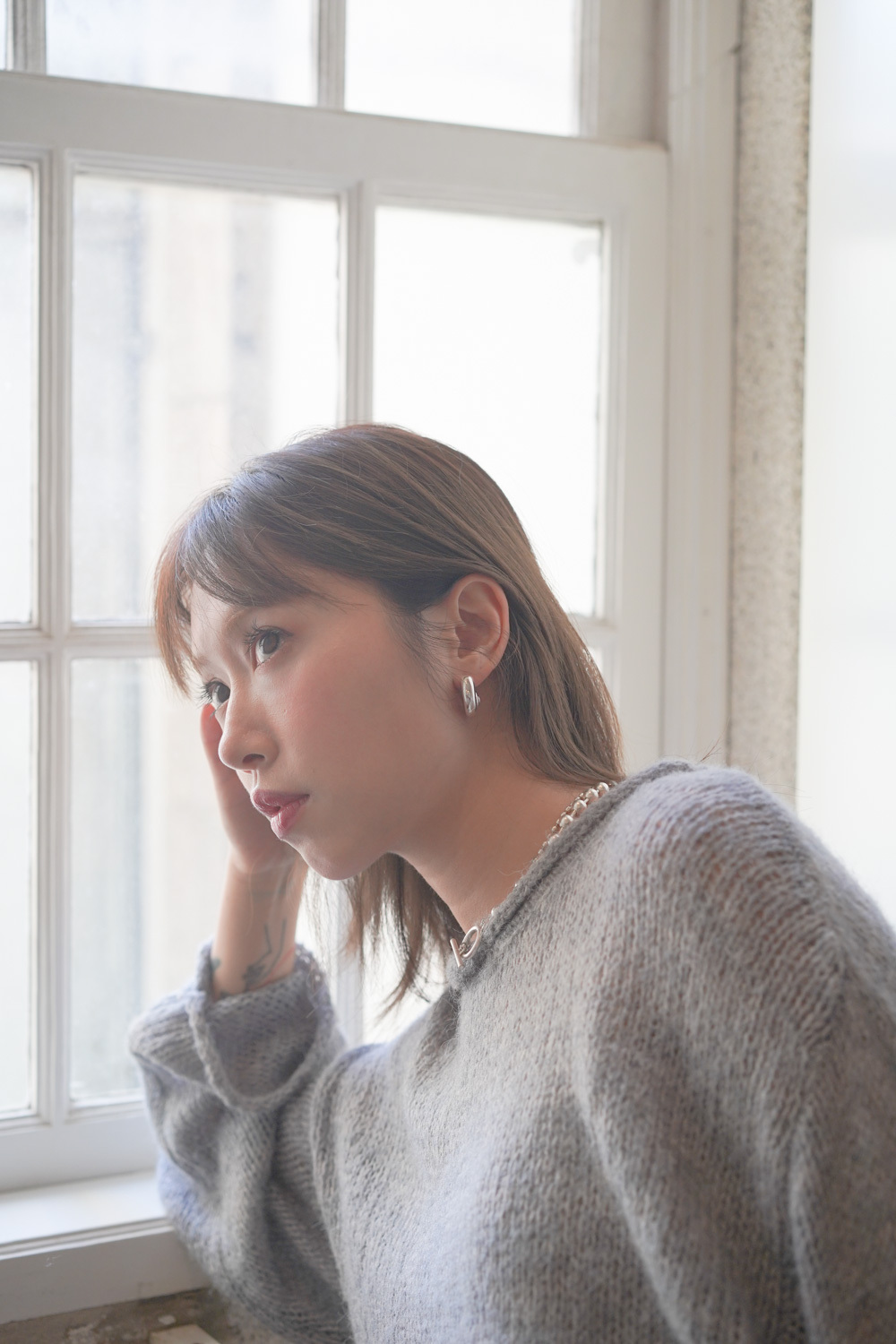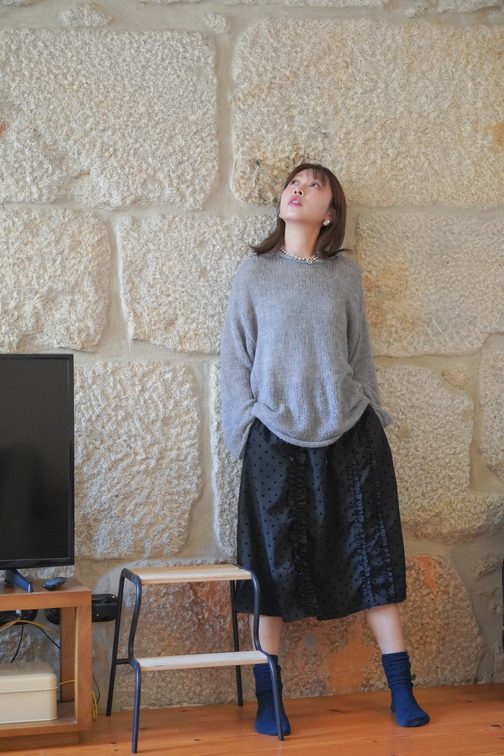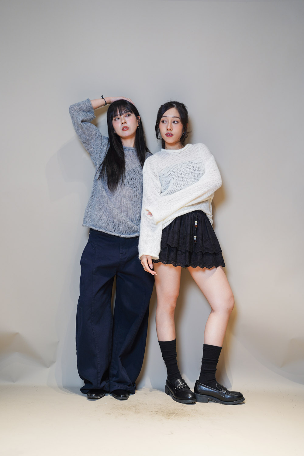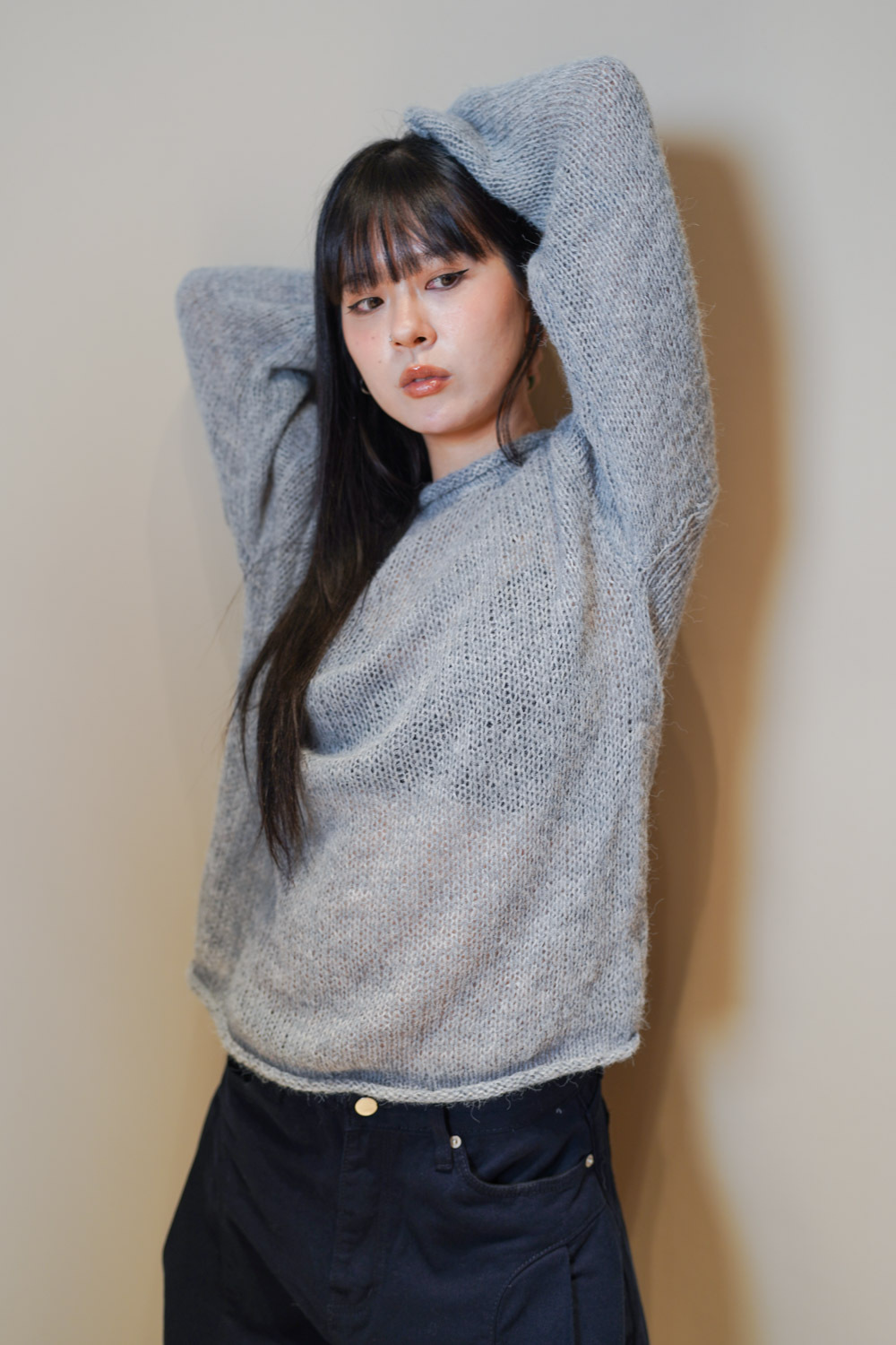 Loose knit roll neck top (WHITE/GREY) -wool 10%