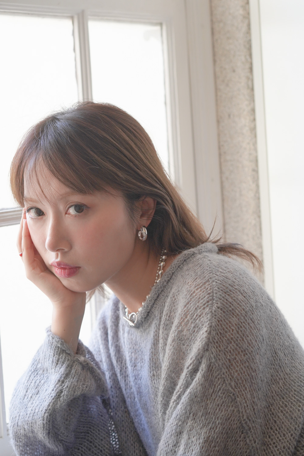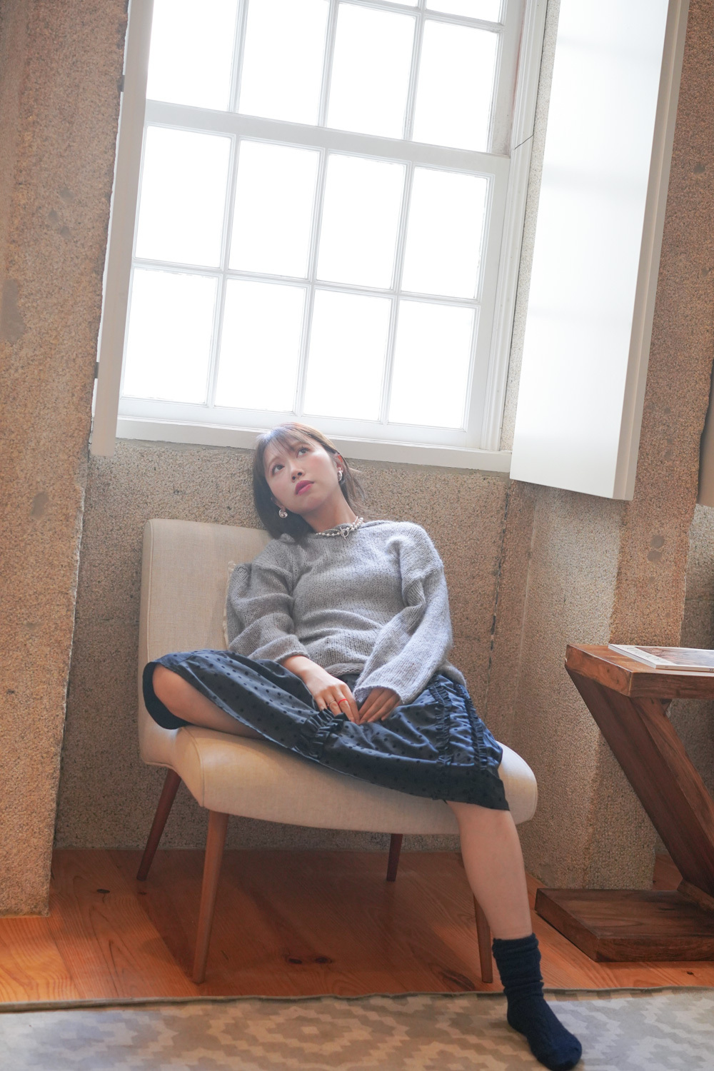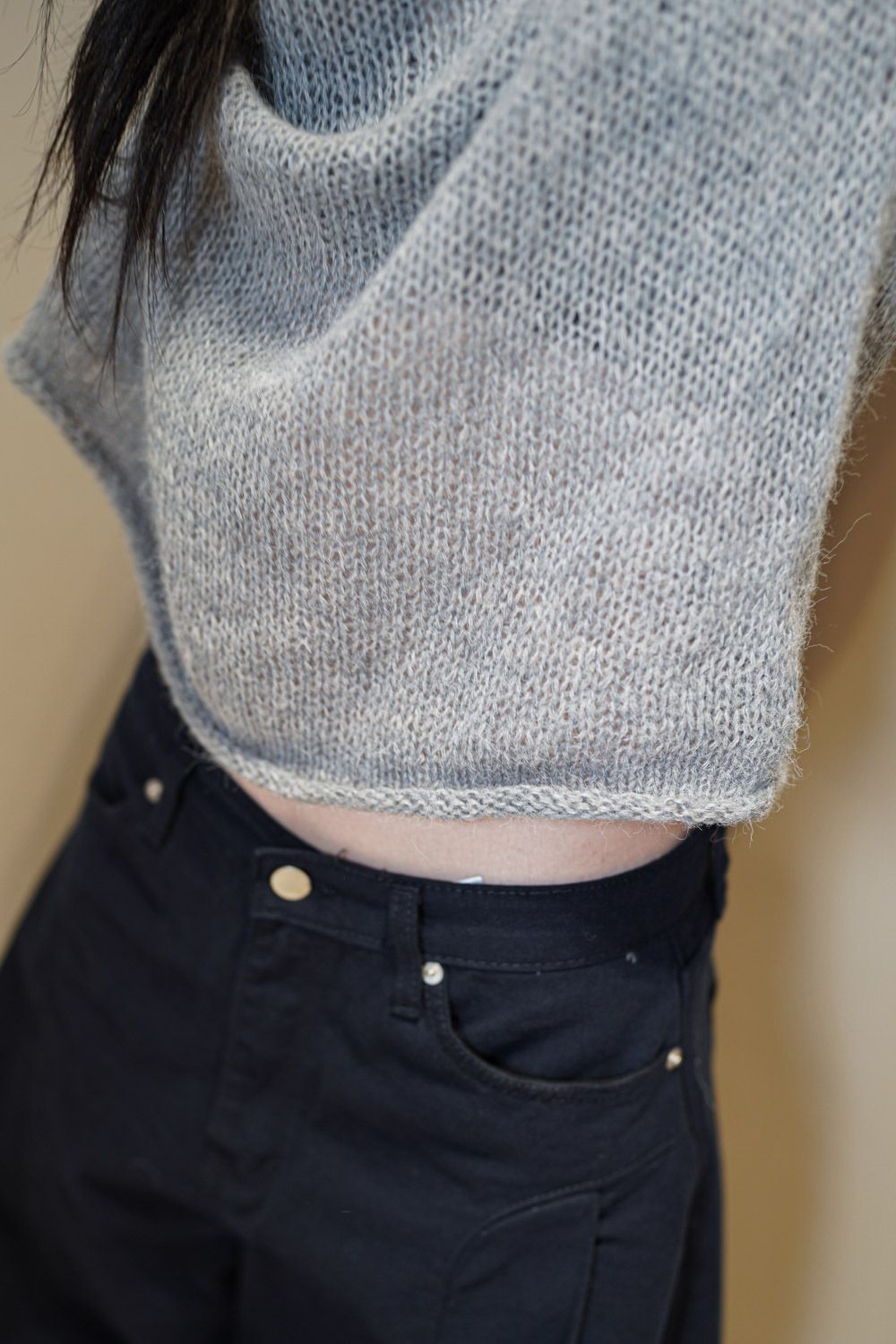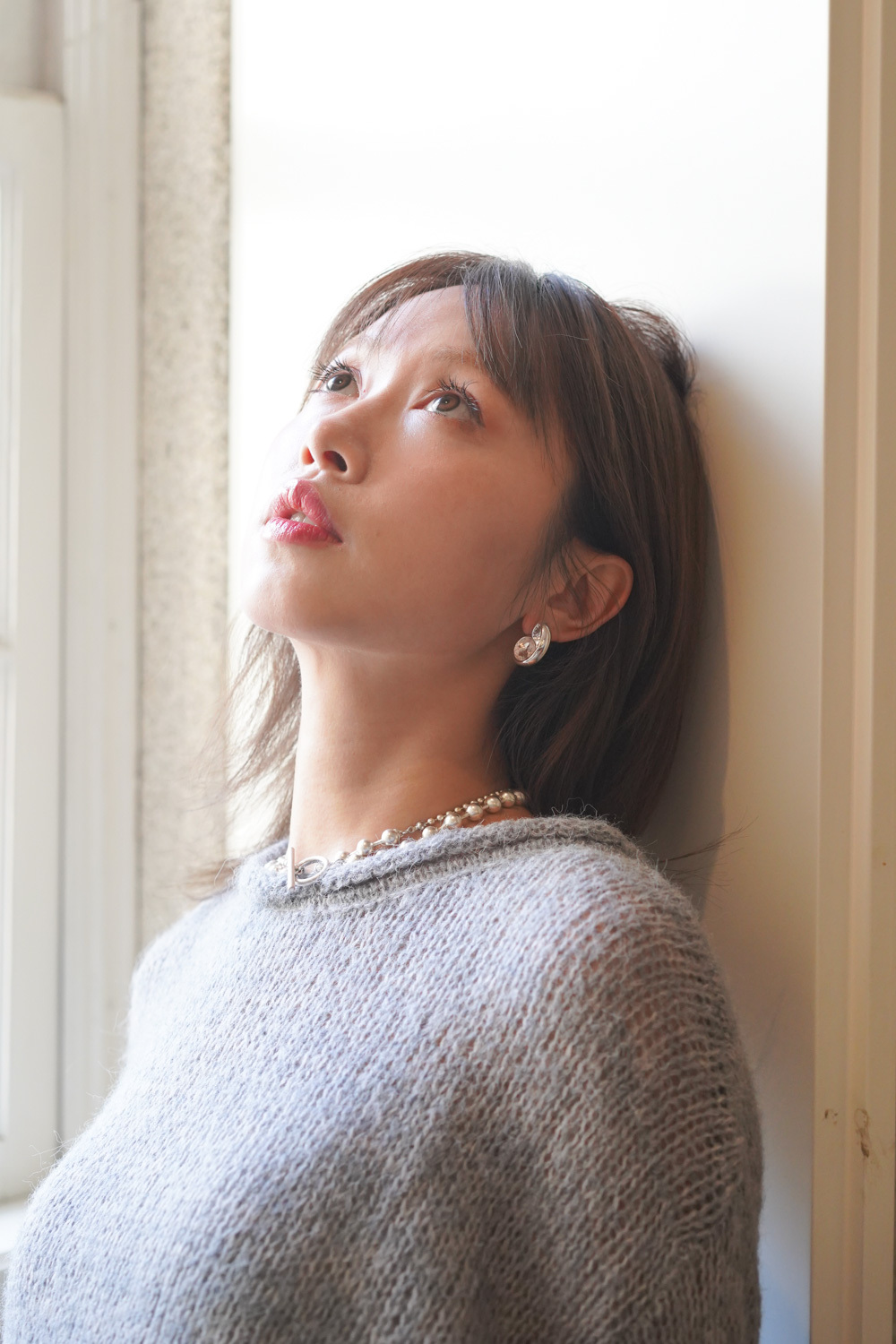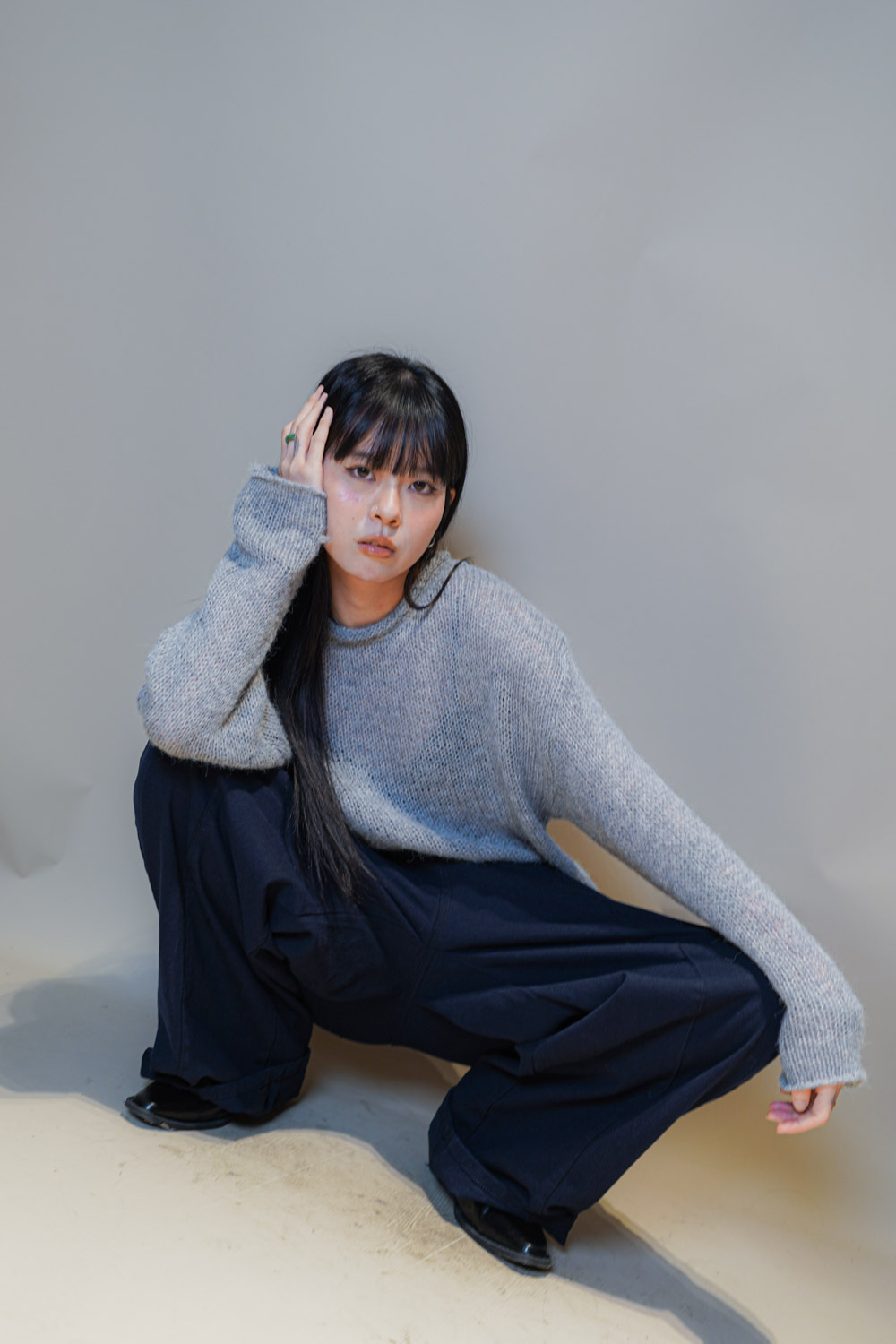 Loose knit roll neck top (WHITE/GREY) -wool 10%