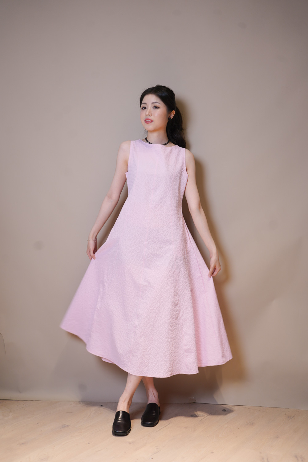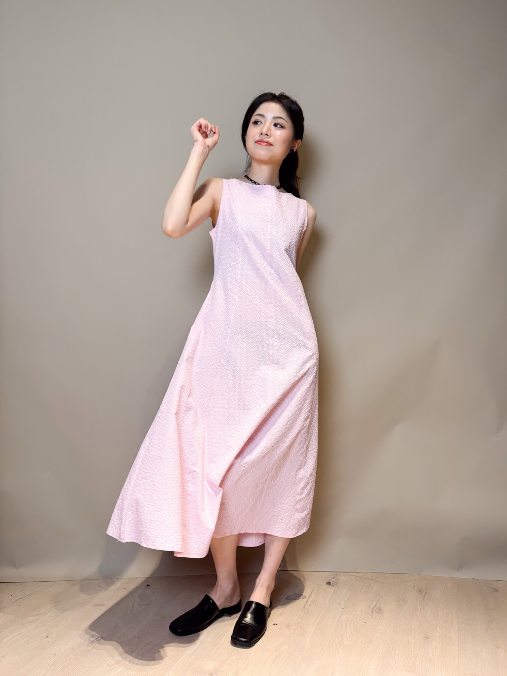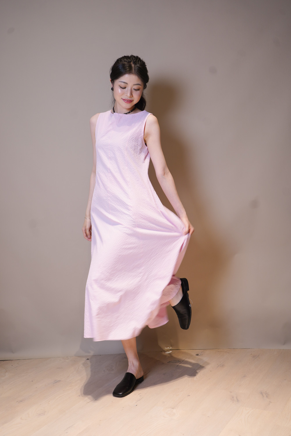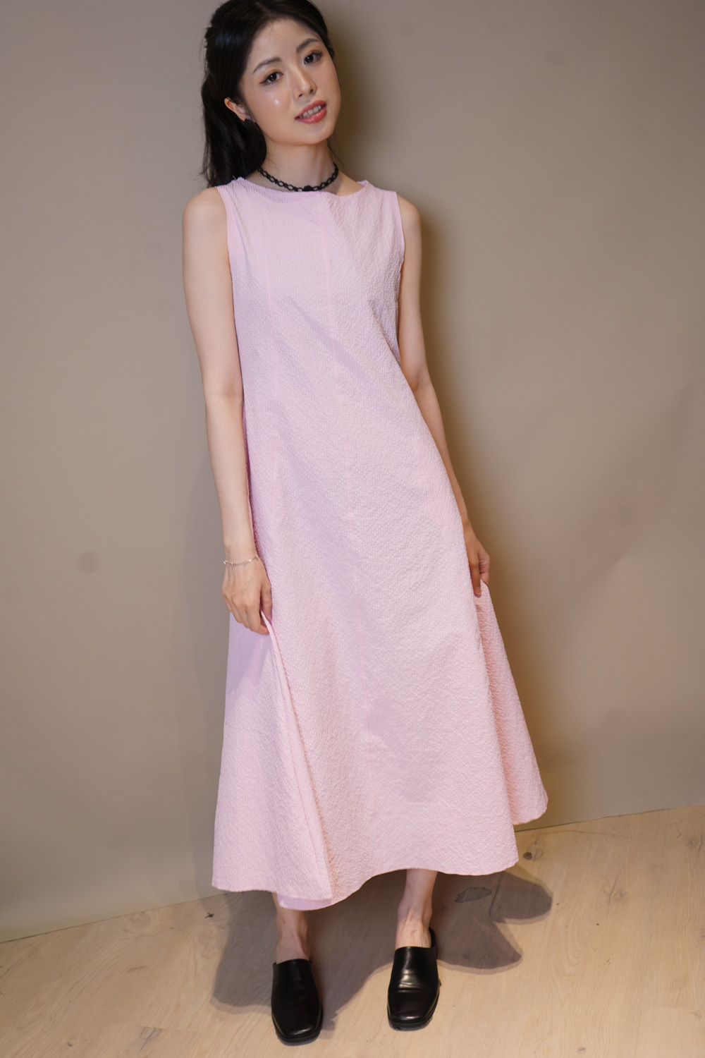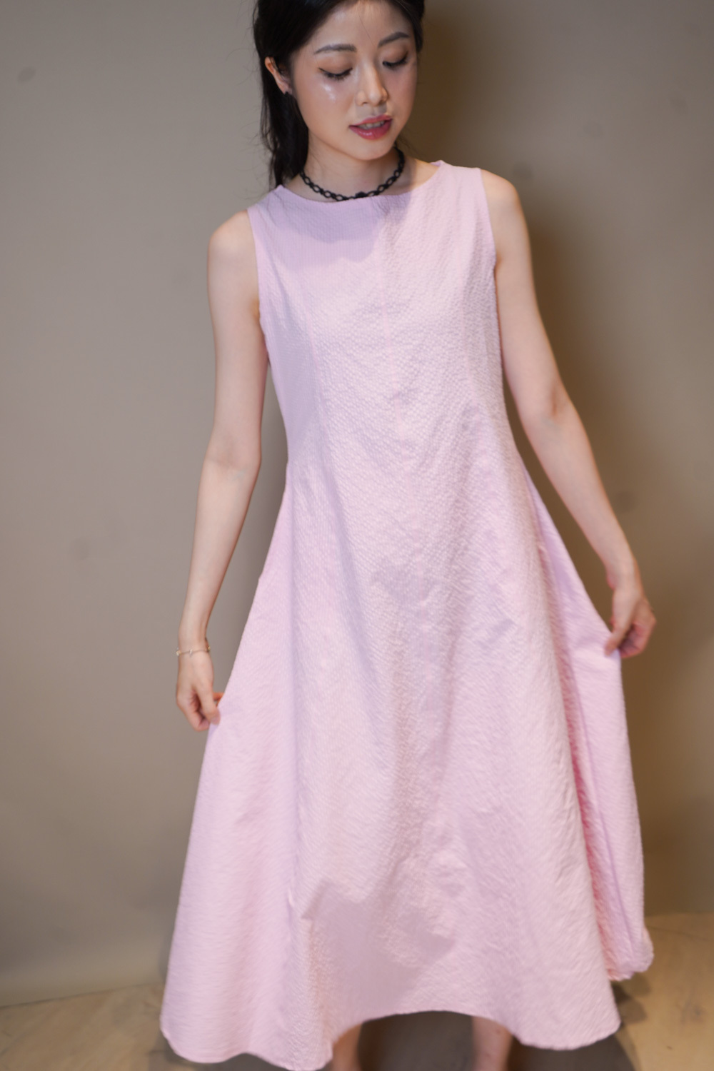 Love~ 3D A shape textured long dress (PINK / BLACK)