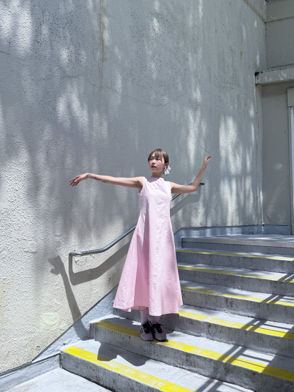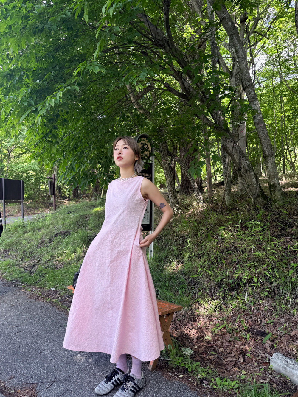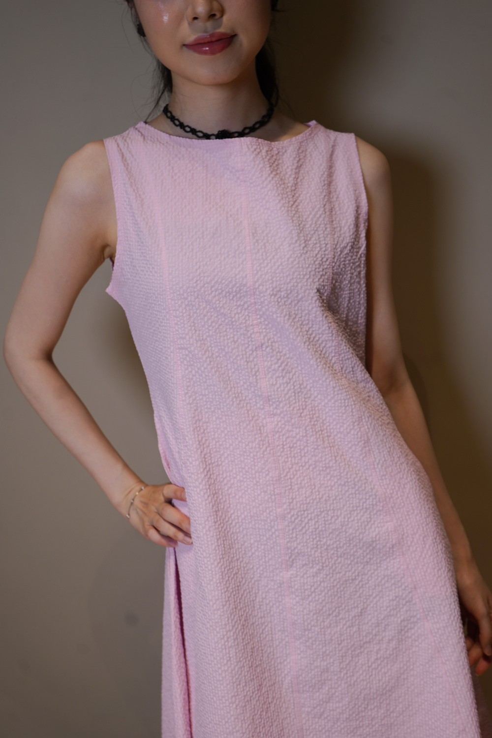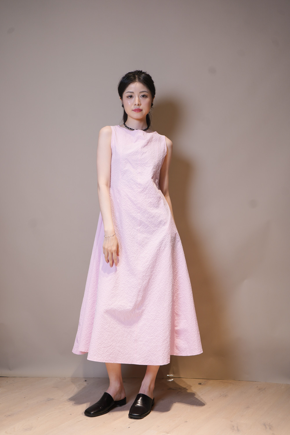 Love~ 3D A shape textured long dress (PINK / BLACK)