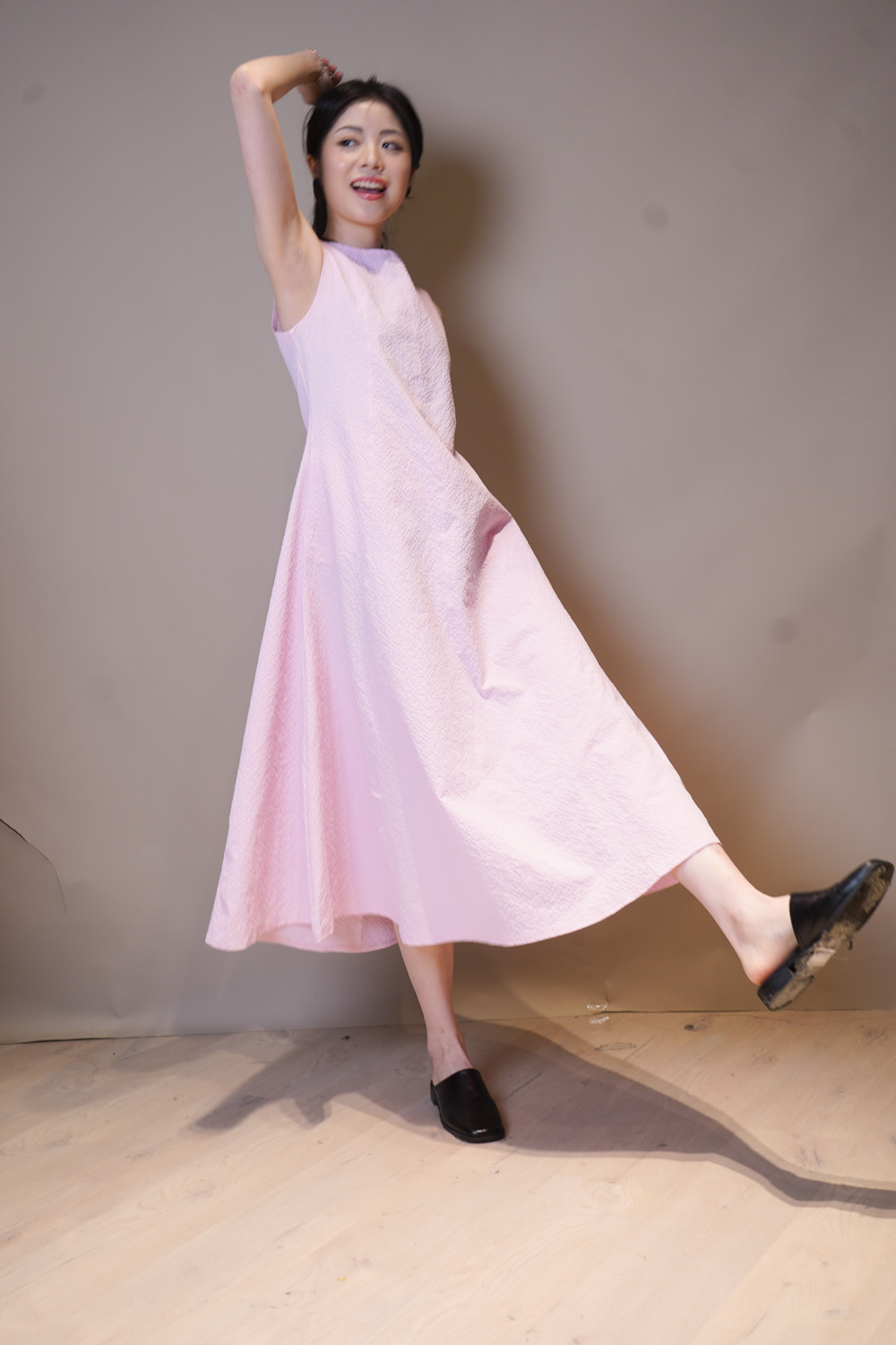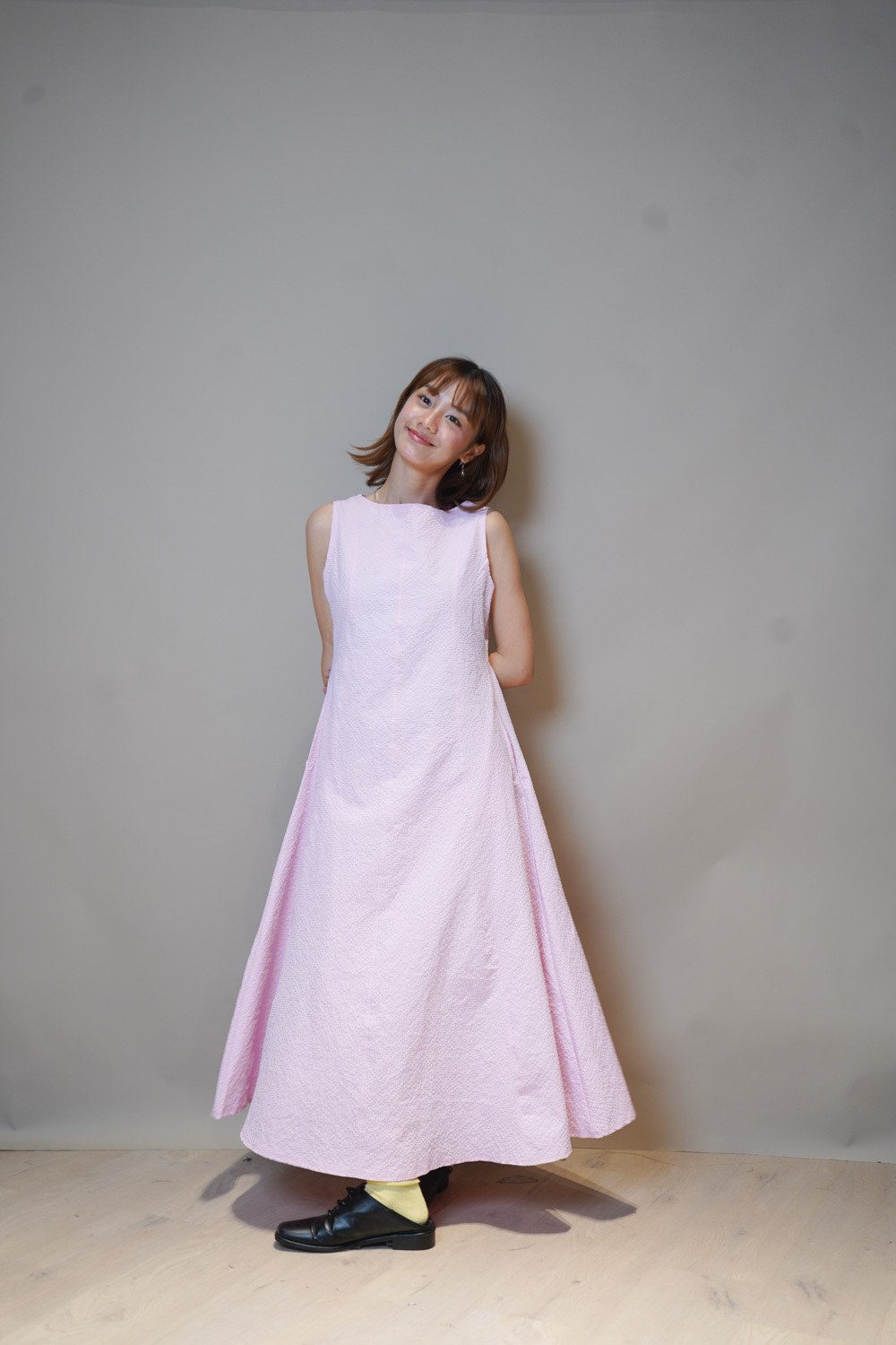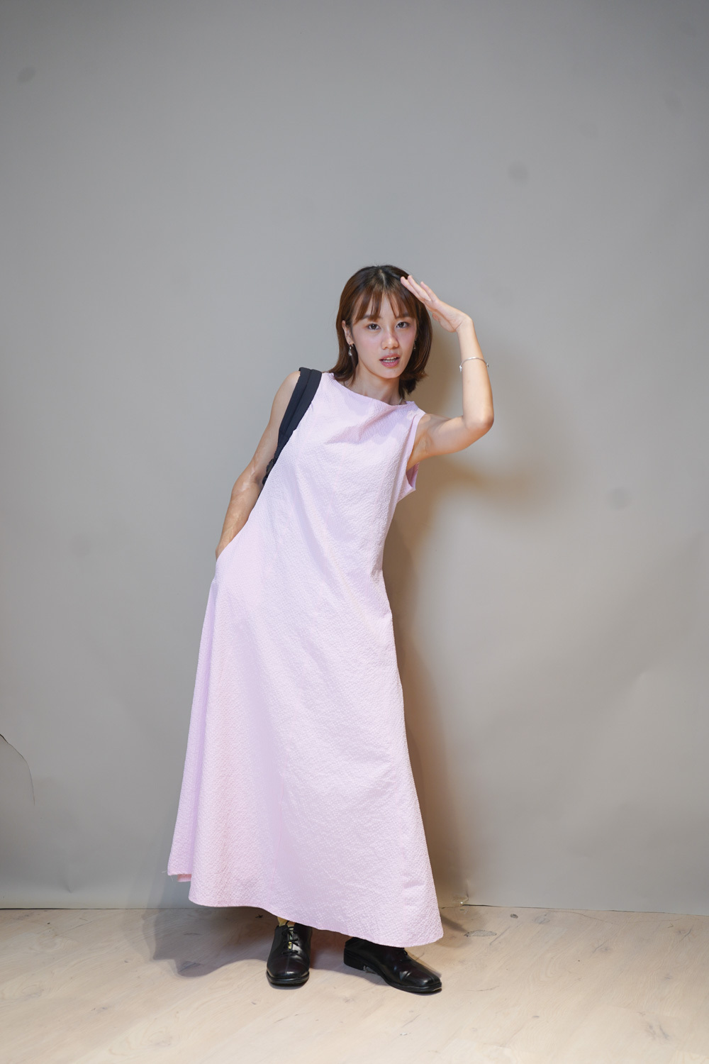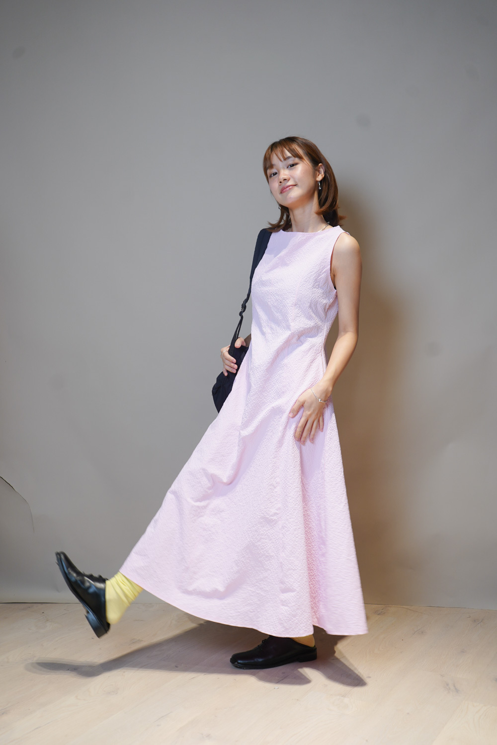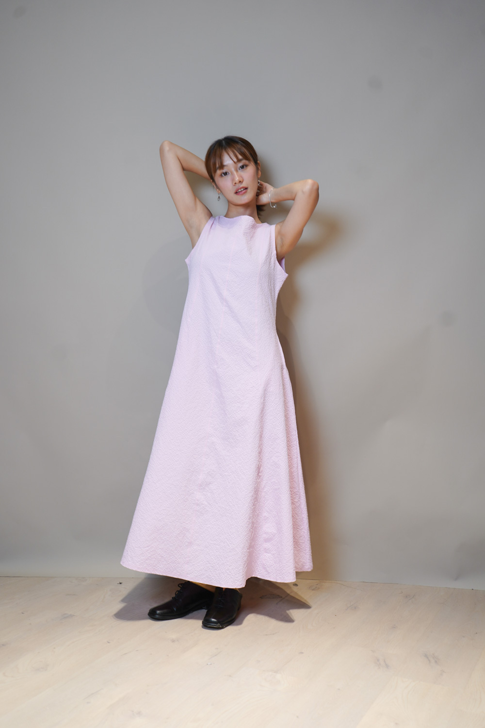 Love~ 3D A shape textured long dress (PINK / BLACK)