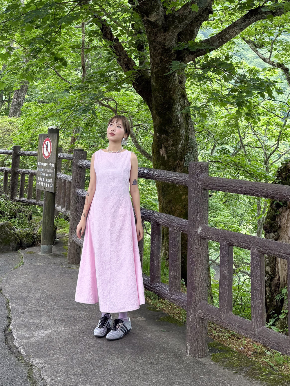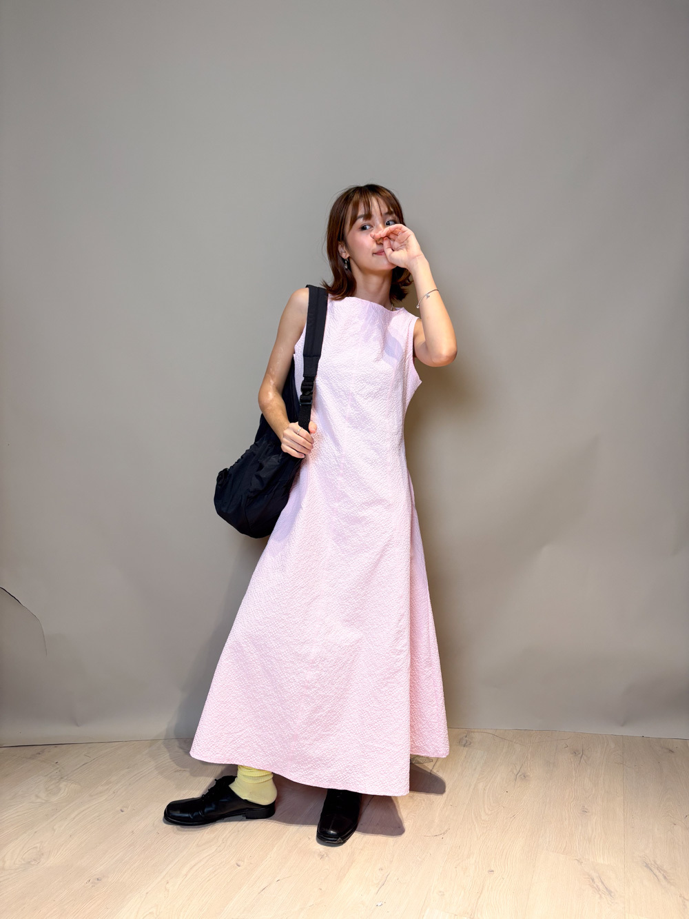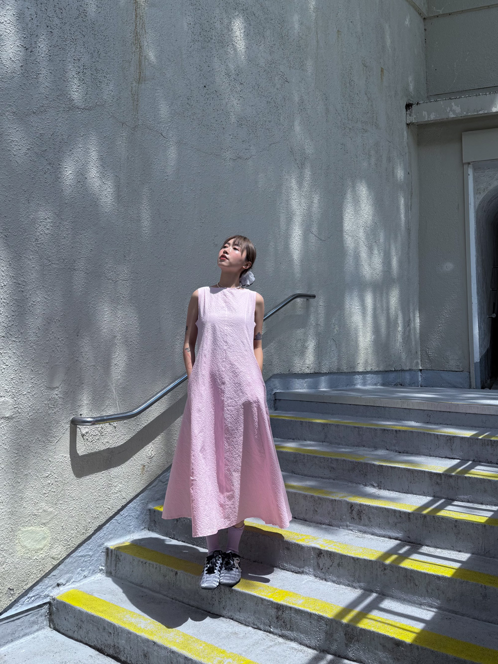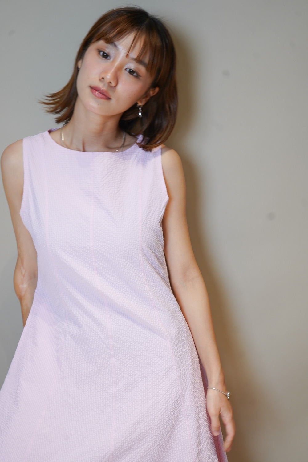 Love~ 3D A shape textured long dress (PINK / BLACK)