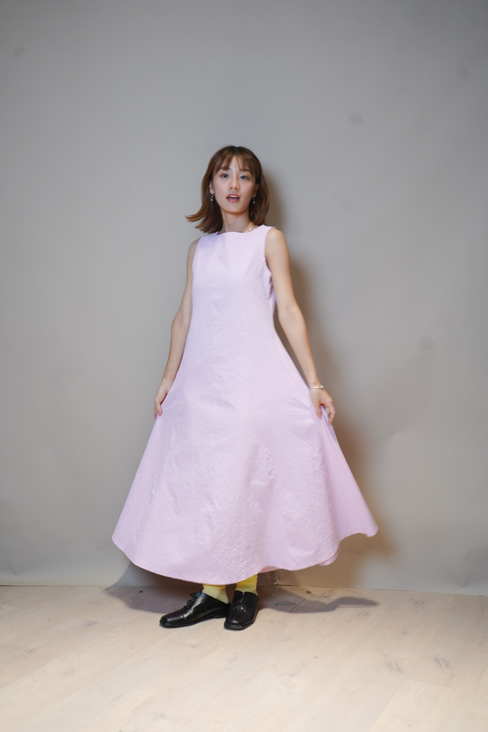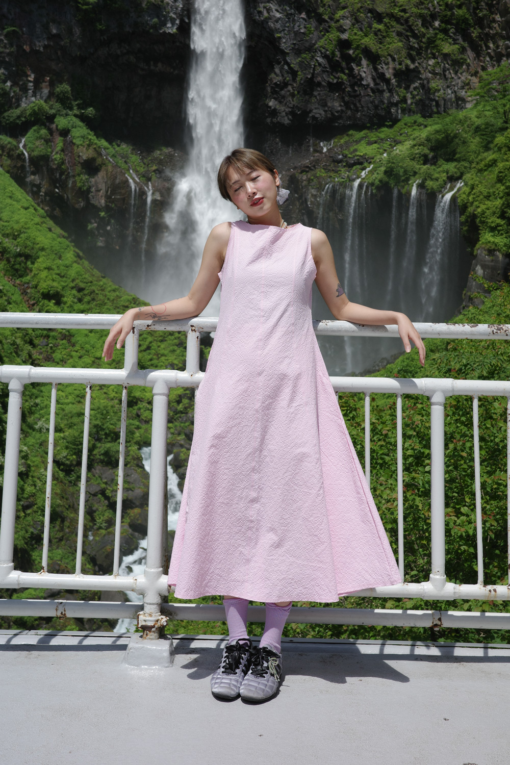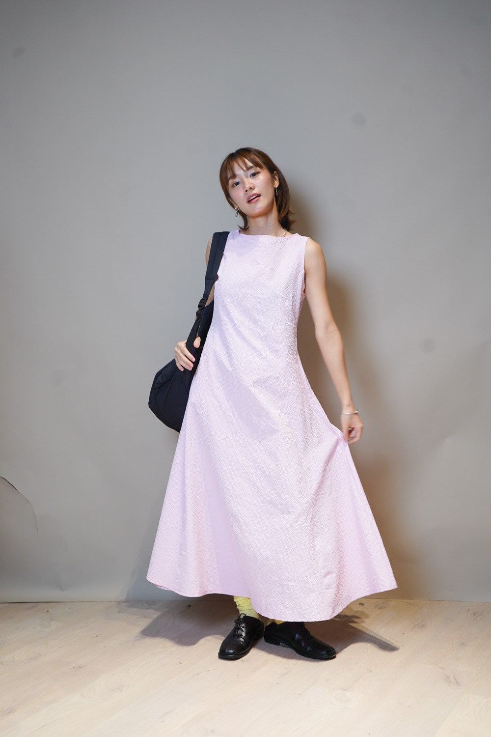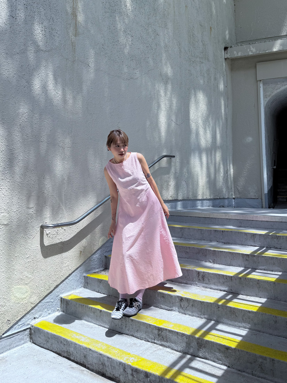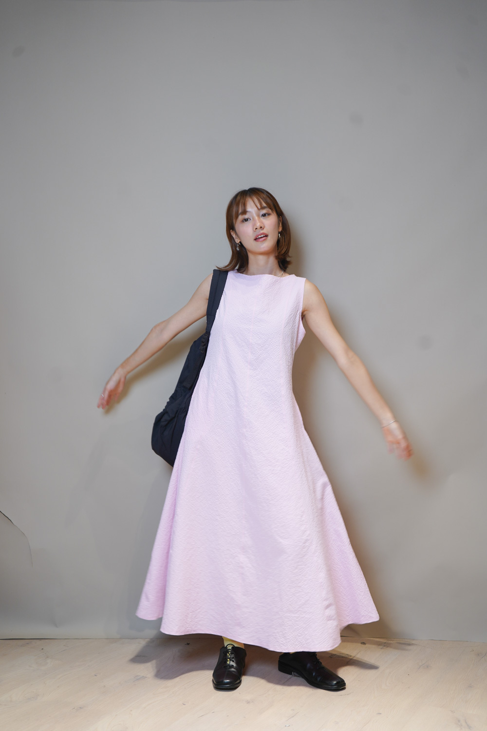 Love~ 3D A shape textured long dress (PINK / BLACK)