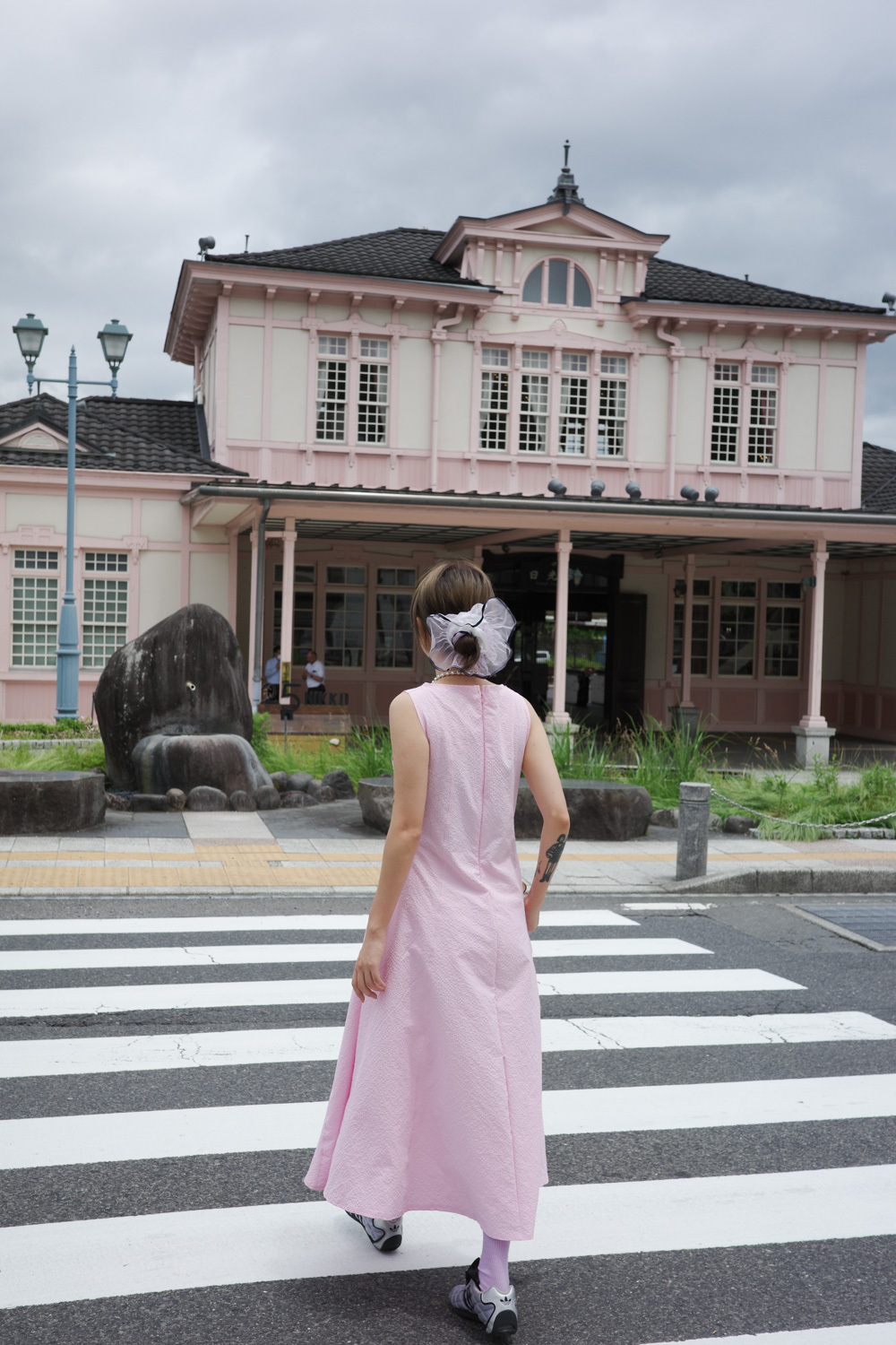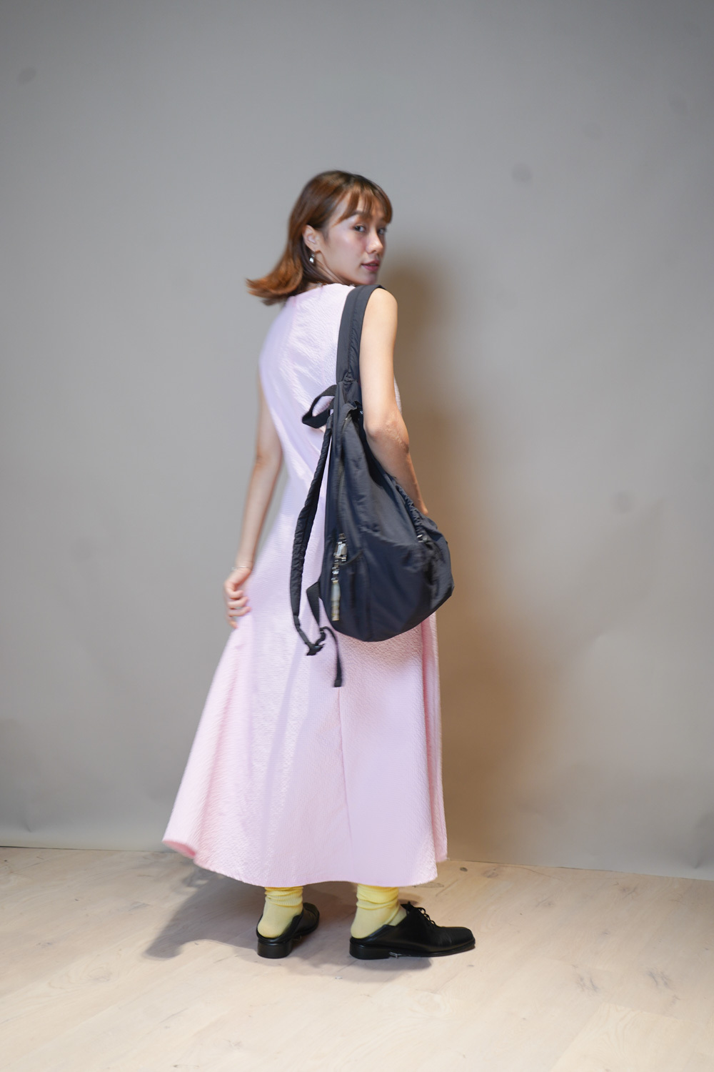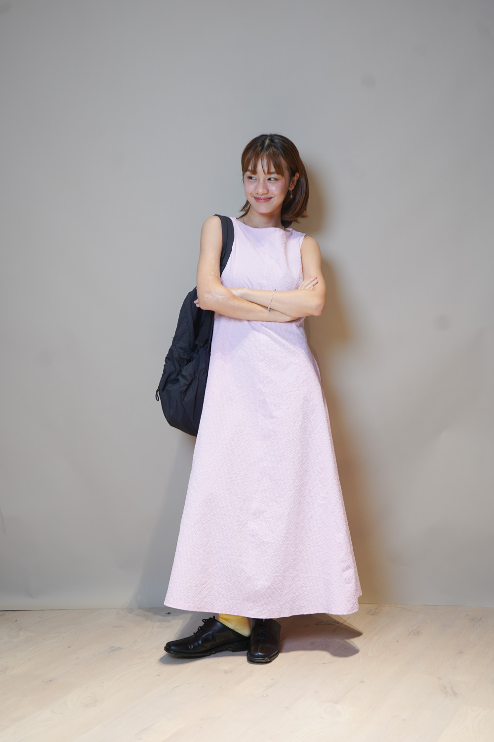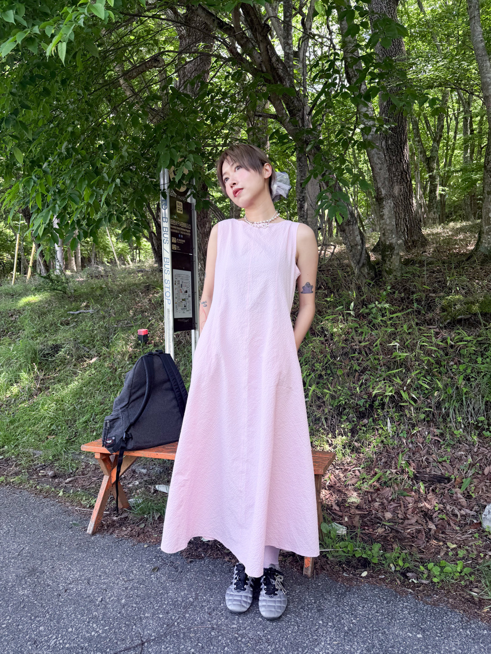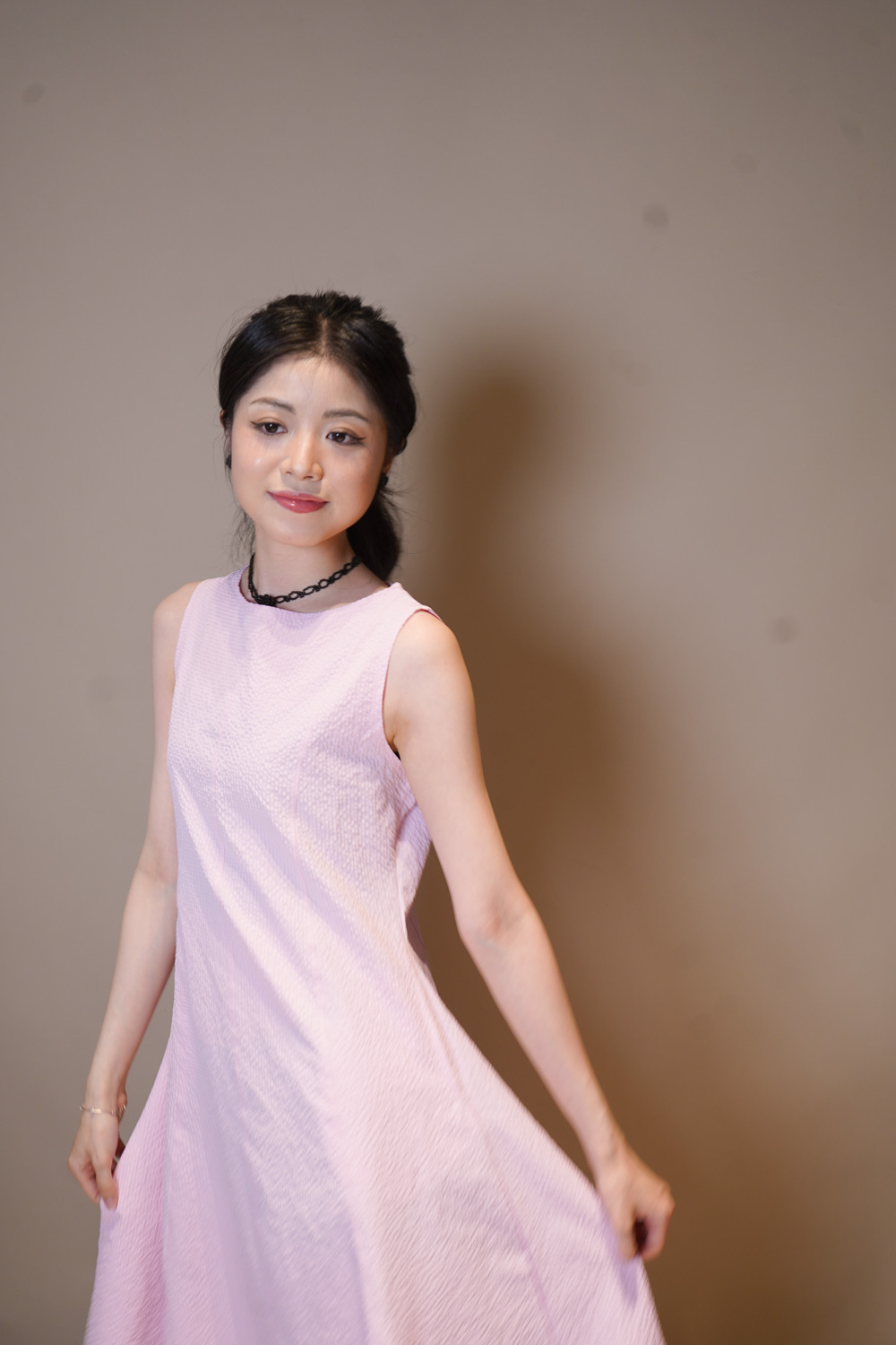 Love~ 3D A shape textured long dress (PINK / BLACK)