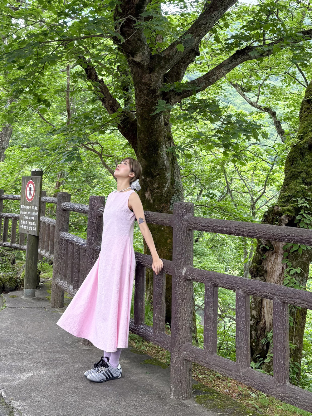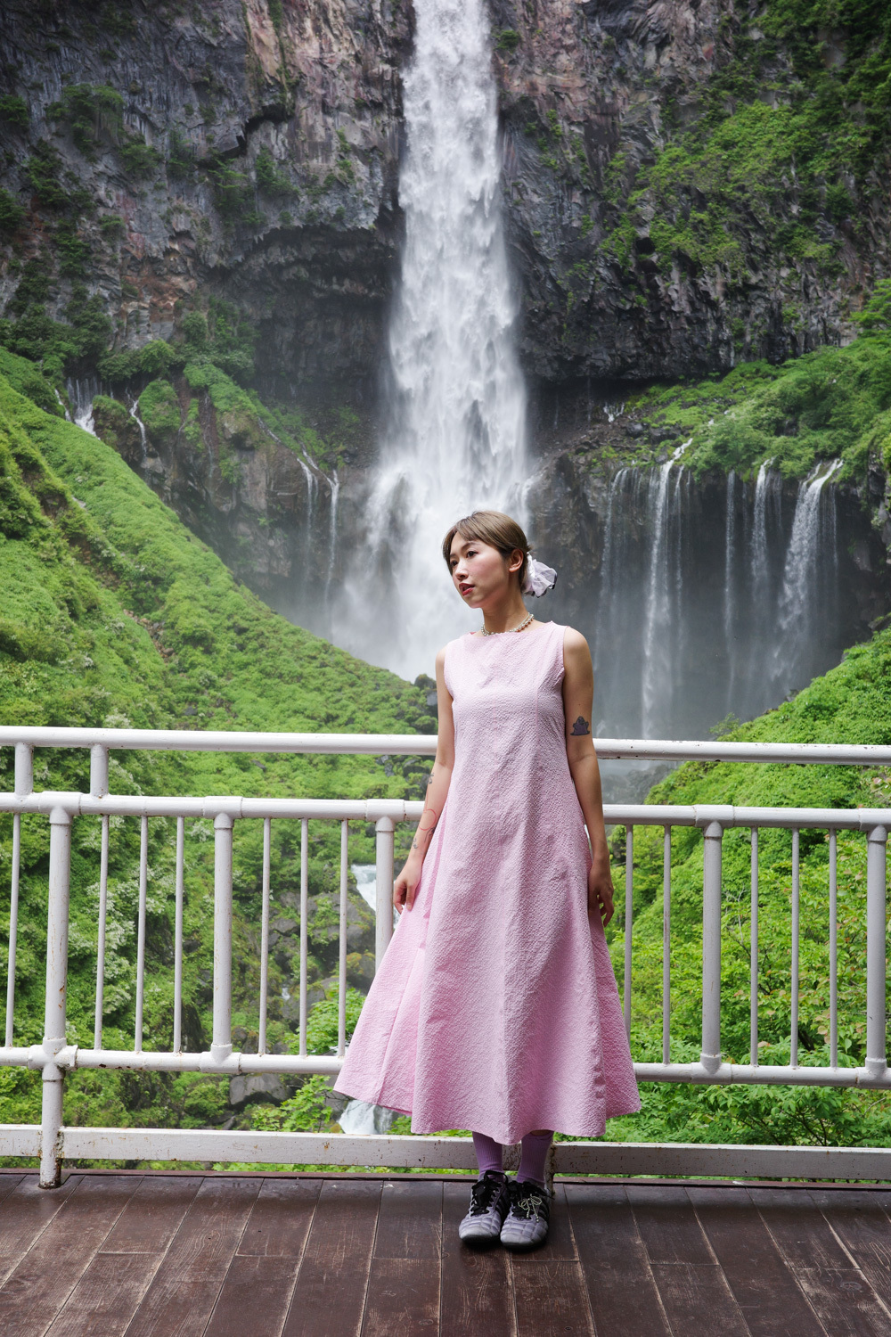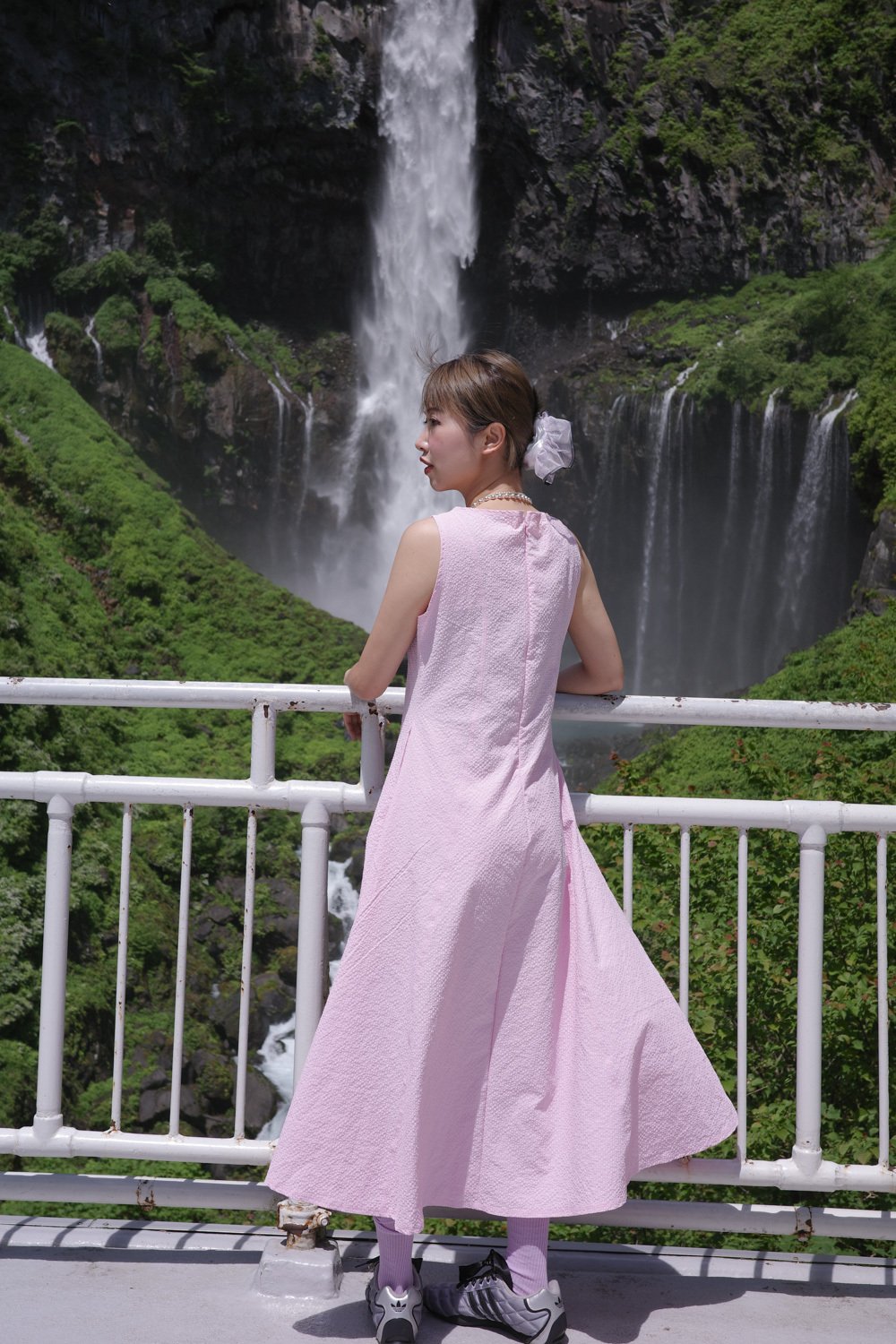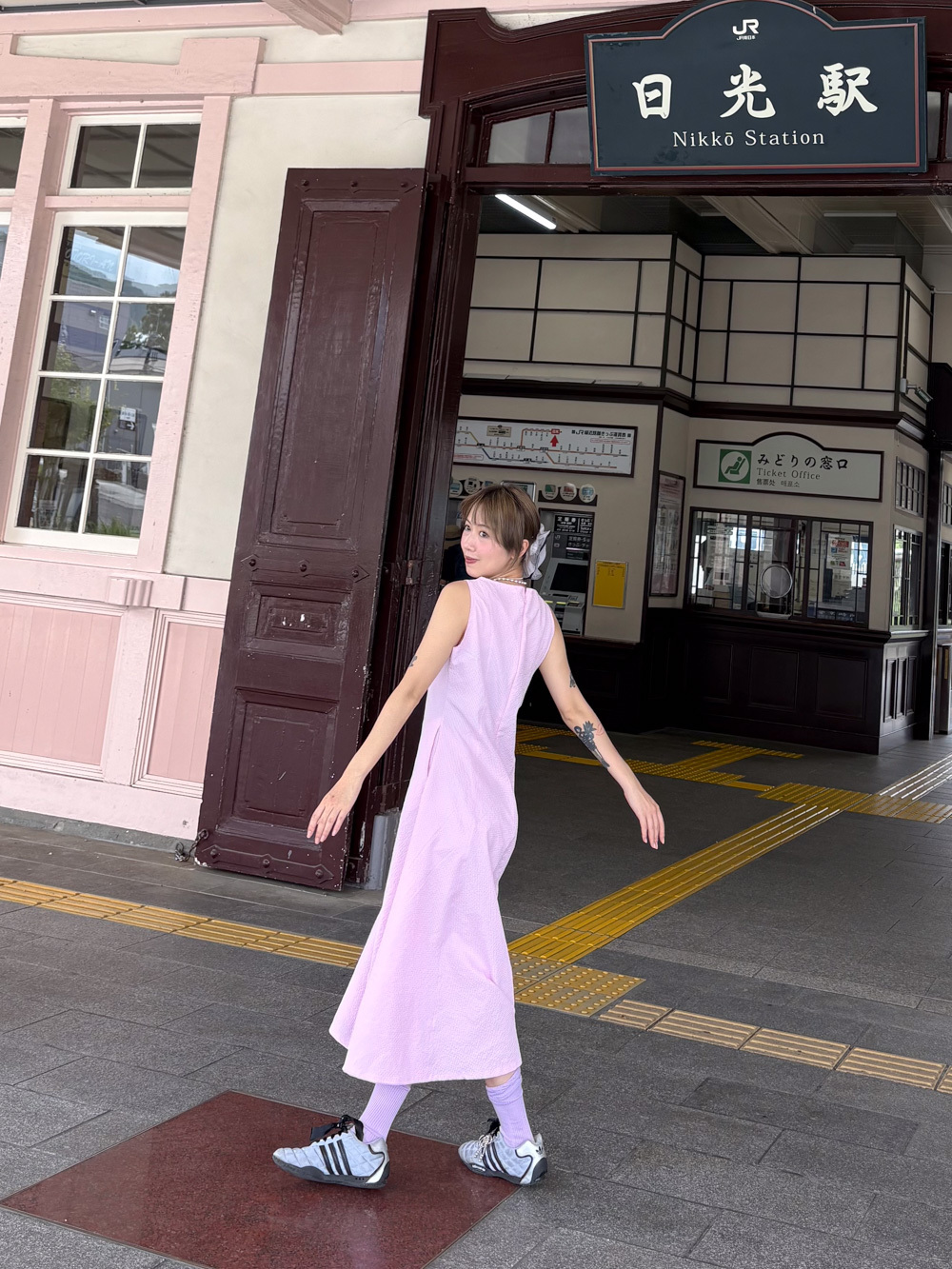 Love~ 3D A shape textured long dress (PINK / BLACK)