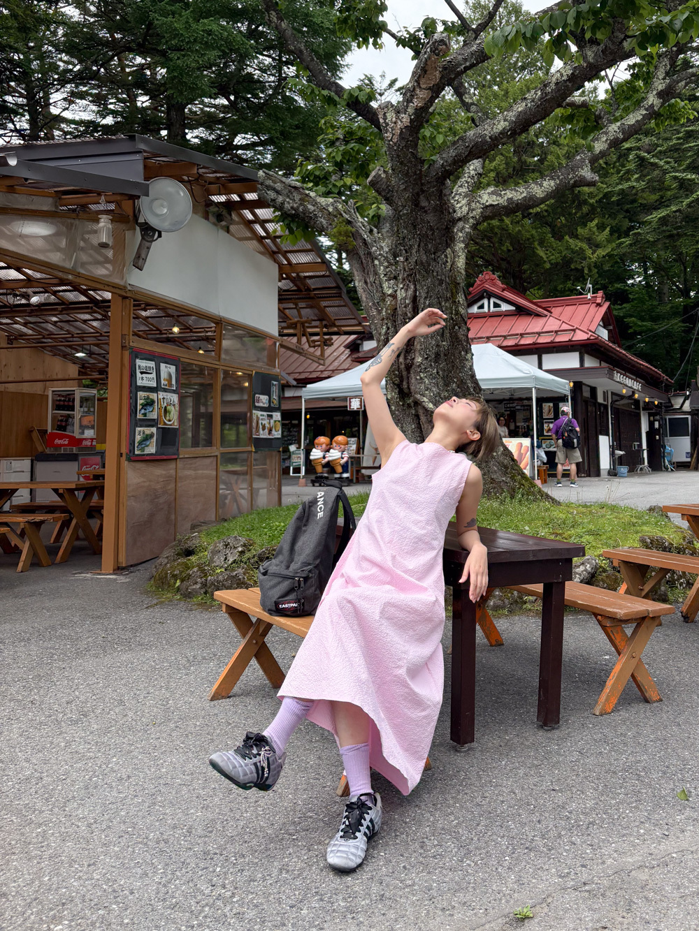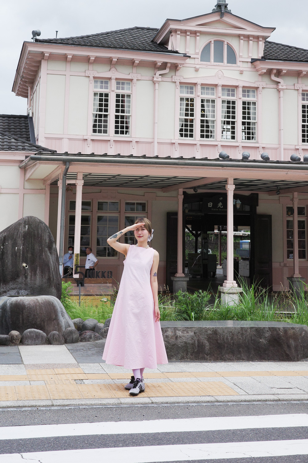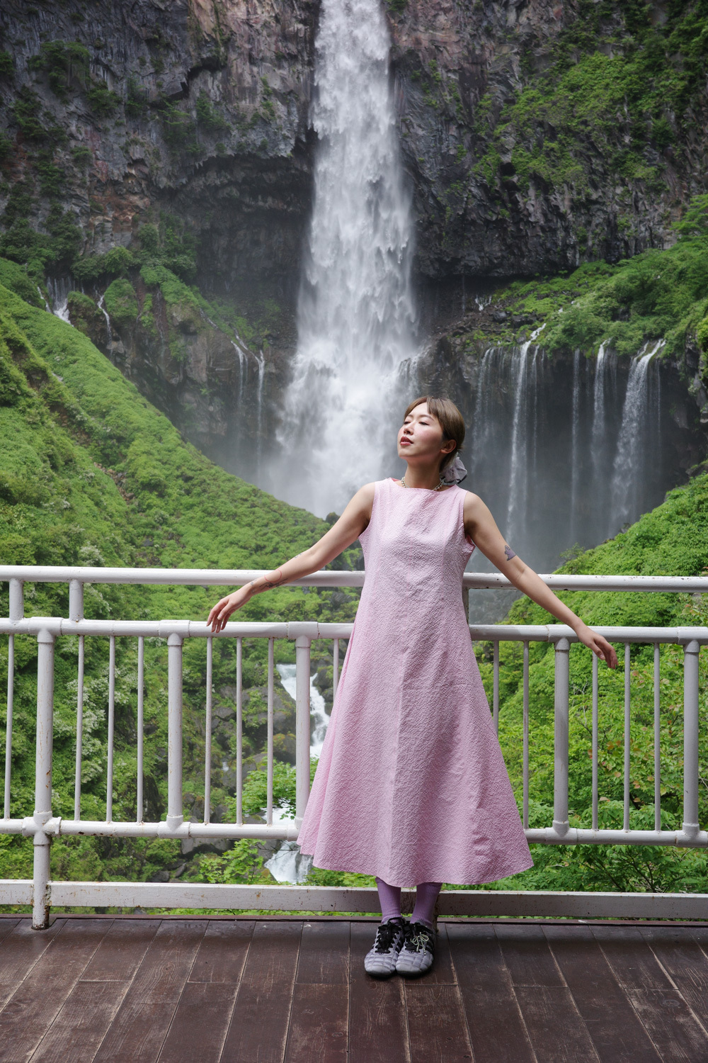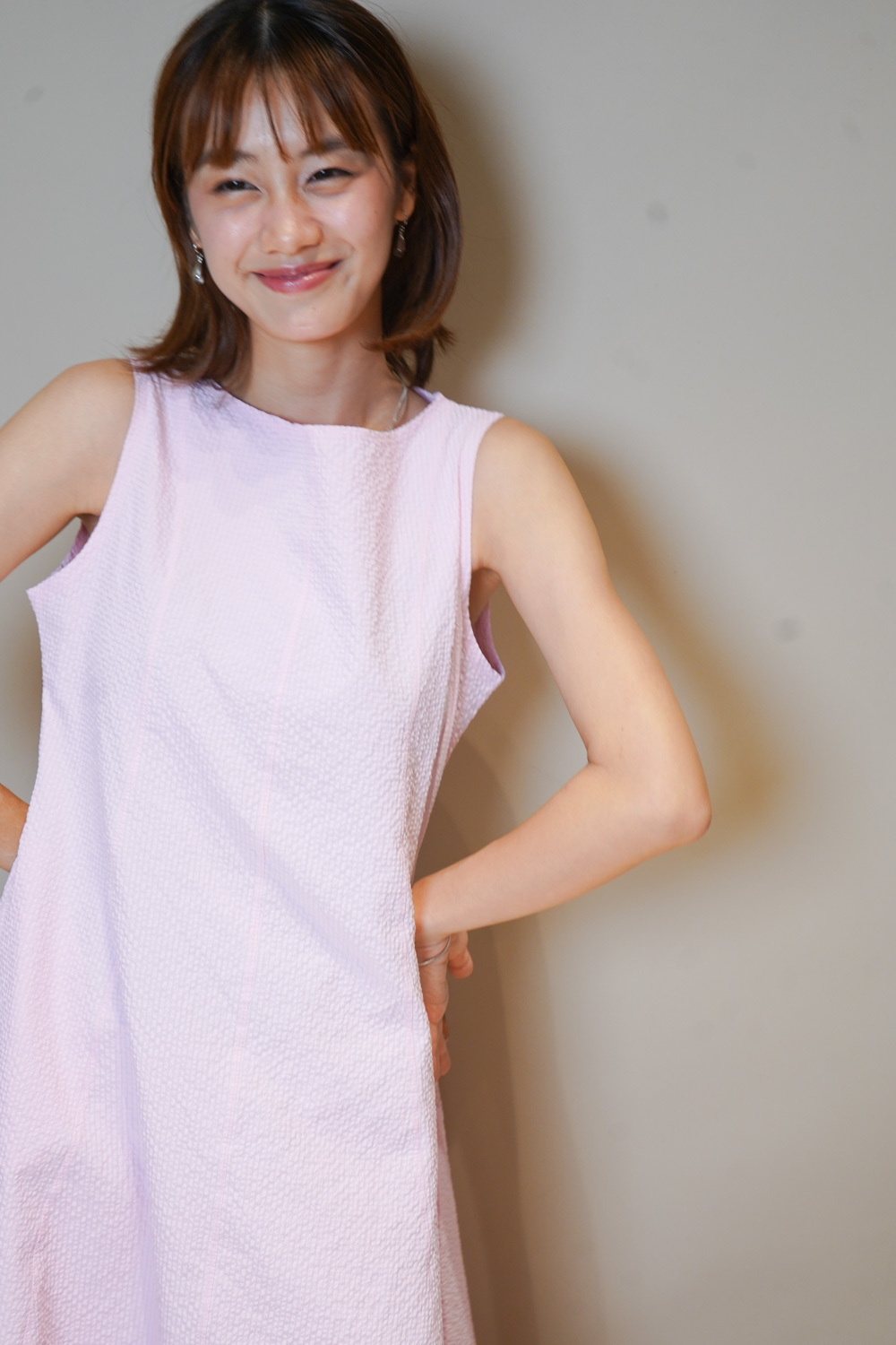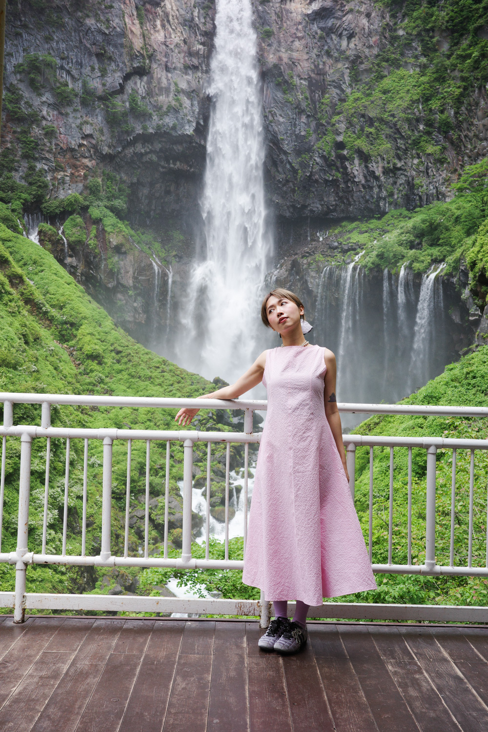 Love~ 3D A shape textured long dress (PINK / BLACK)