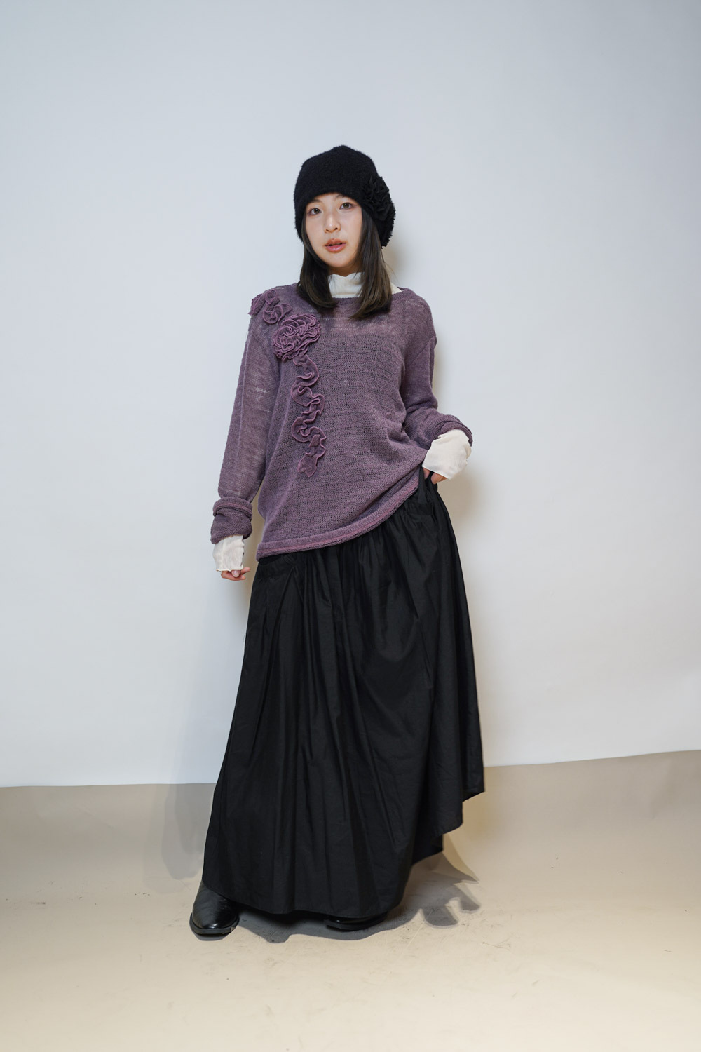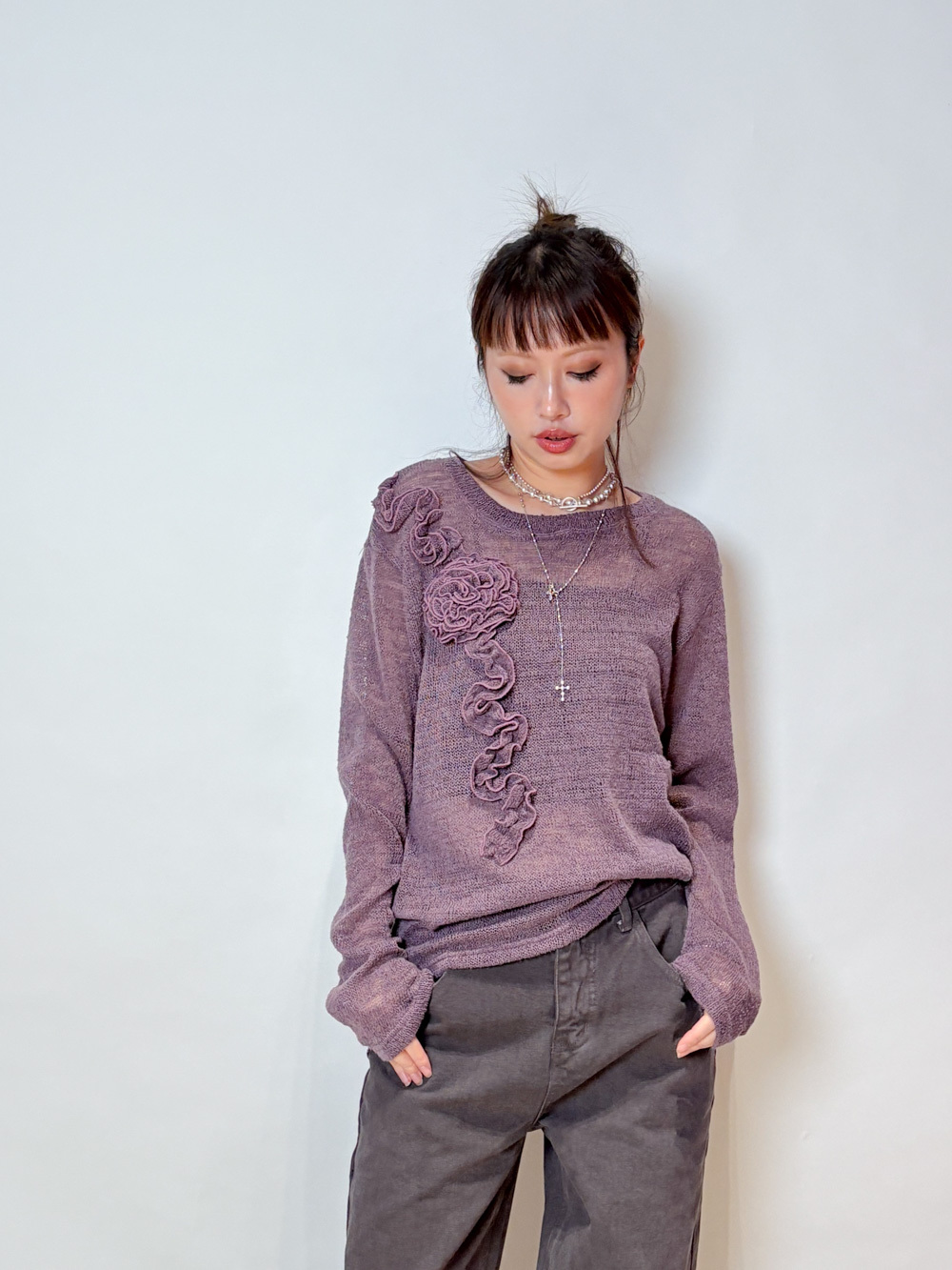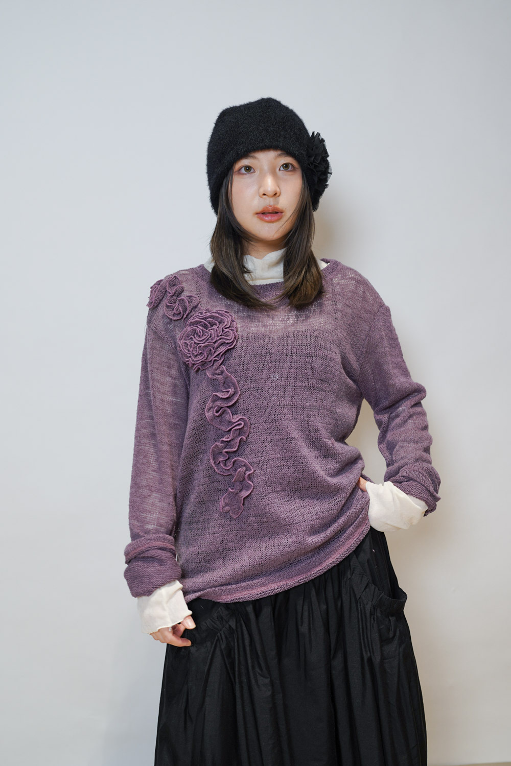 blooming flower loose knit (WHITE/PURPLE)