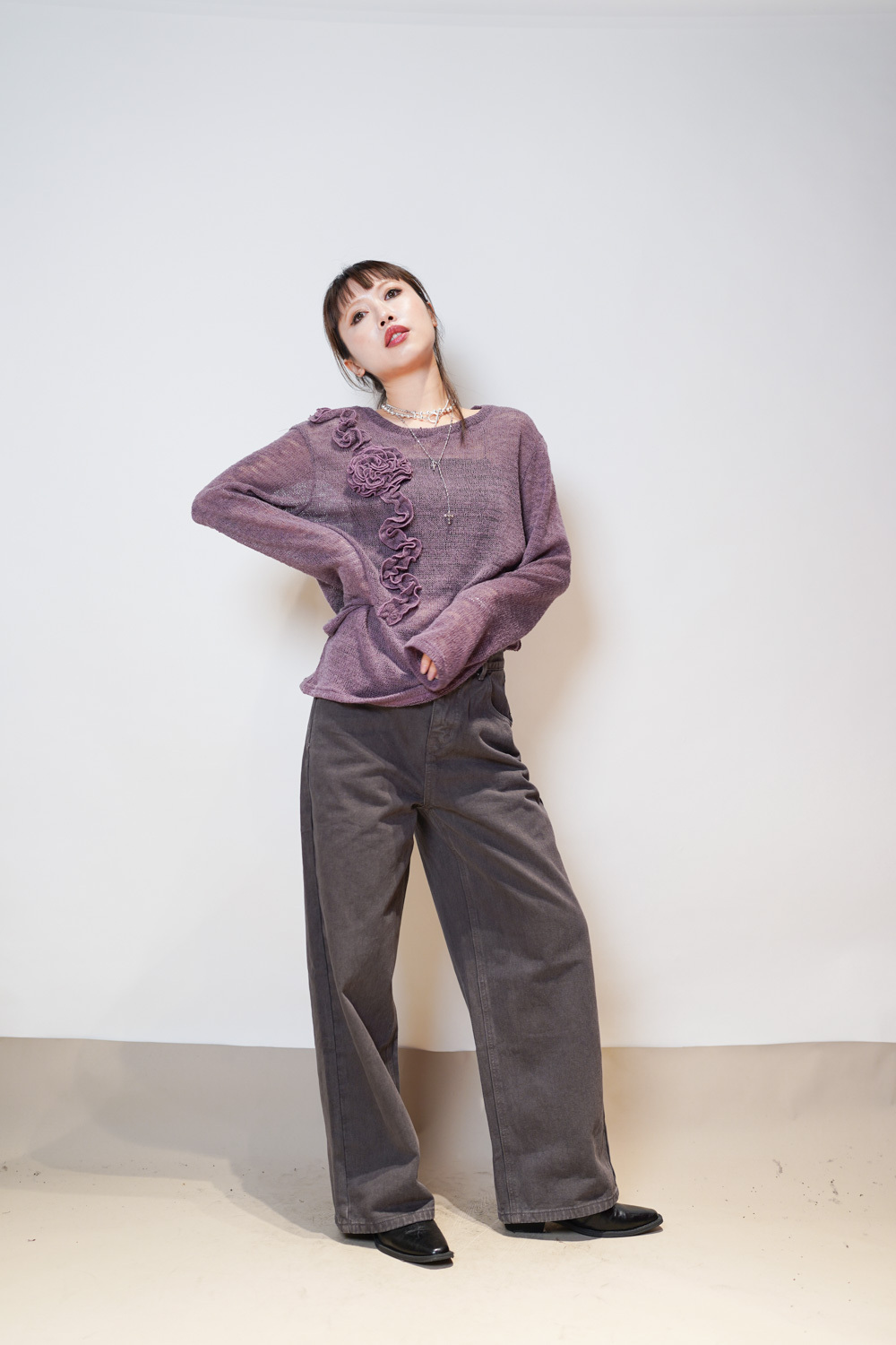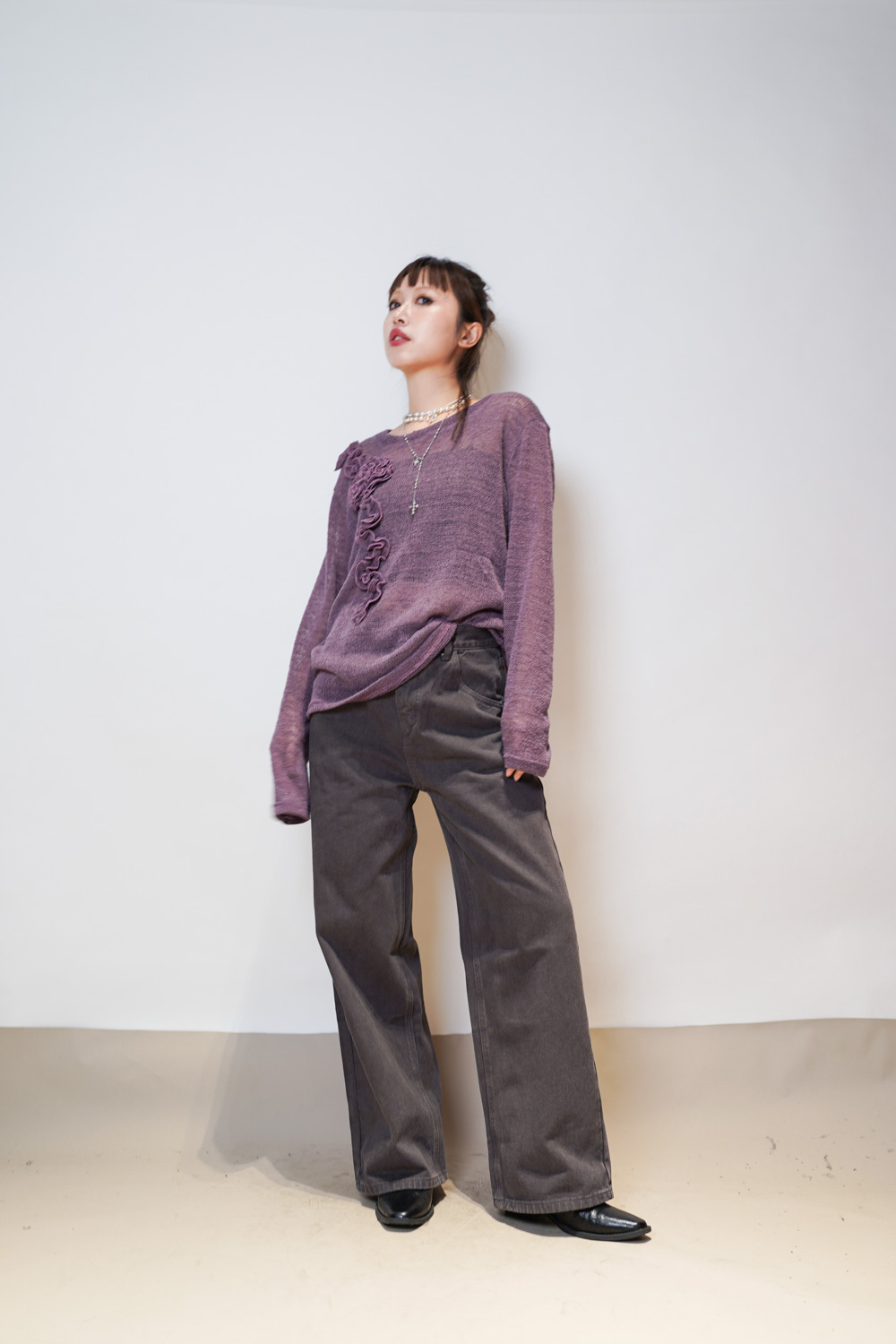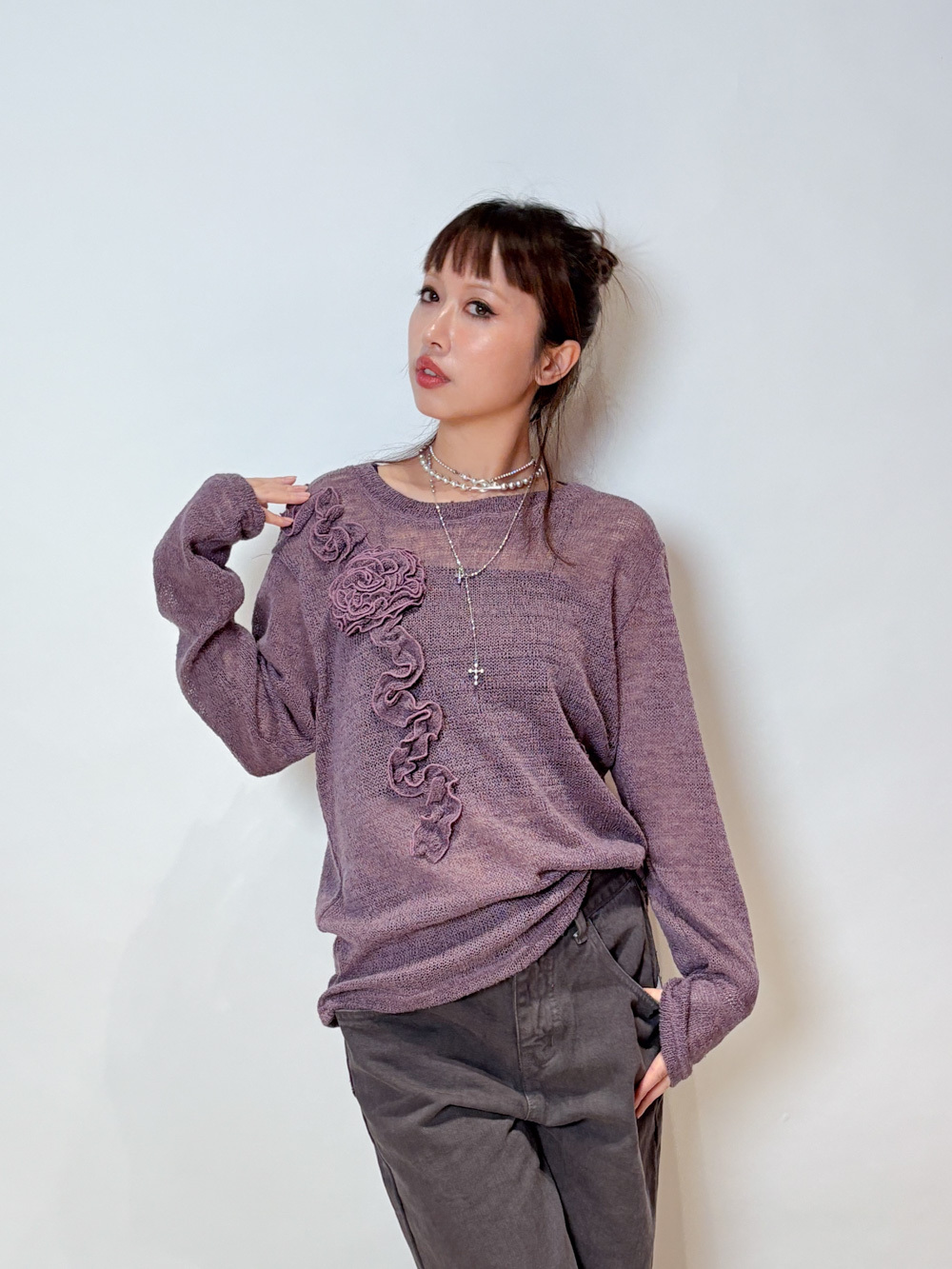 blooming flower loose knit (WHITE/PURPLE)