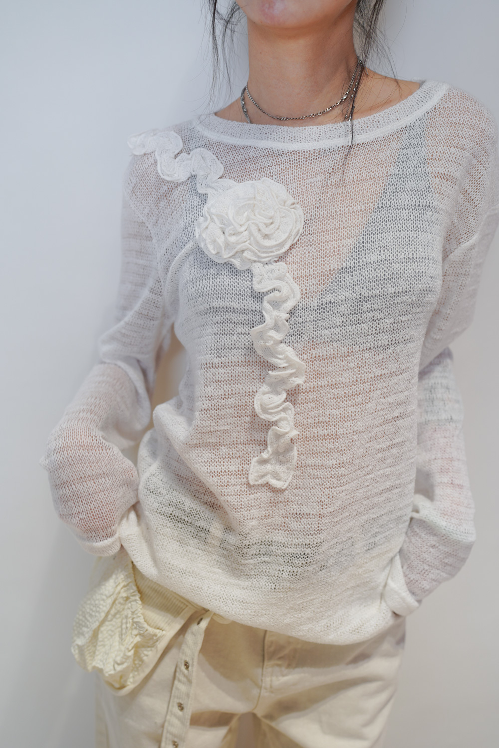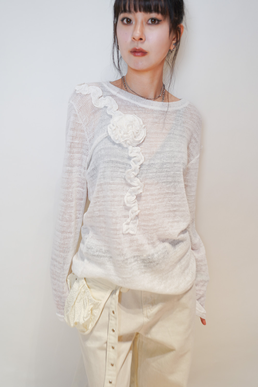 blooming flower loose knit (WHITE/PURPLE)