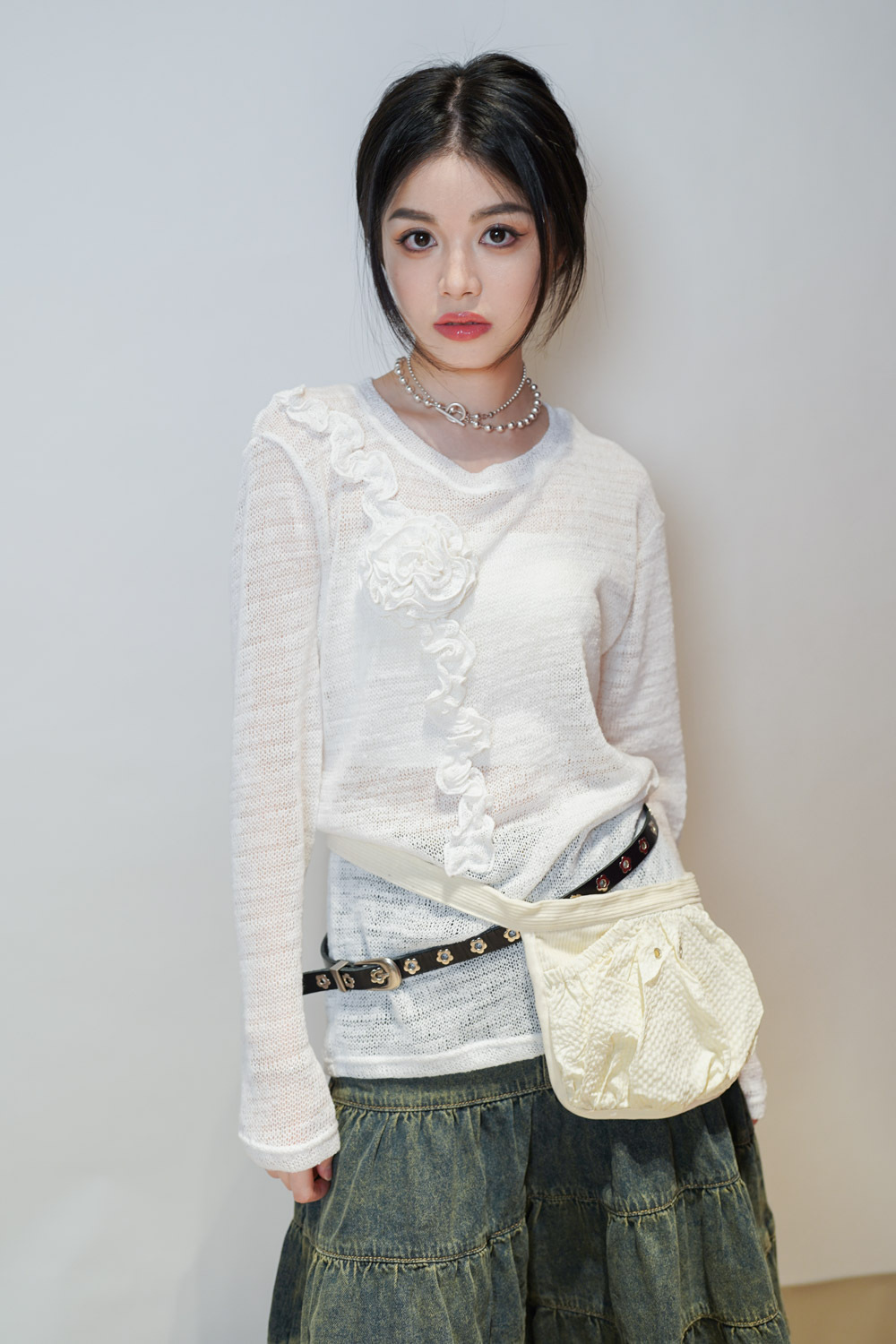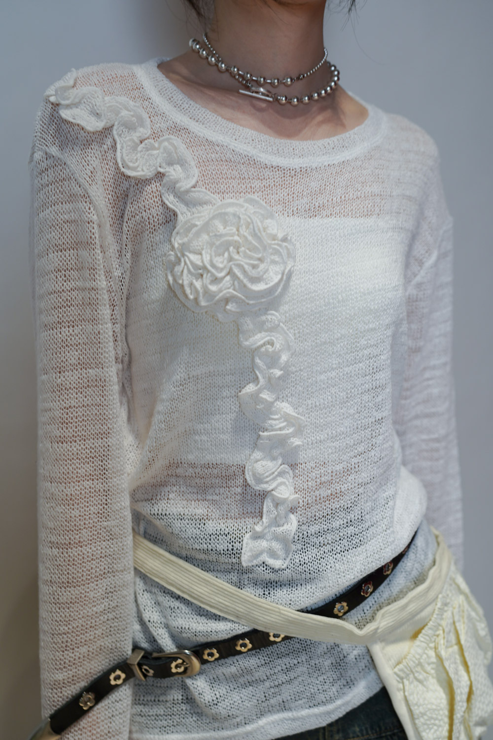 3D立體花花 肩膀延伸至心口 華麗設計感/玩味感十足 時尚不無聊/
