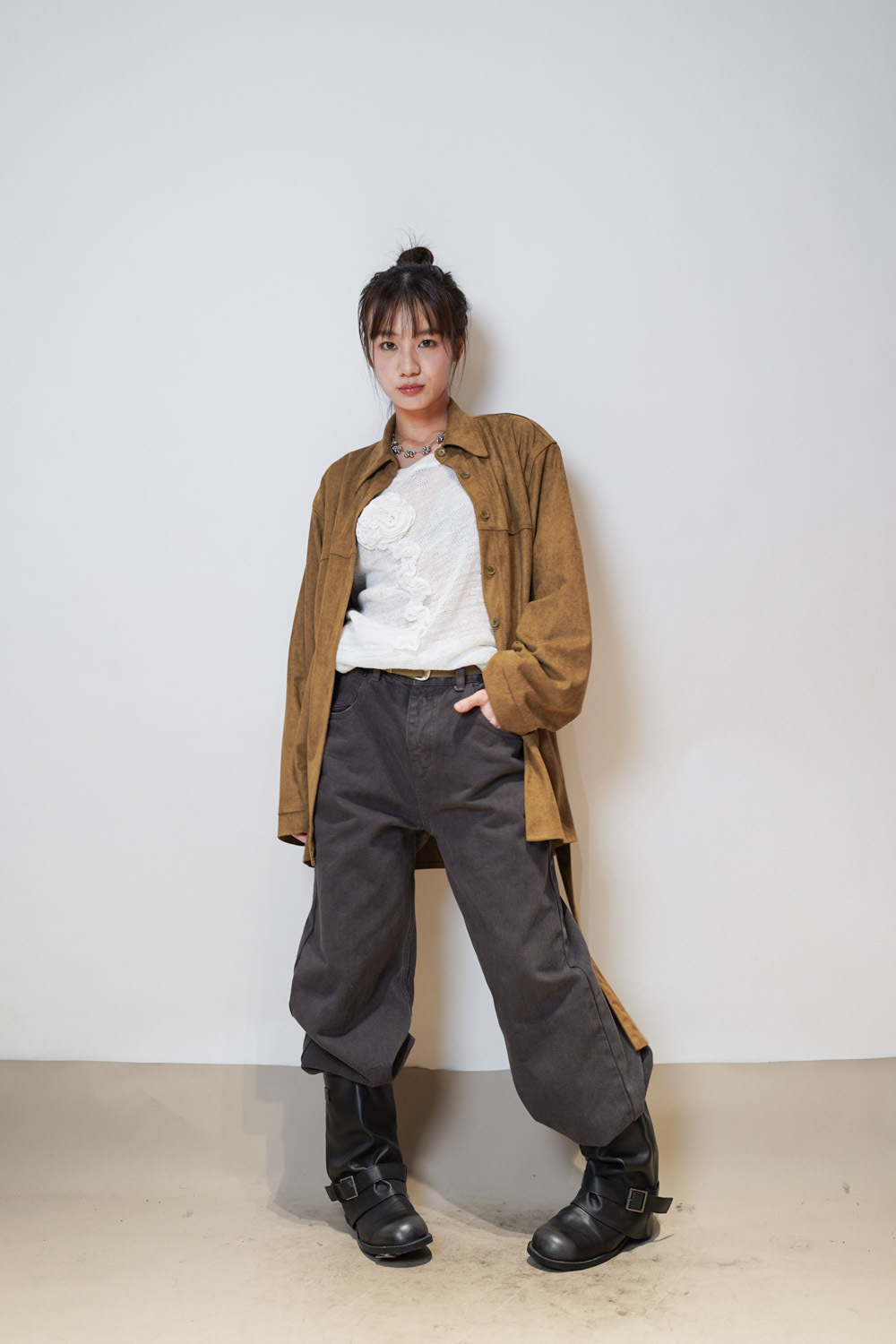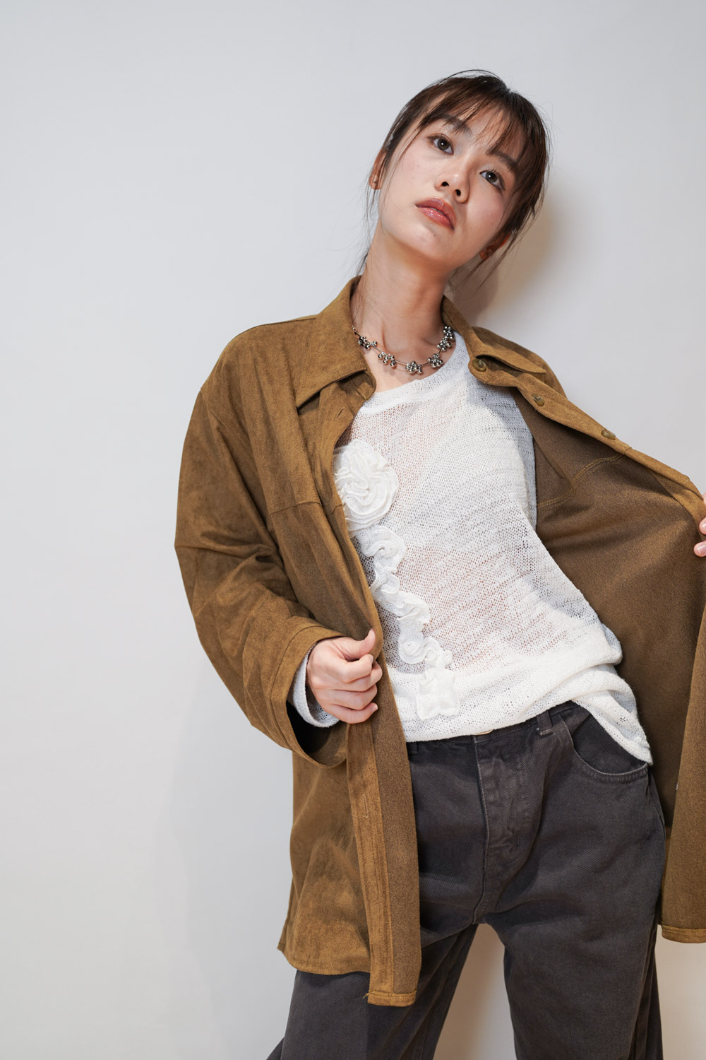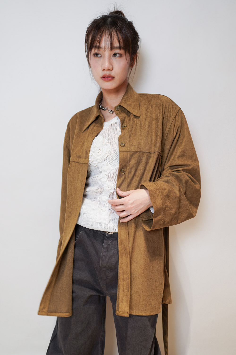 落肩設計 更有隨性帥氣感 /長款設計 營造紙片人效果/