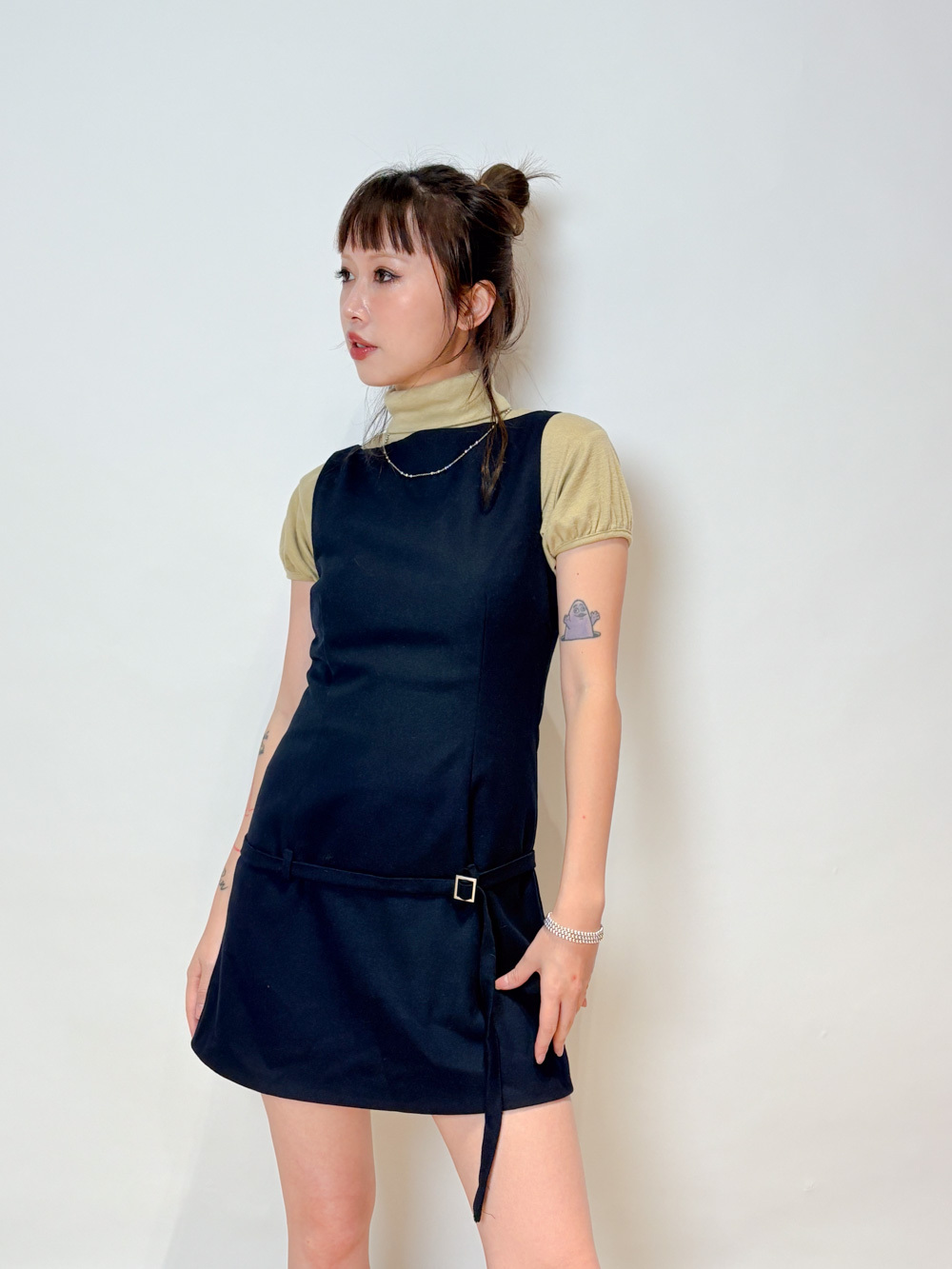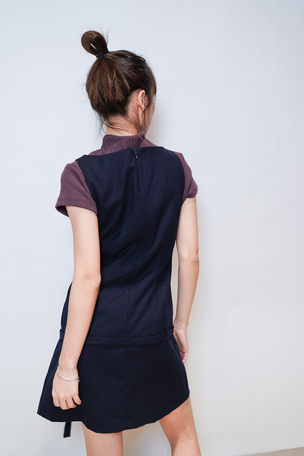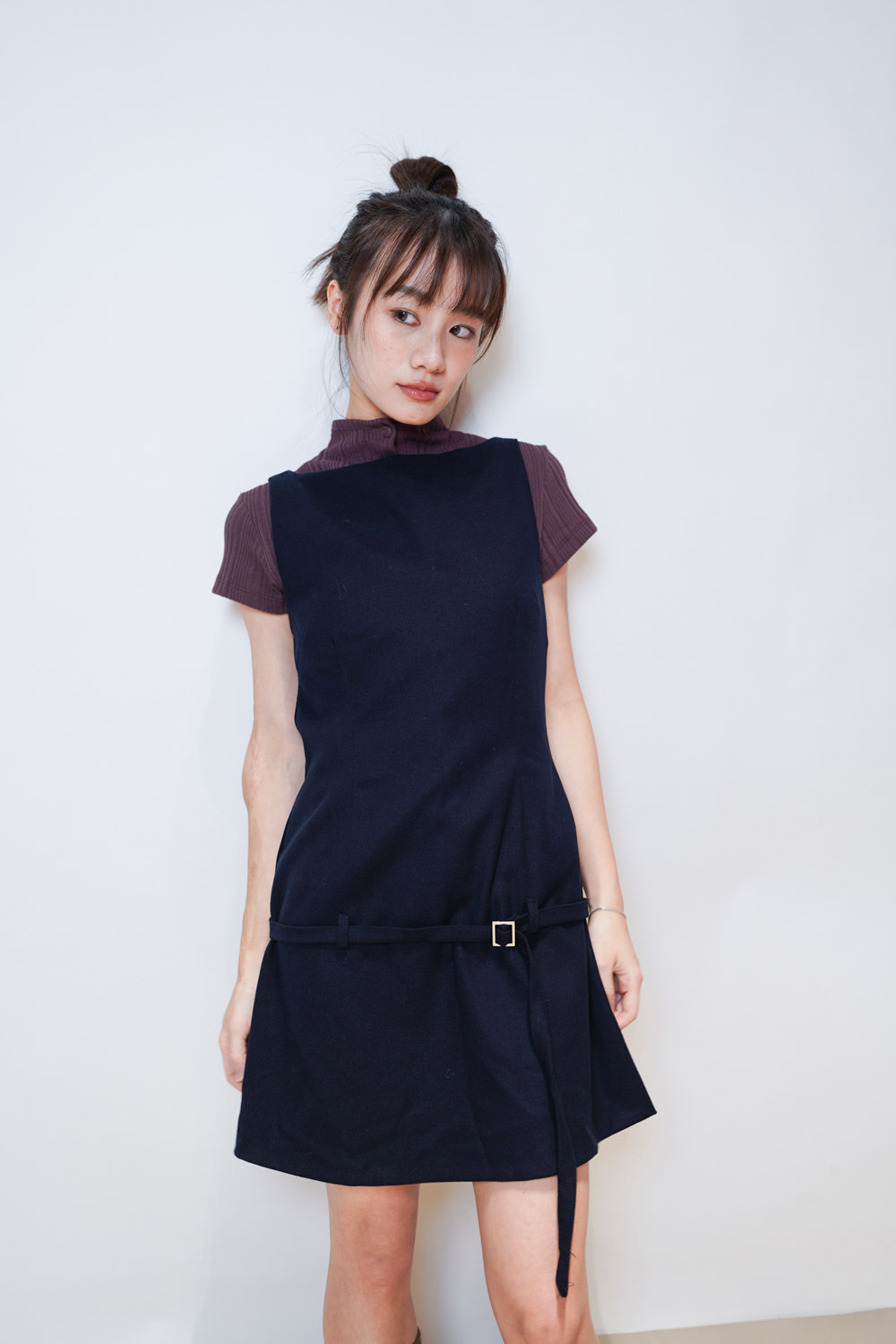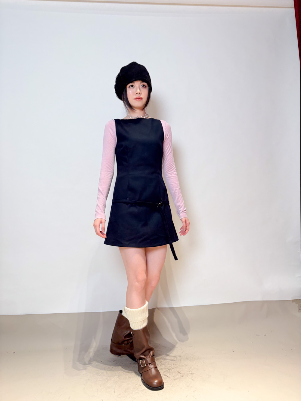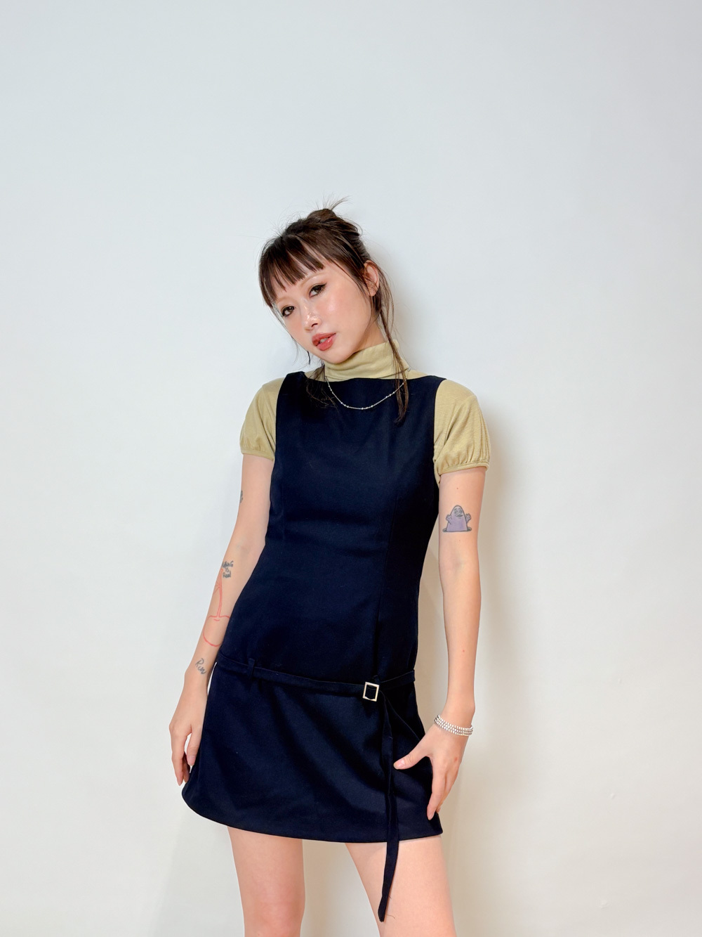 Love~ boatneck retro paper doll dress with waistbelt (NAVY)