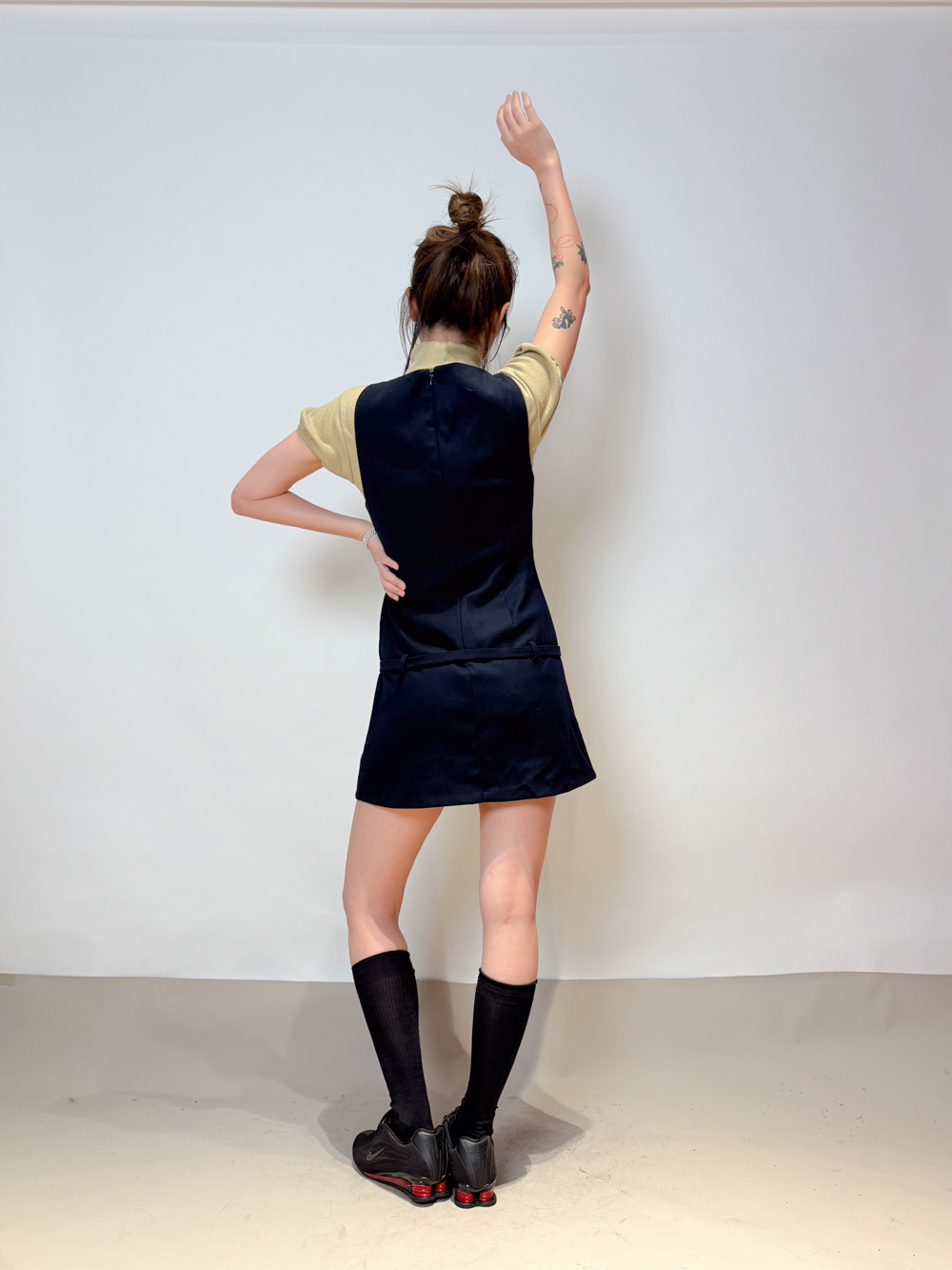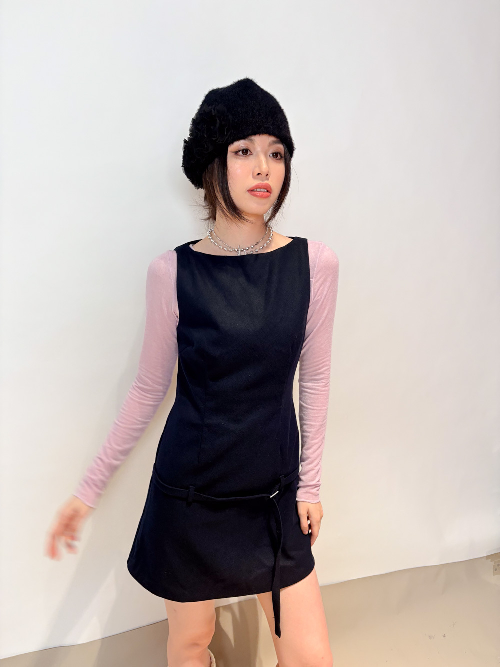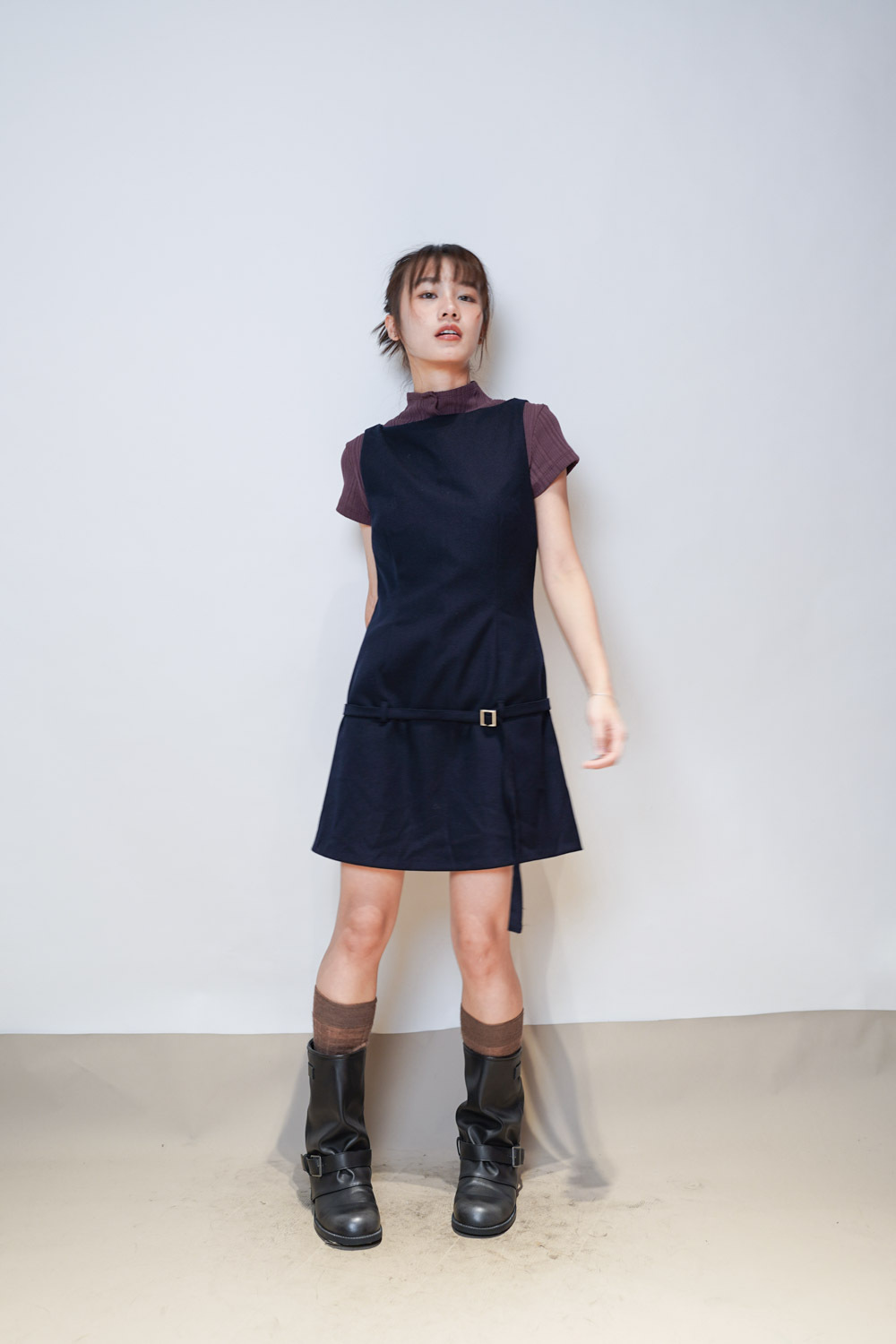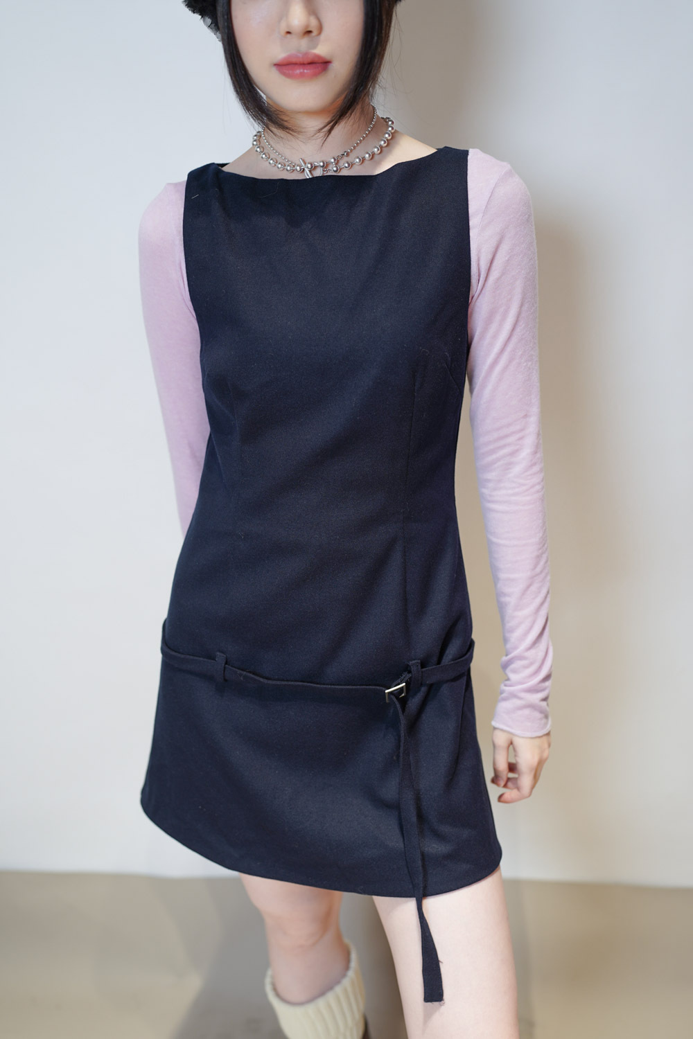 Love~ boatneck retro paper doll dress with waistbelt (NAVY)