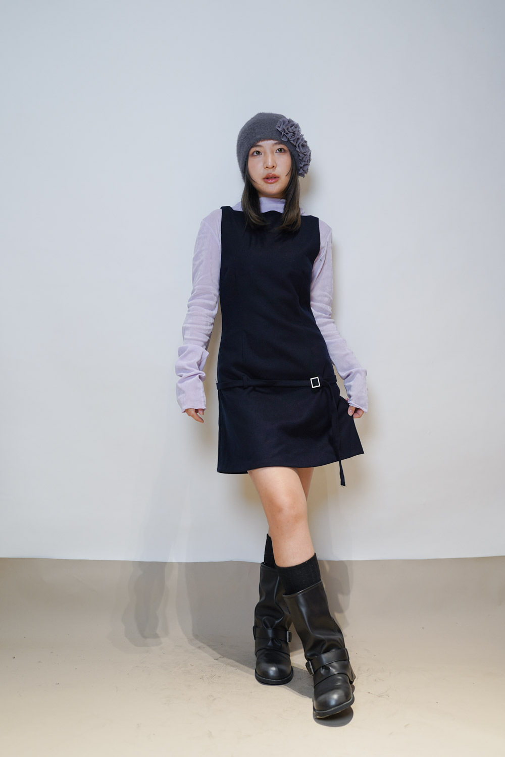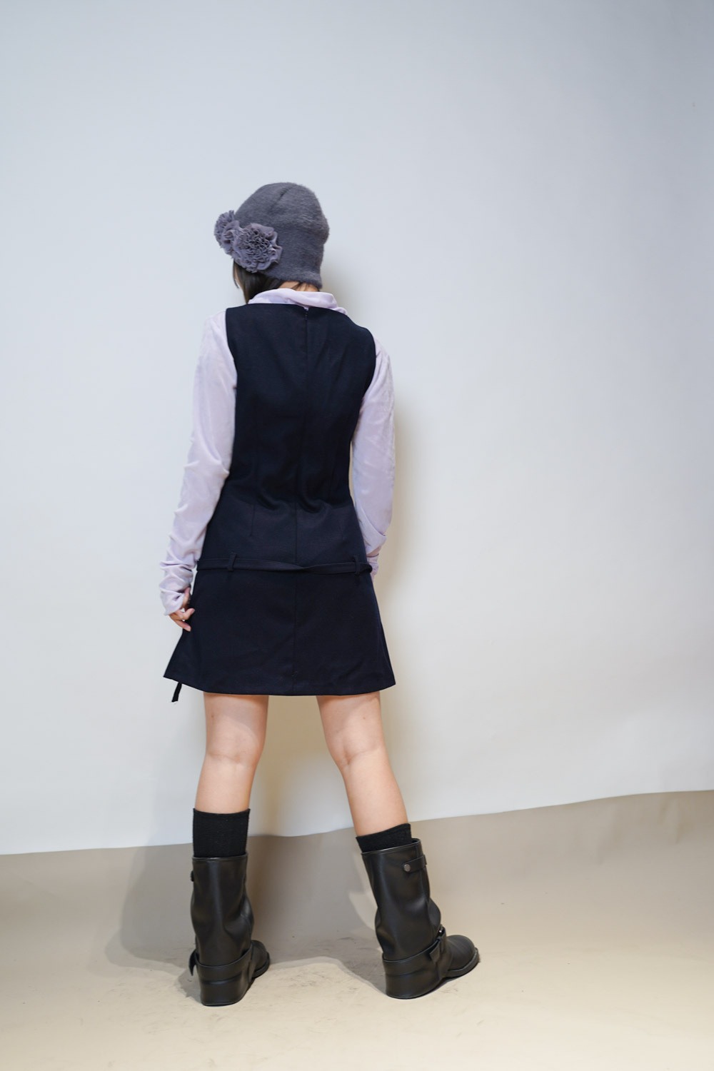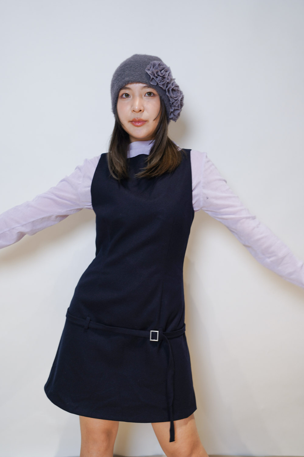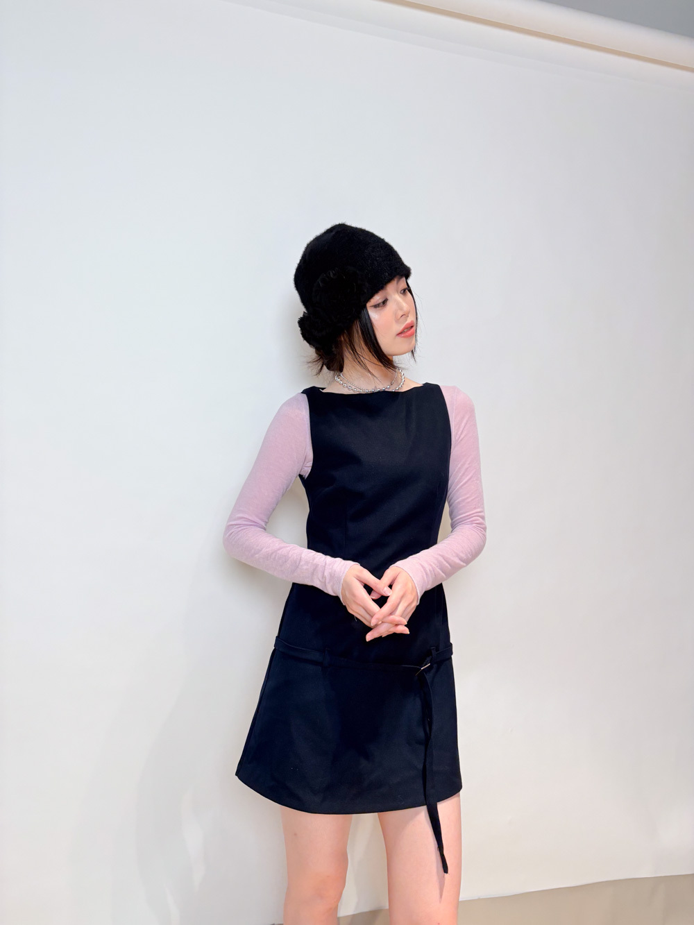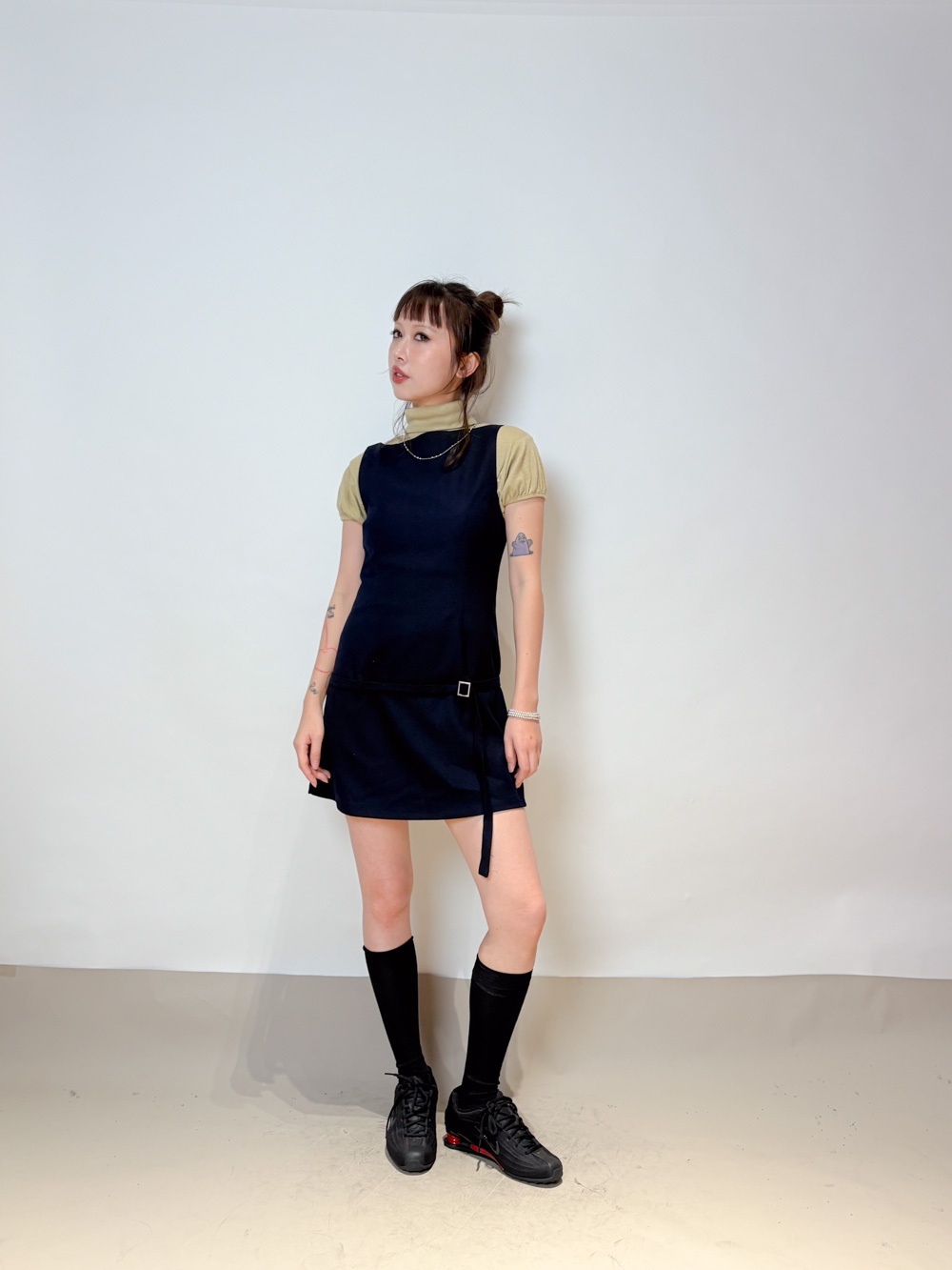 Love~ boatneck retro paper doll dress with waistbelt (NAVY)