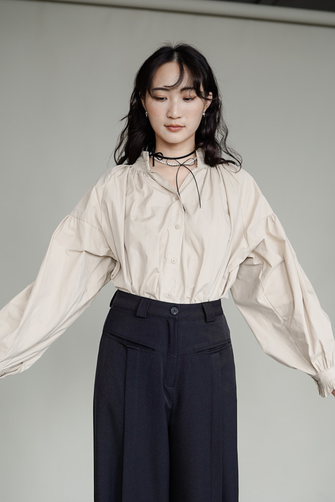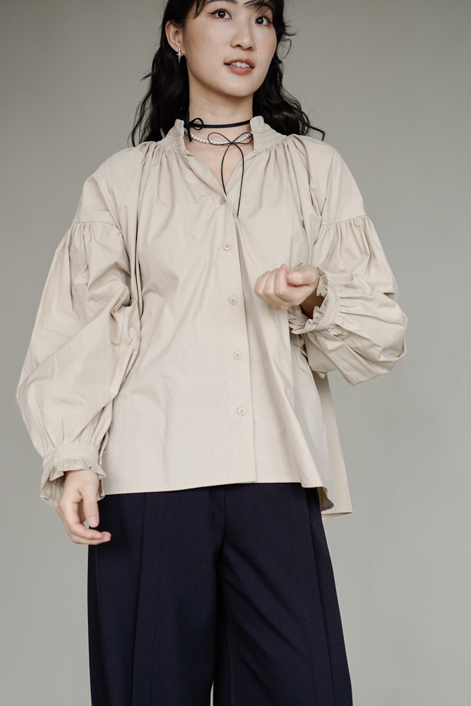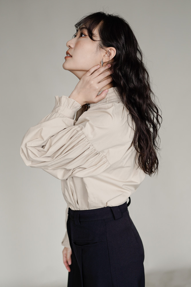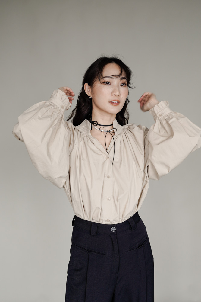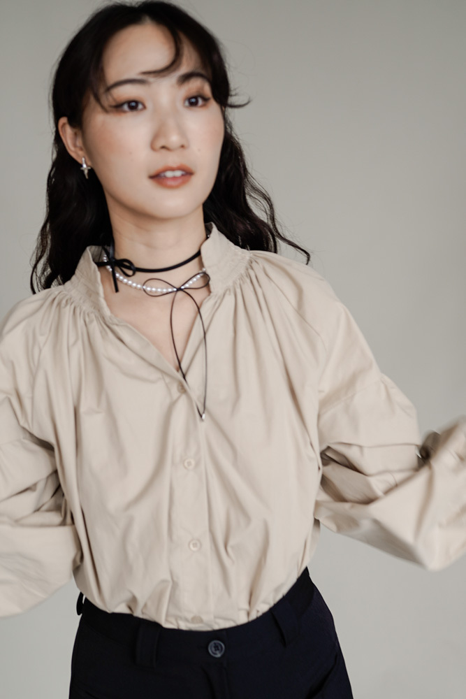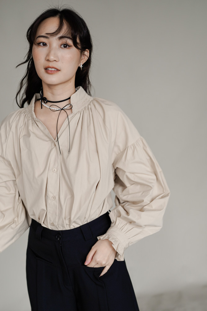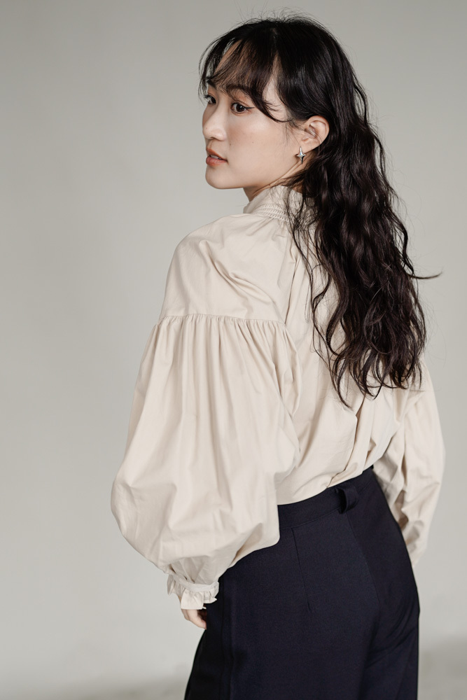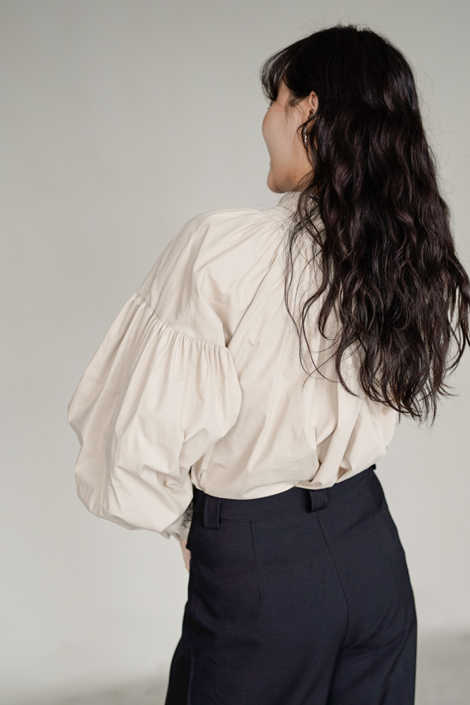 Bubble sleeves vada blouse (BEIGE /BLACK)