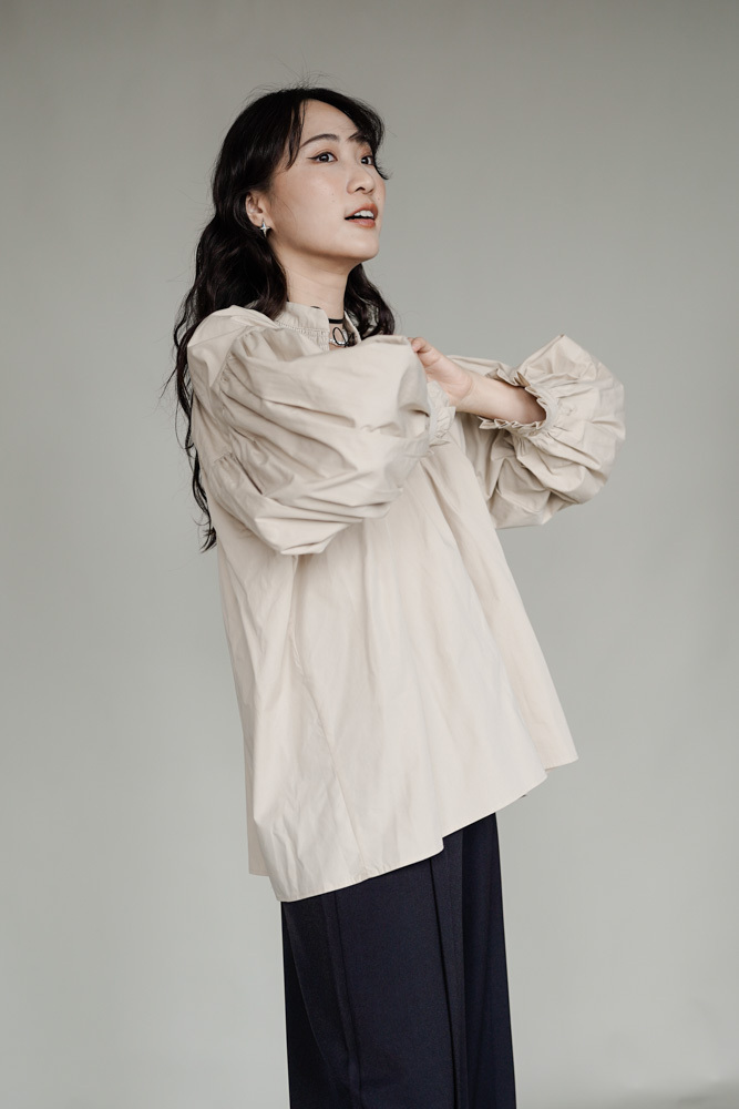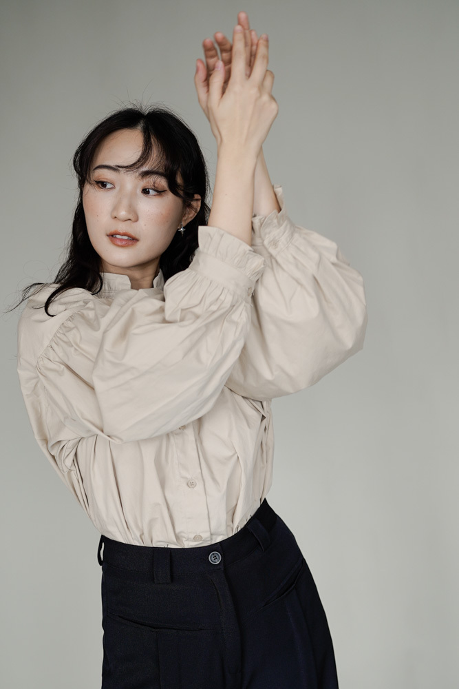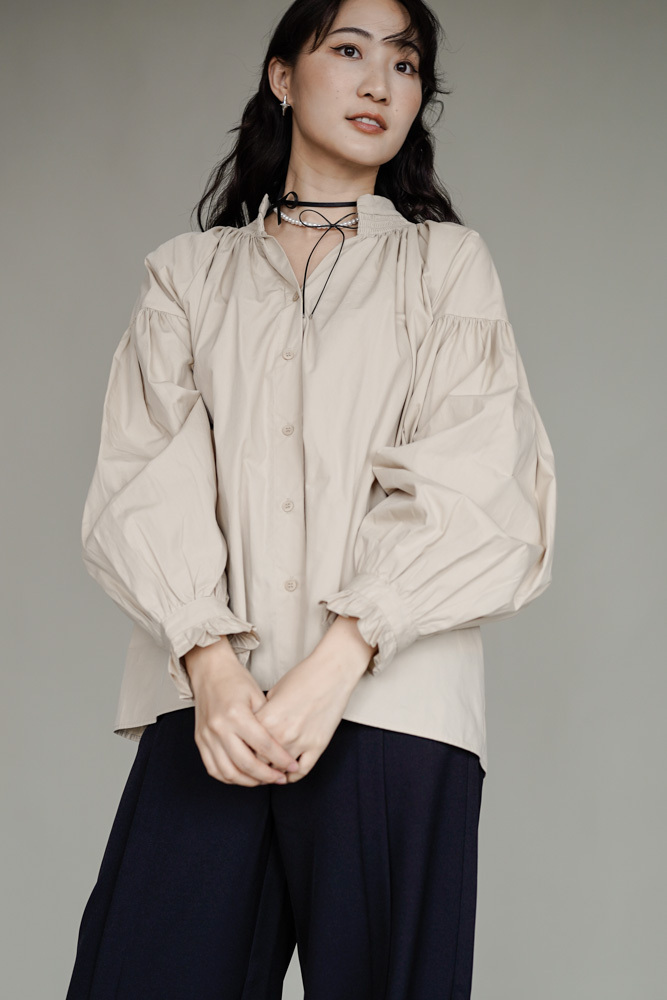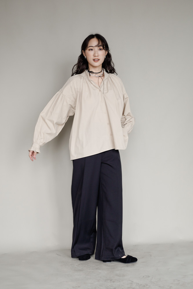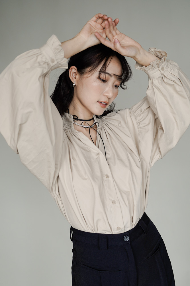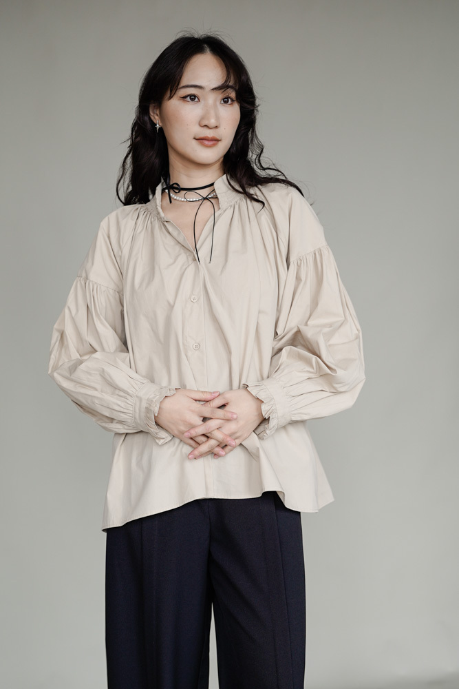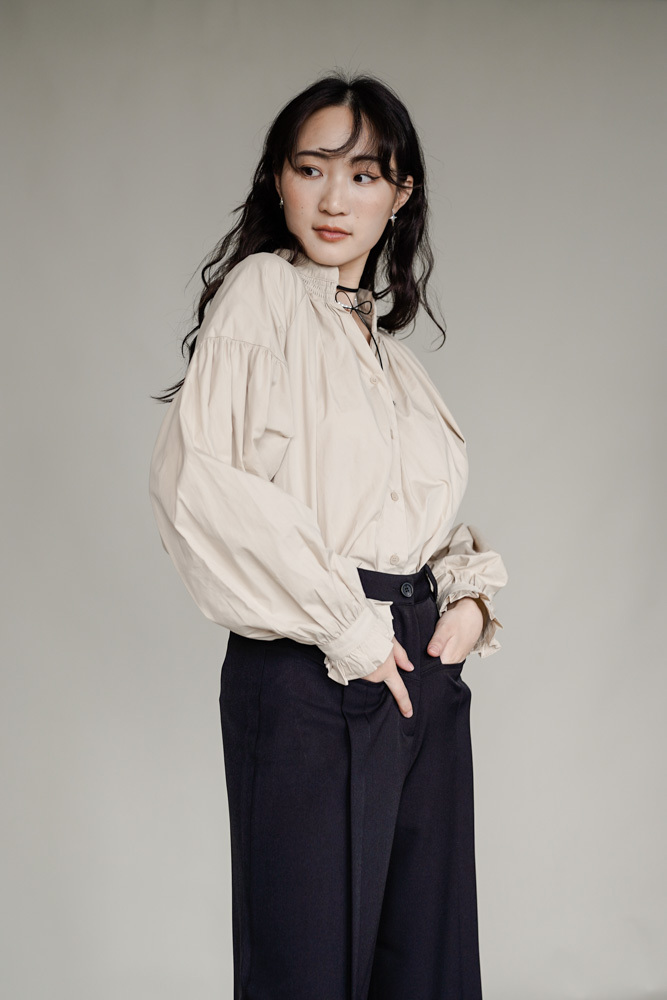 Bubble sleeves vada blouse (BEIGE /BLACK)