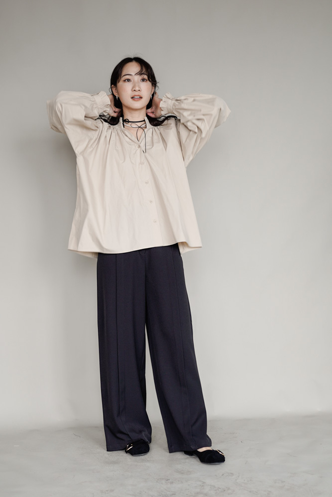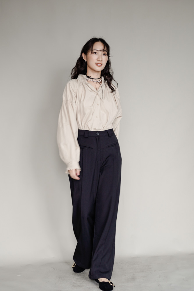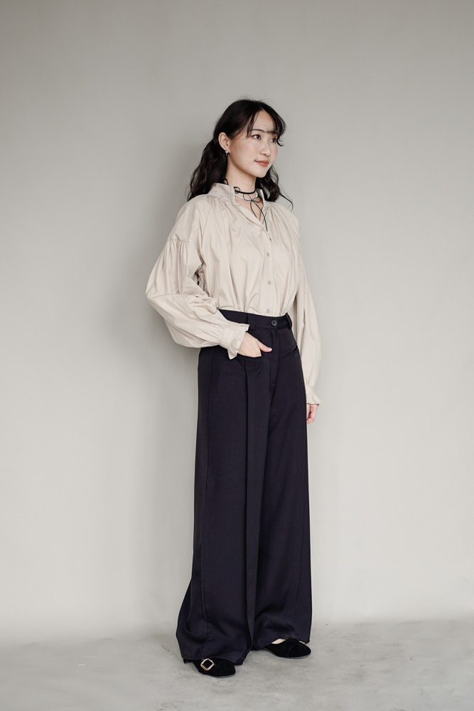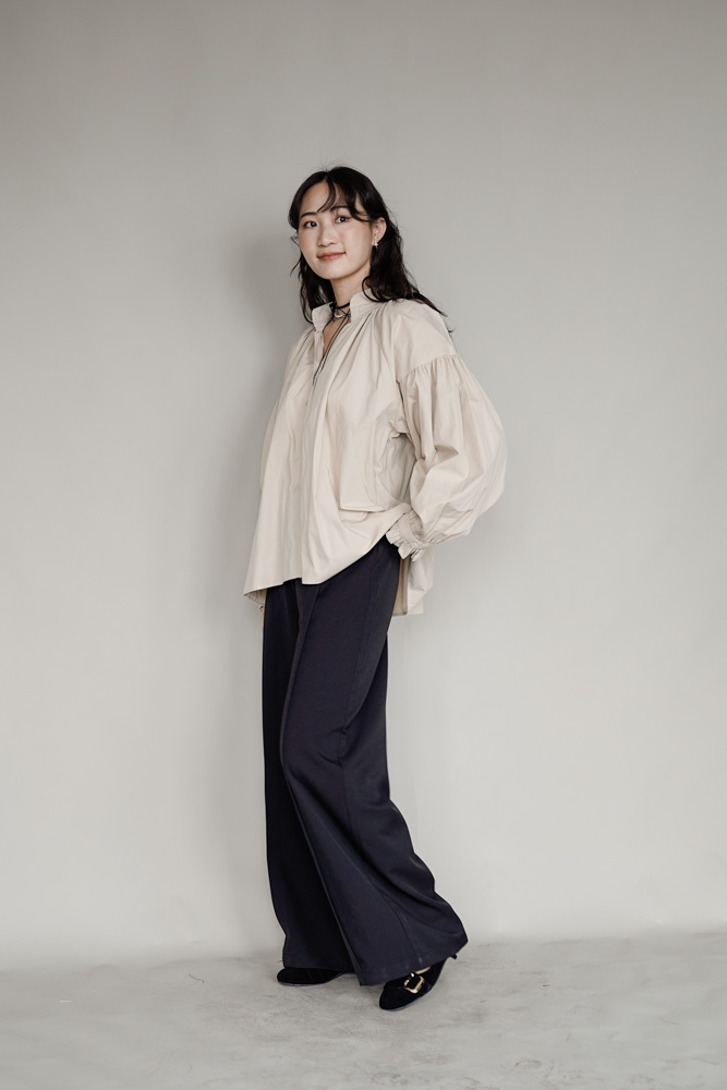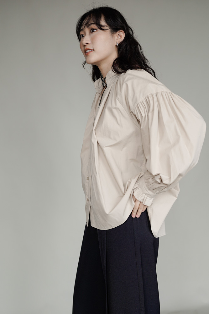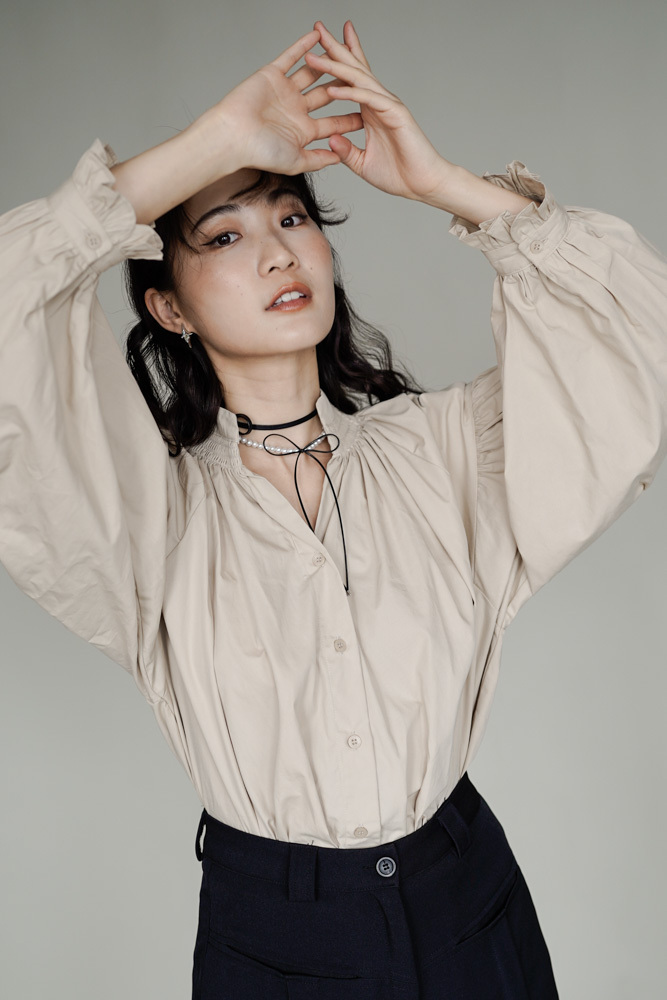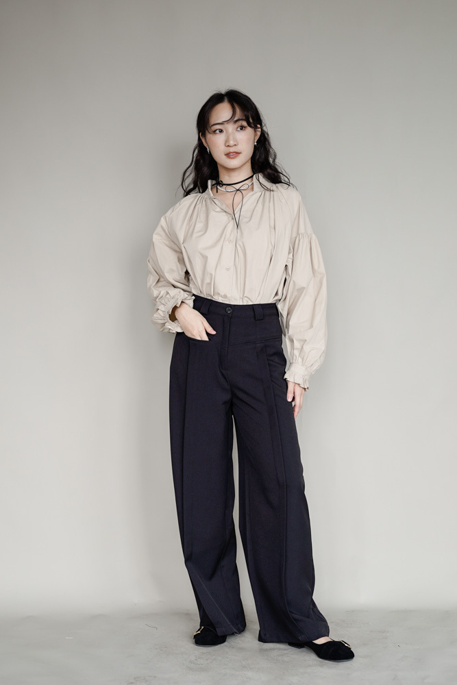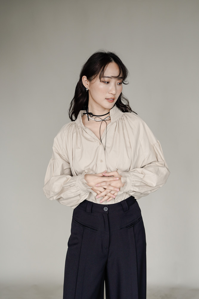 Bubble sleeves vada blouse (BEIGE /BLACK)