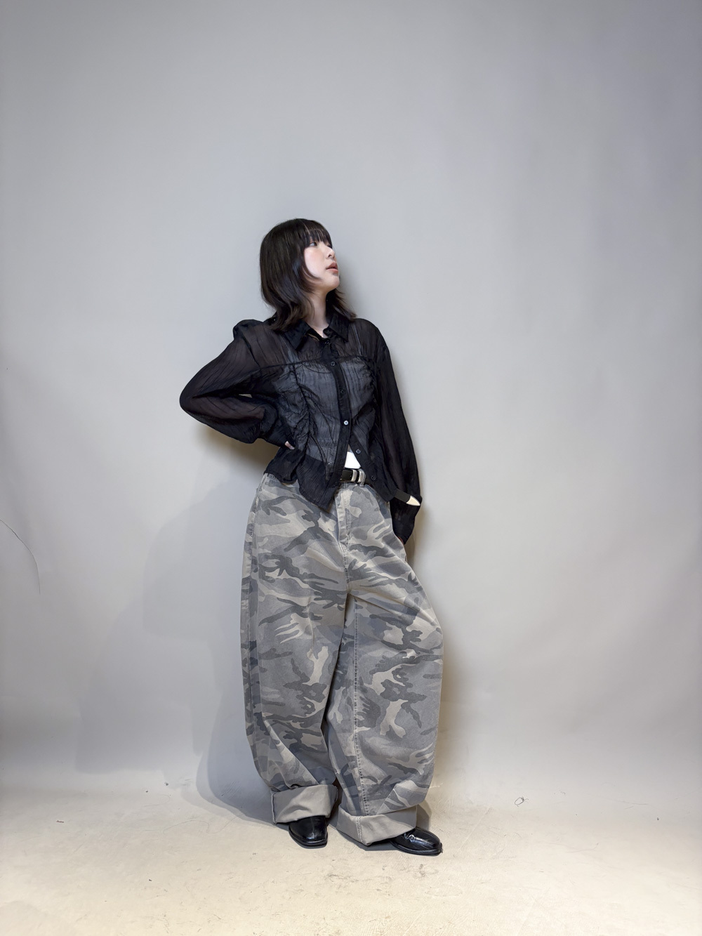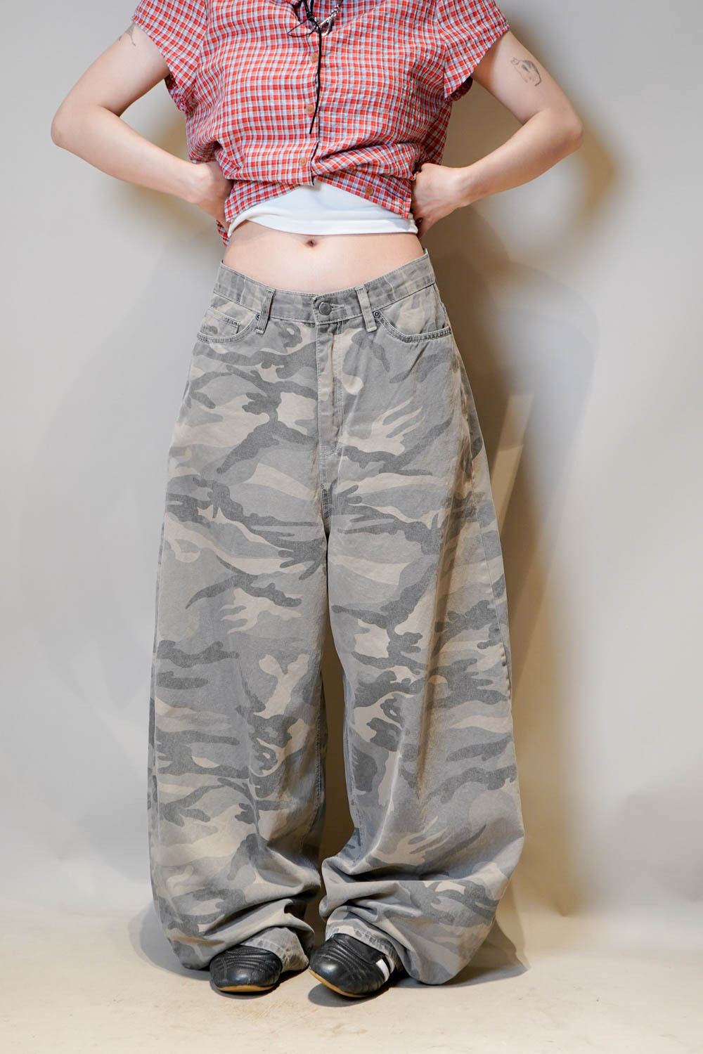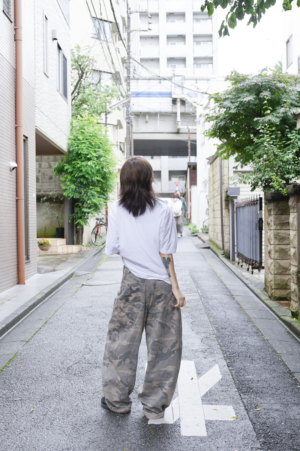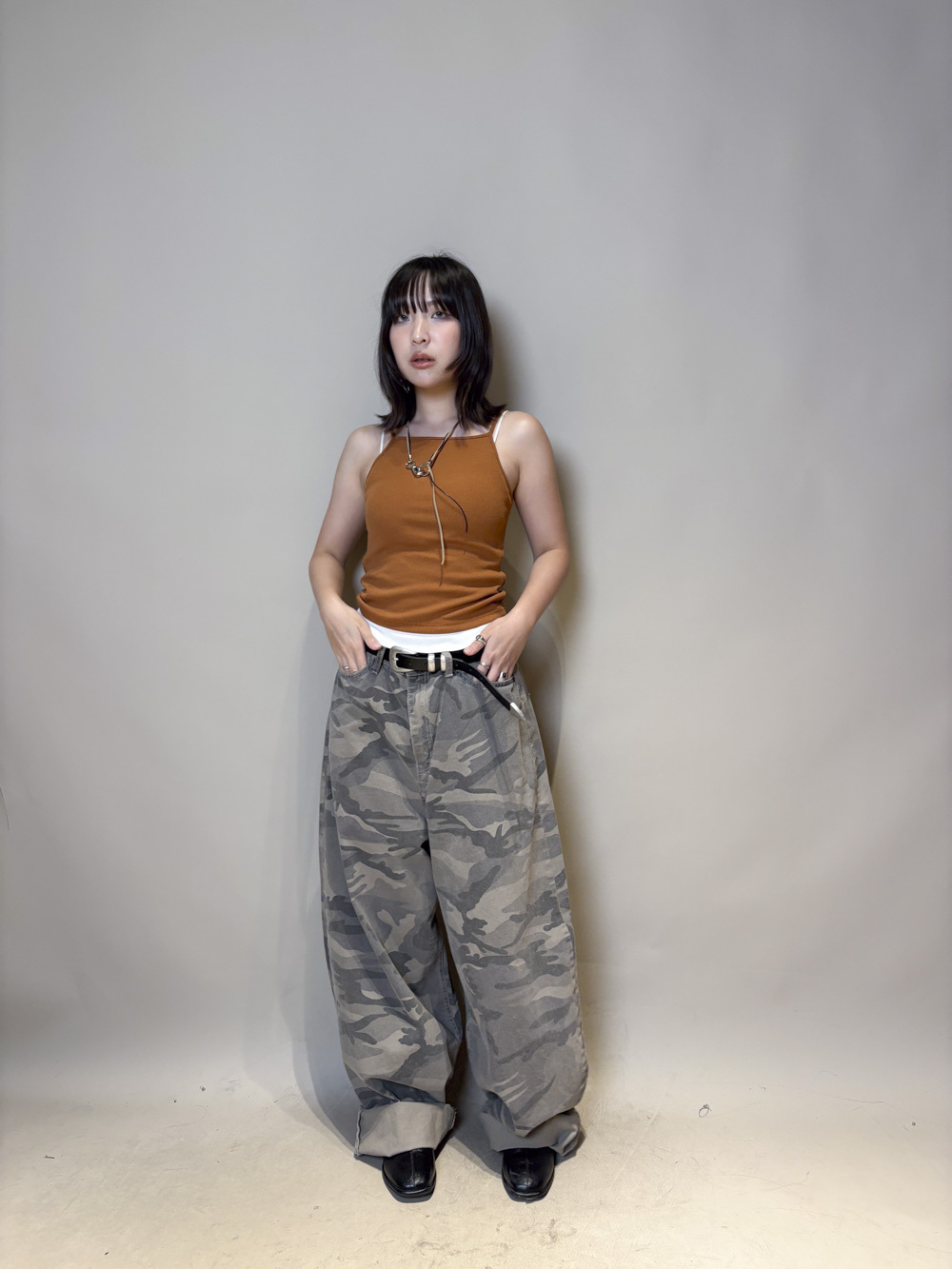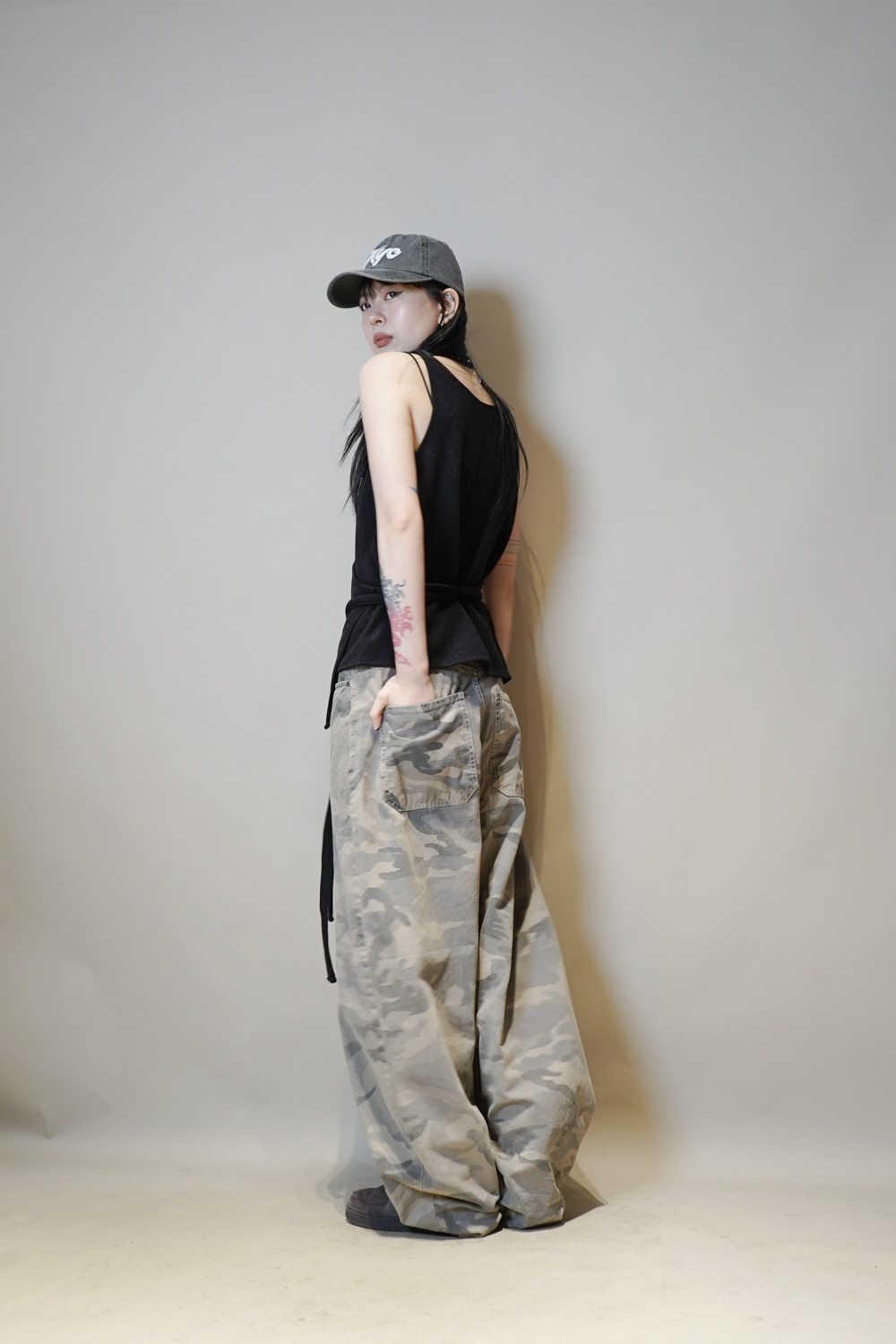 M: Waist: 76cm (29.5”) / Hip: 118cm (46”) / Rise: 38cm / Length: 110cm / Thigh: 78cm / Hem: 52cm