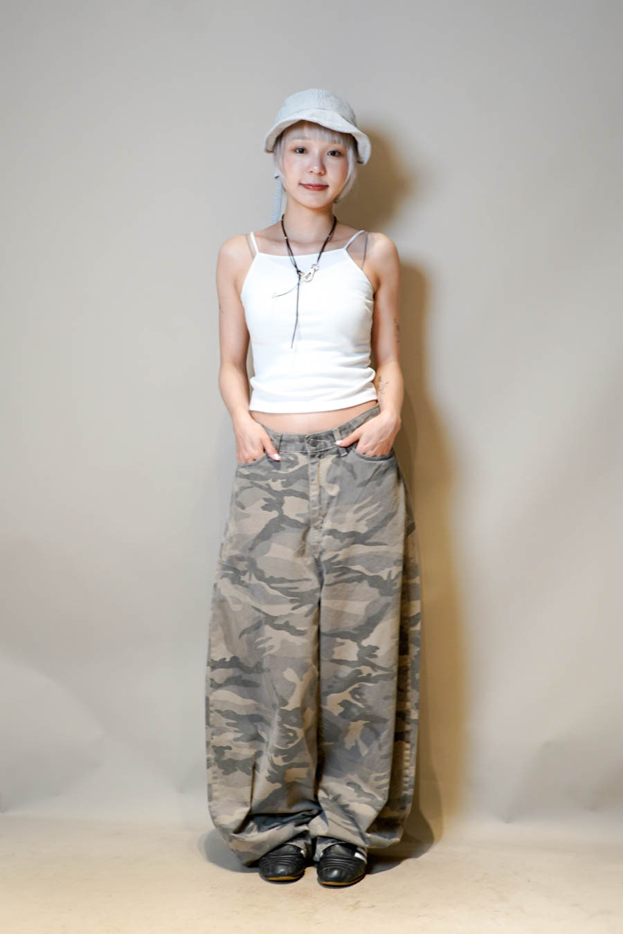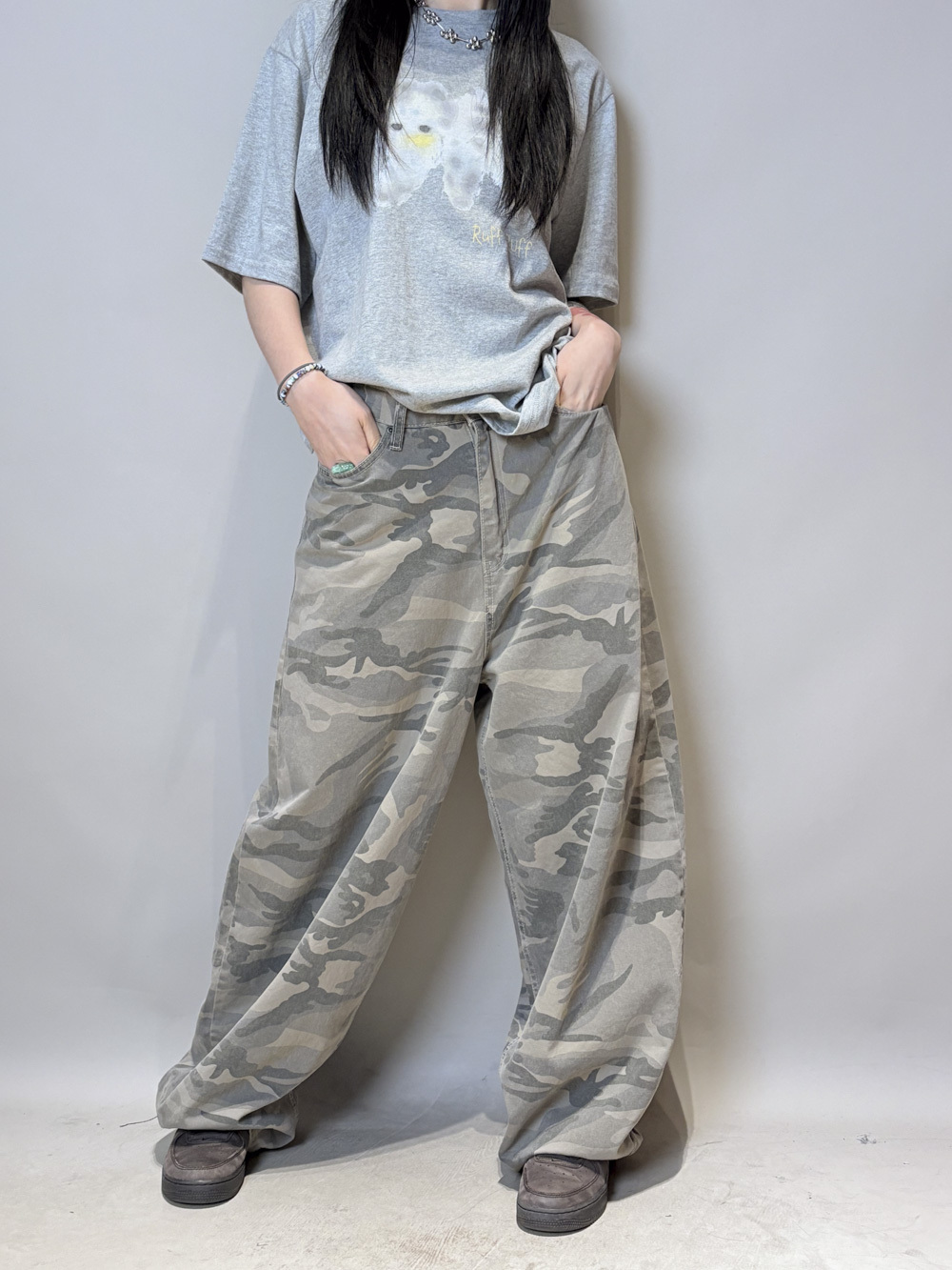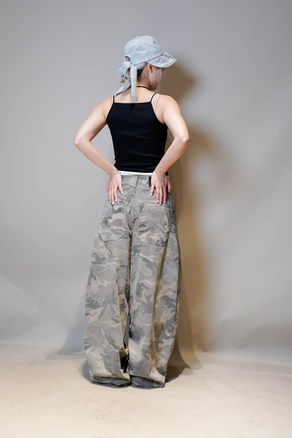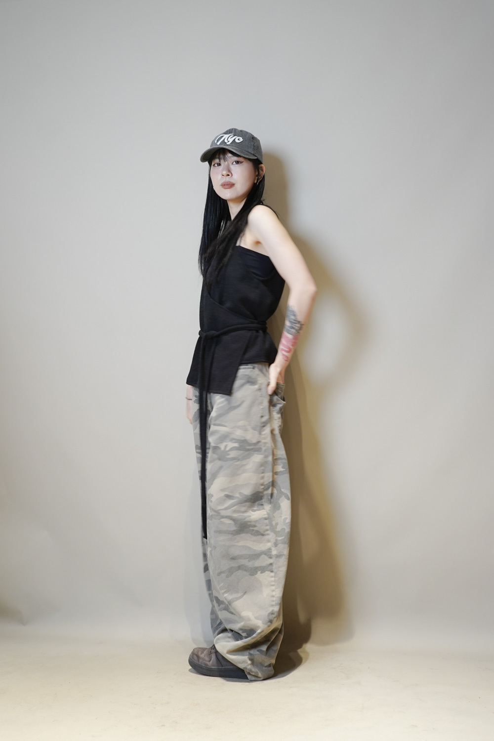 M: Waist: 76cm (29.5”) / Hip: 118cm (46”) / Rise: 38cm / Length: 110cm / Thigh: 78cm / Hem: 52cm