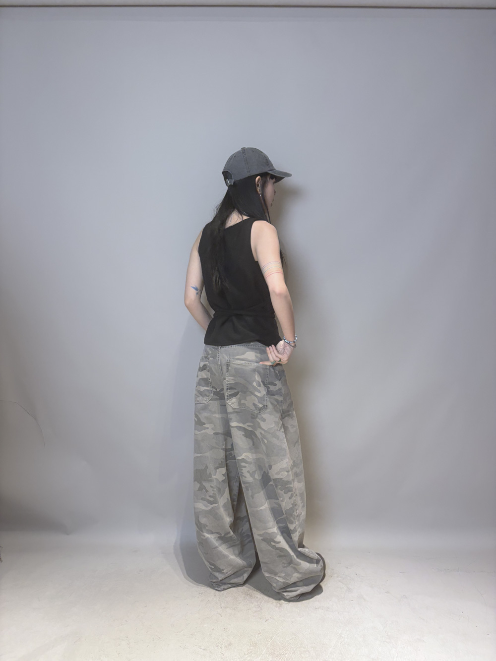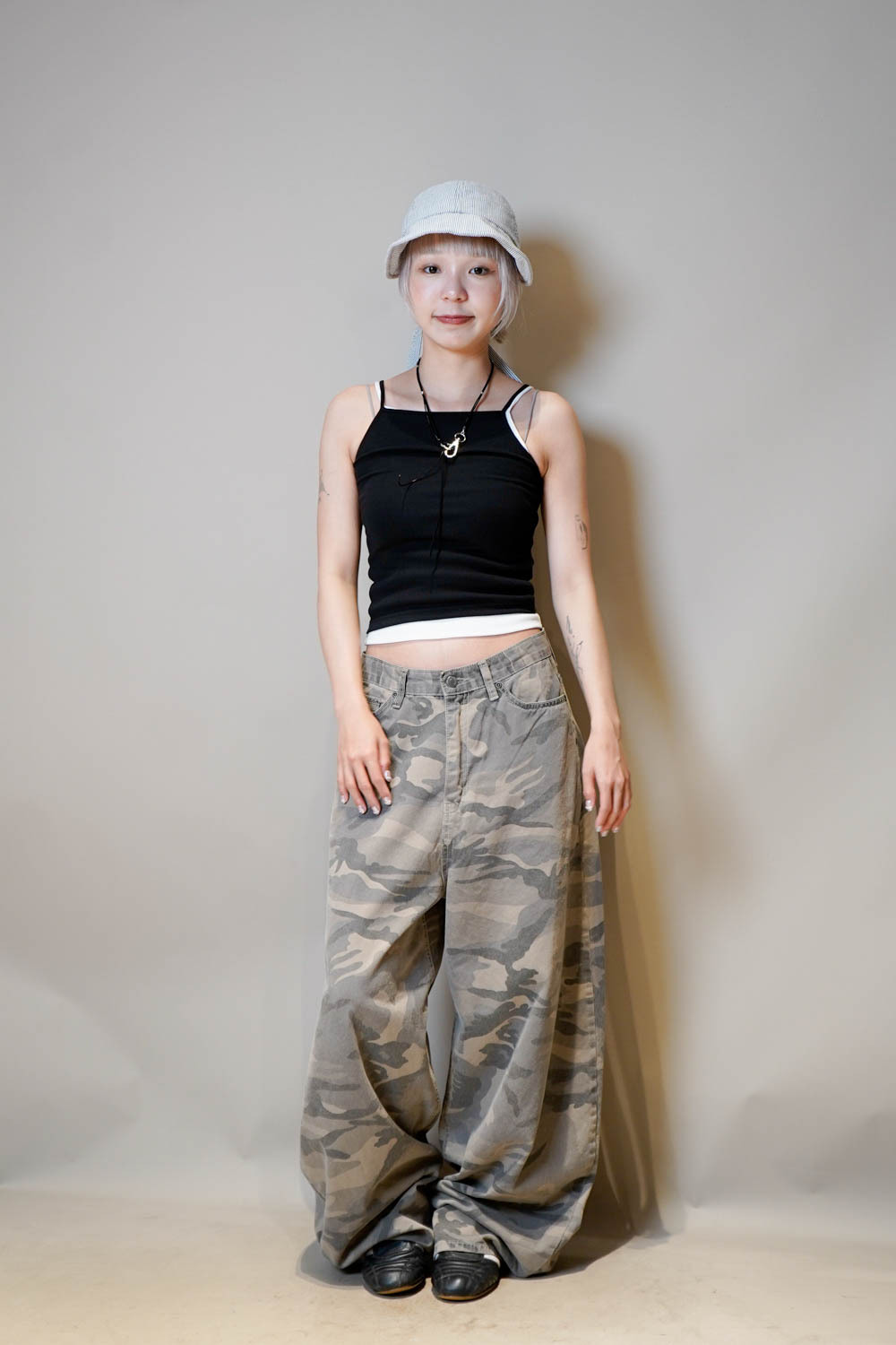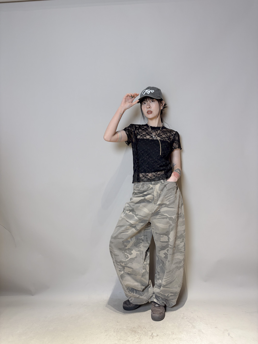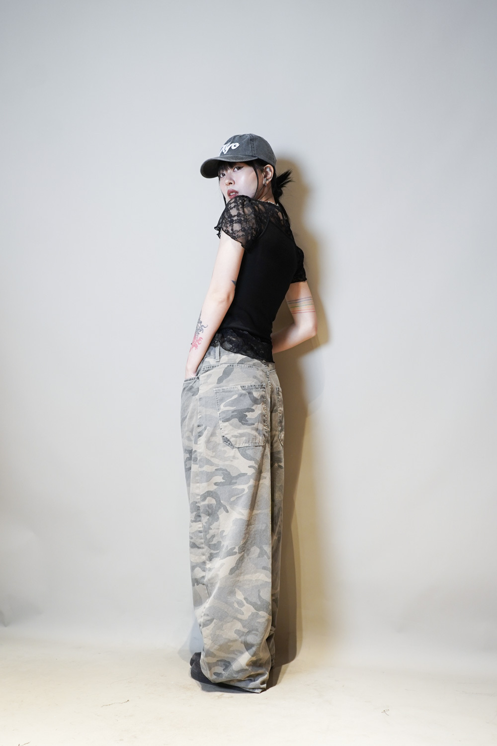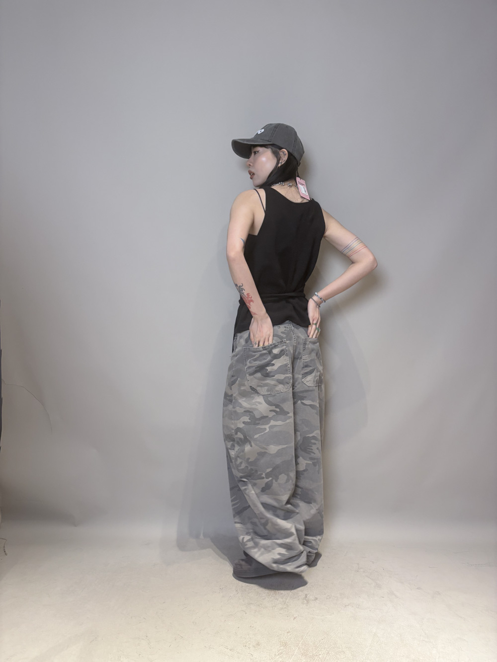 M: Waist: 76cm (29.5”) / Hip: 118cm (46”) / Rise: 38cm / Length: 110cm / Thigh: 78cm / Hem: 52cm