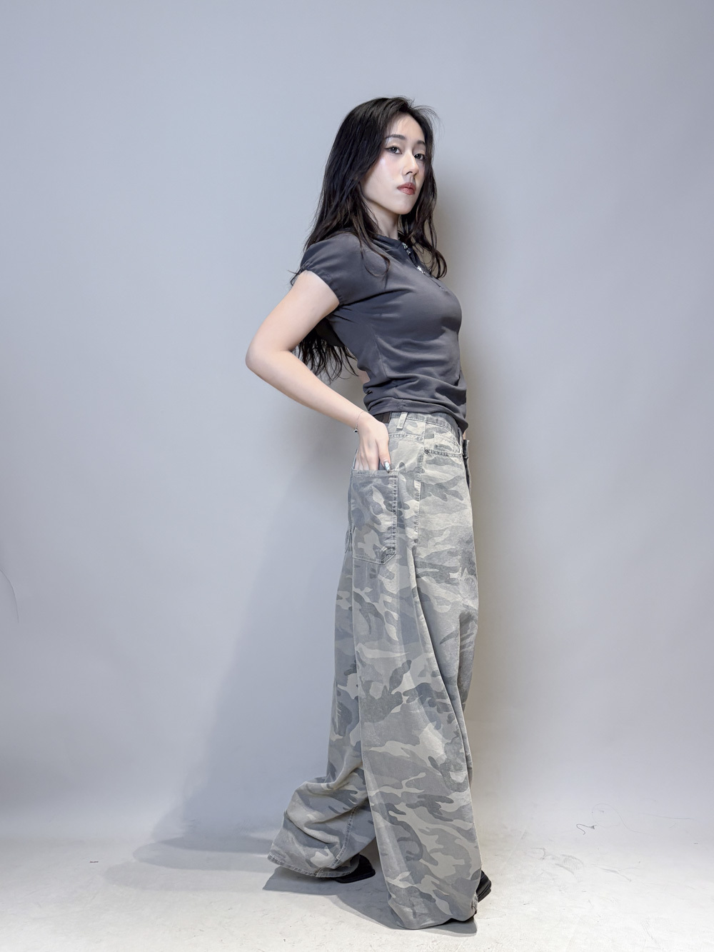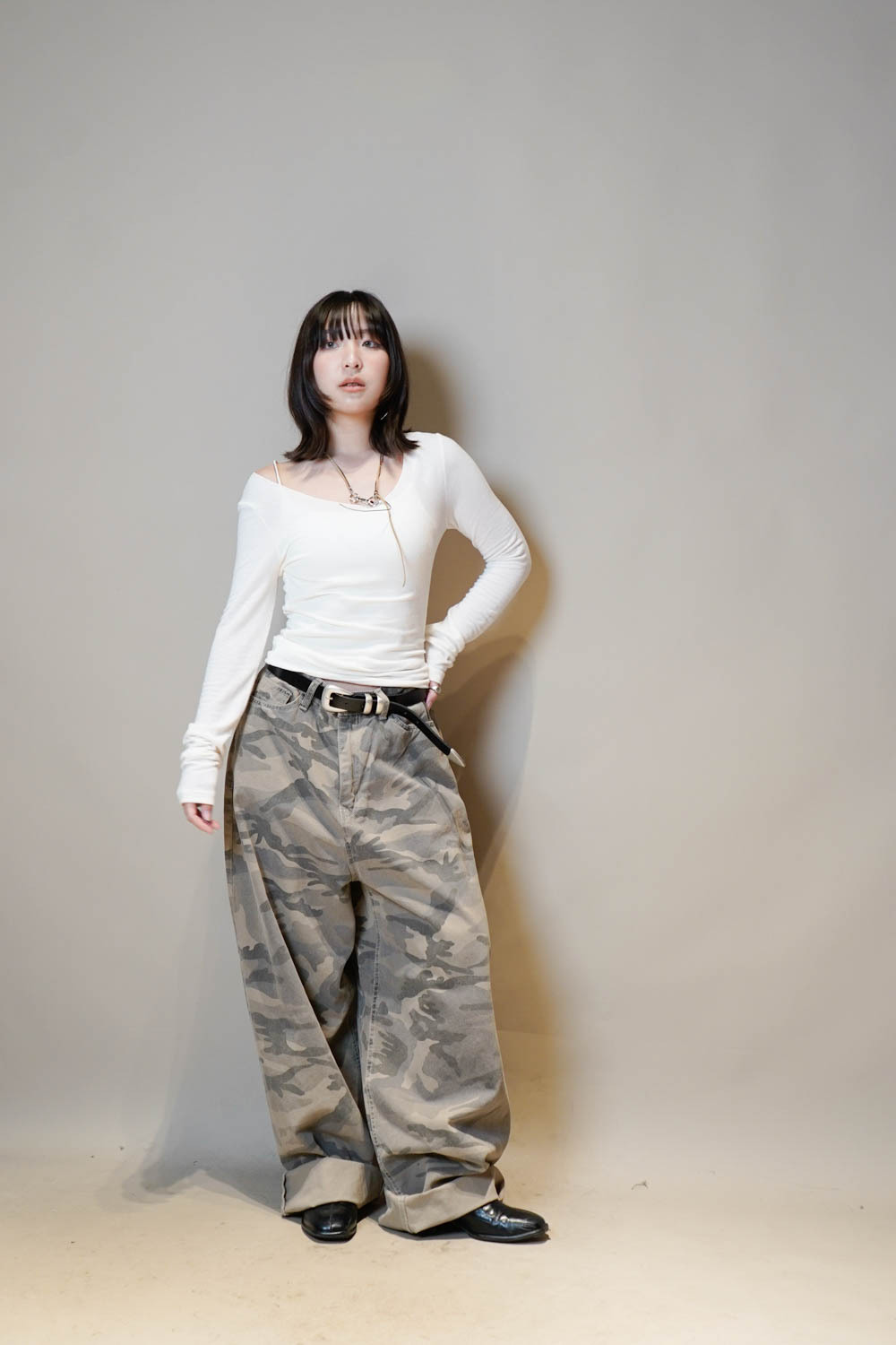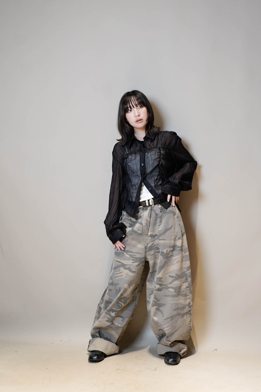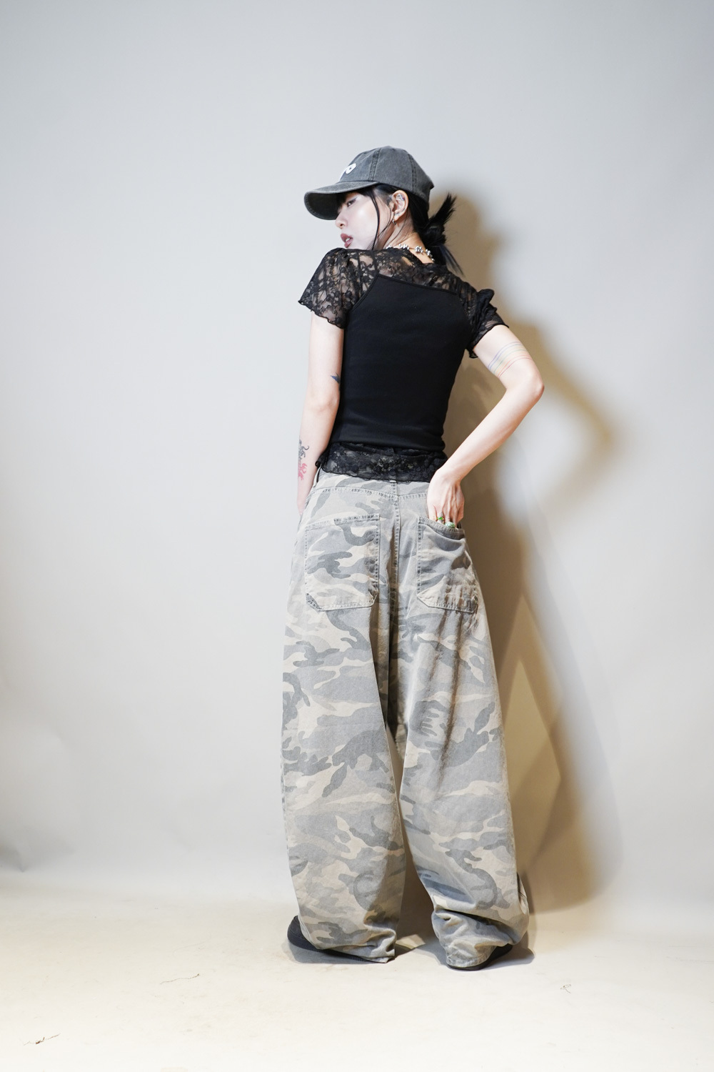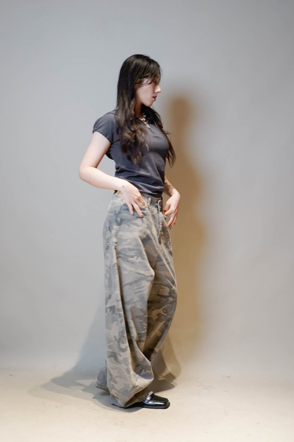 M: Waist: 76cm (29.5”) / Hip: 118cm (46”) / Rise: 38cm / Length: 110cm / Thigh: 78cm / Hem: 52cm