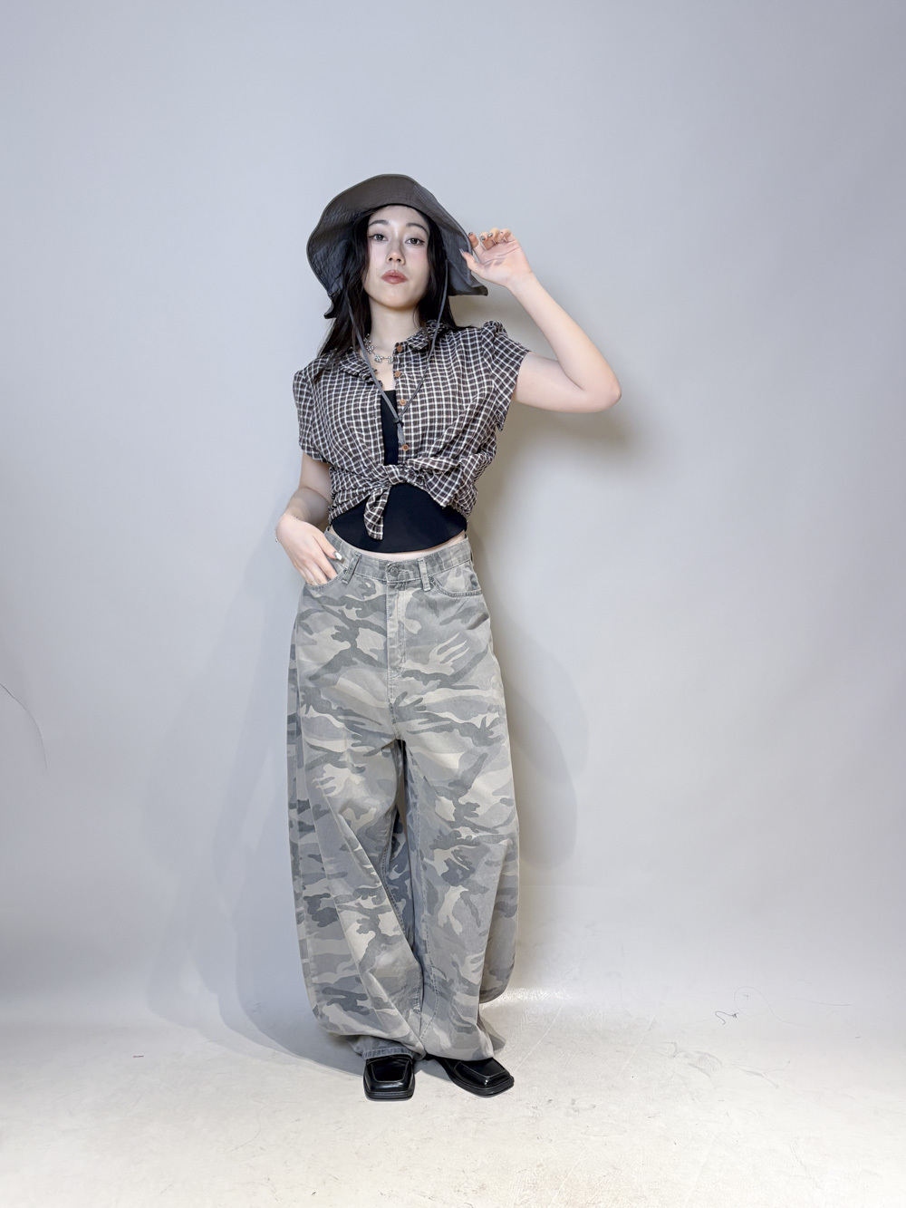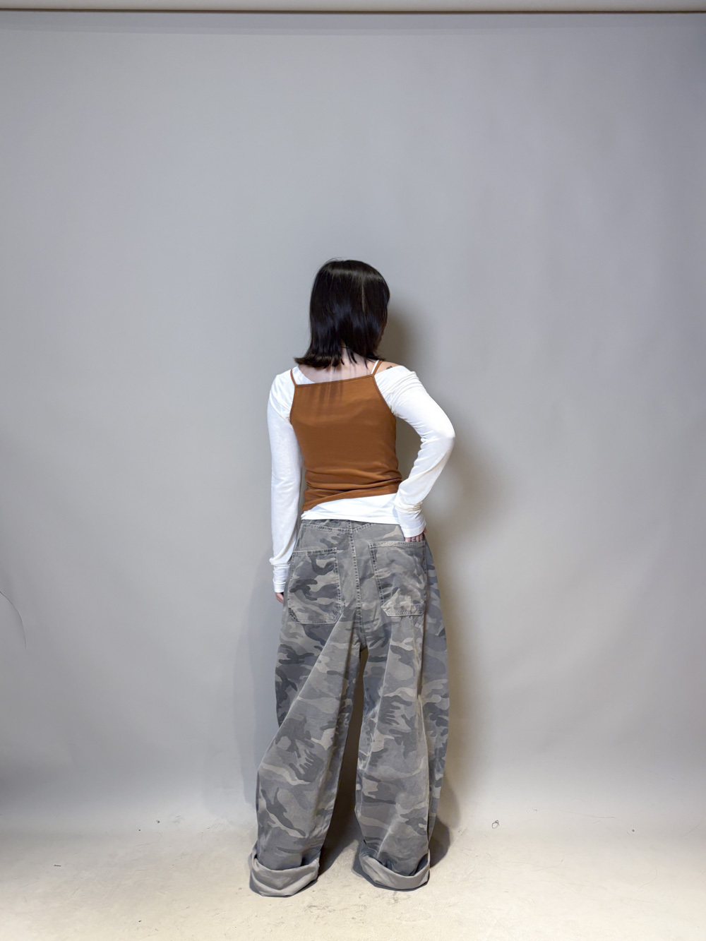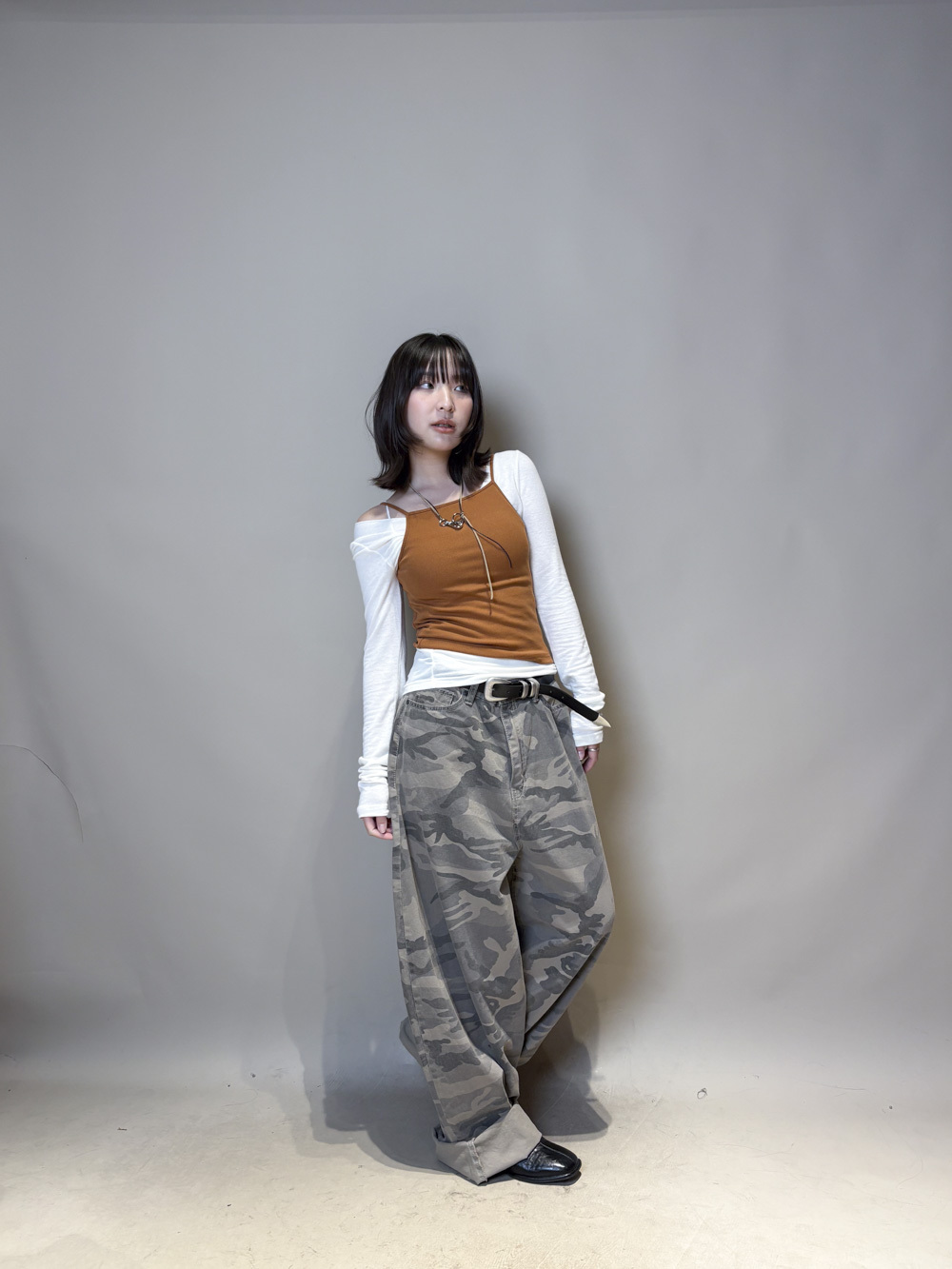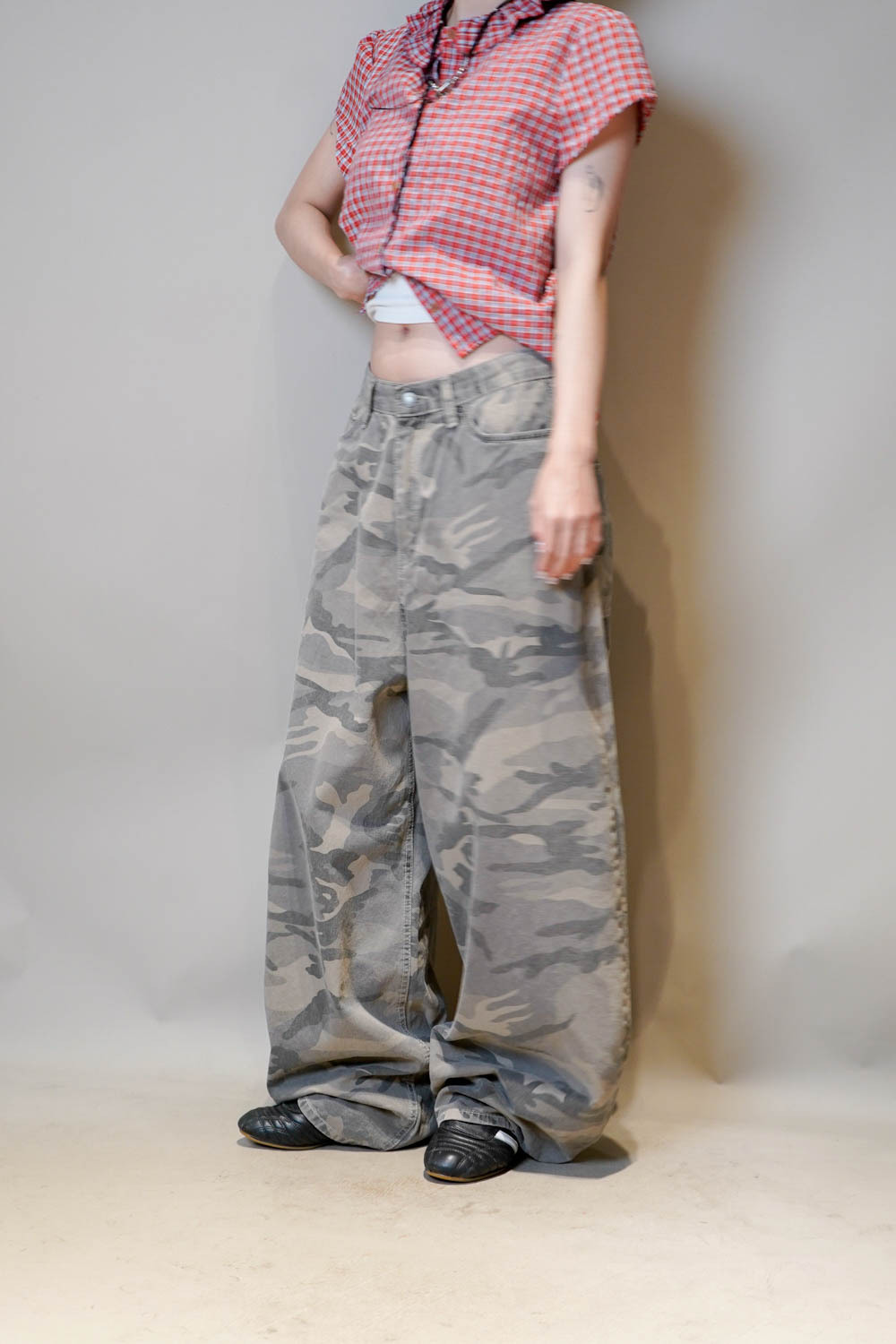 M: Waist: 76cm (29.5”) / Hip: 118cm (46”) / Rise: 38cm / Length: 110cm / Thigh: 78cm / Hem: 52cm