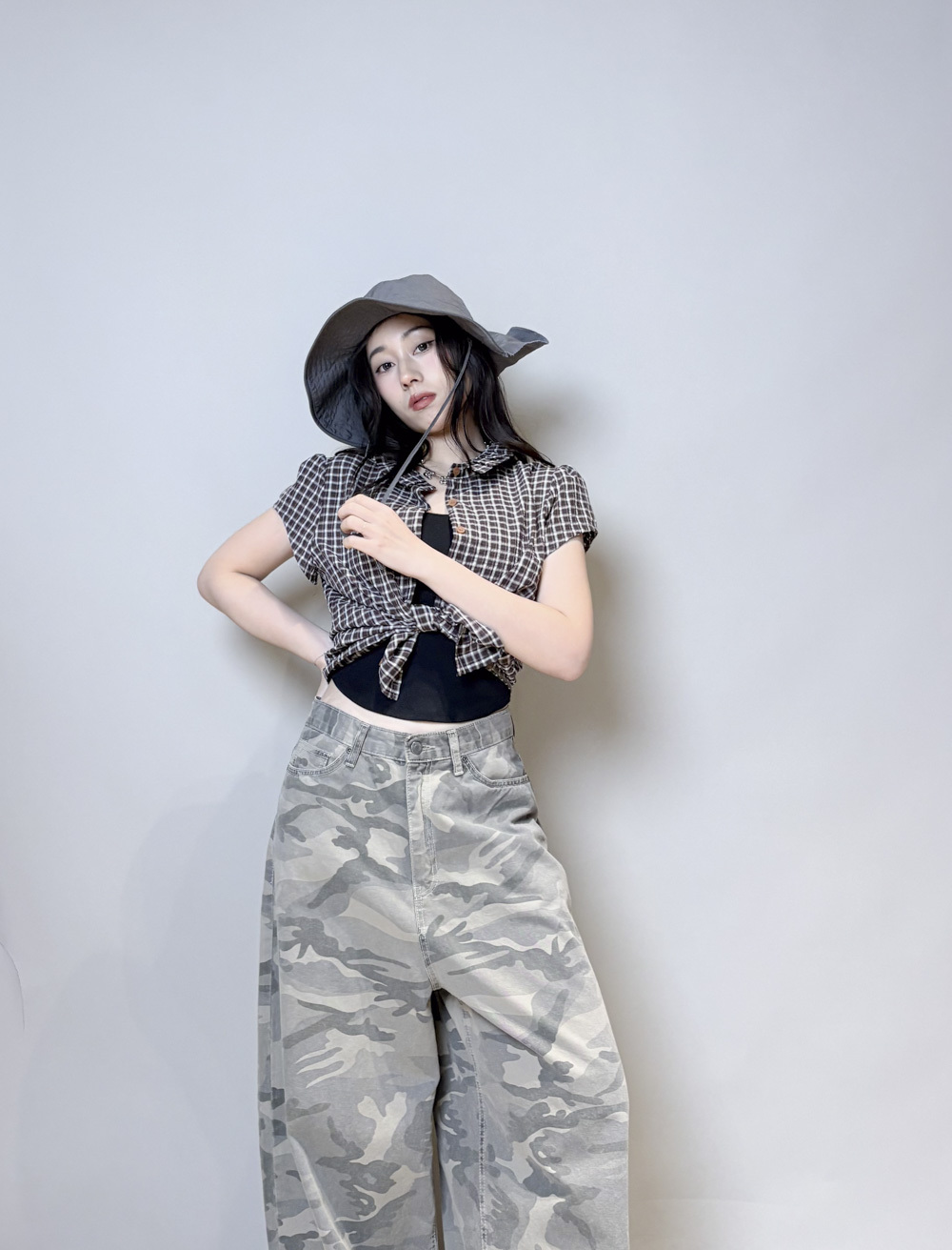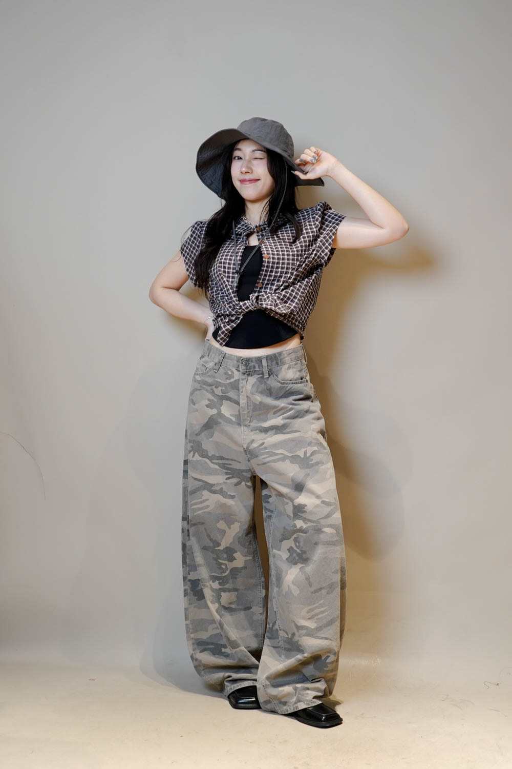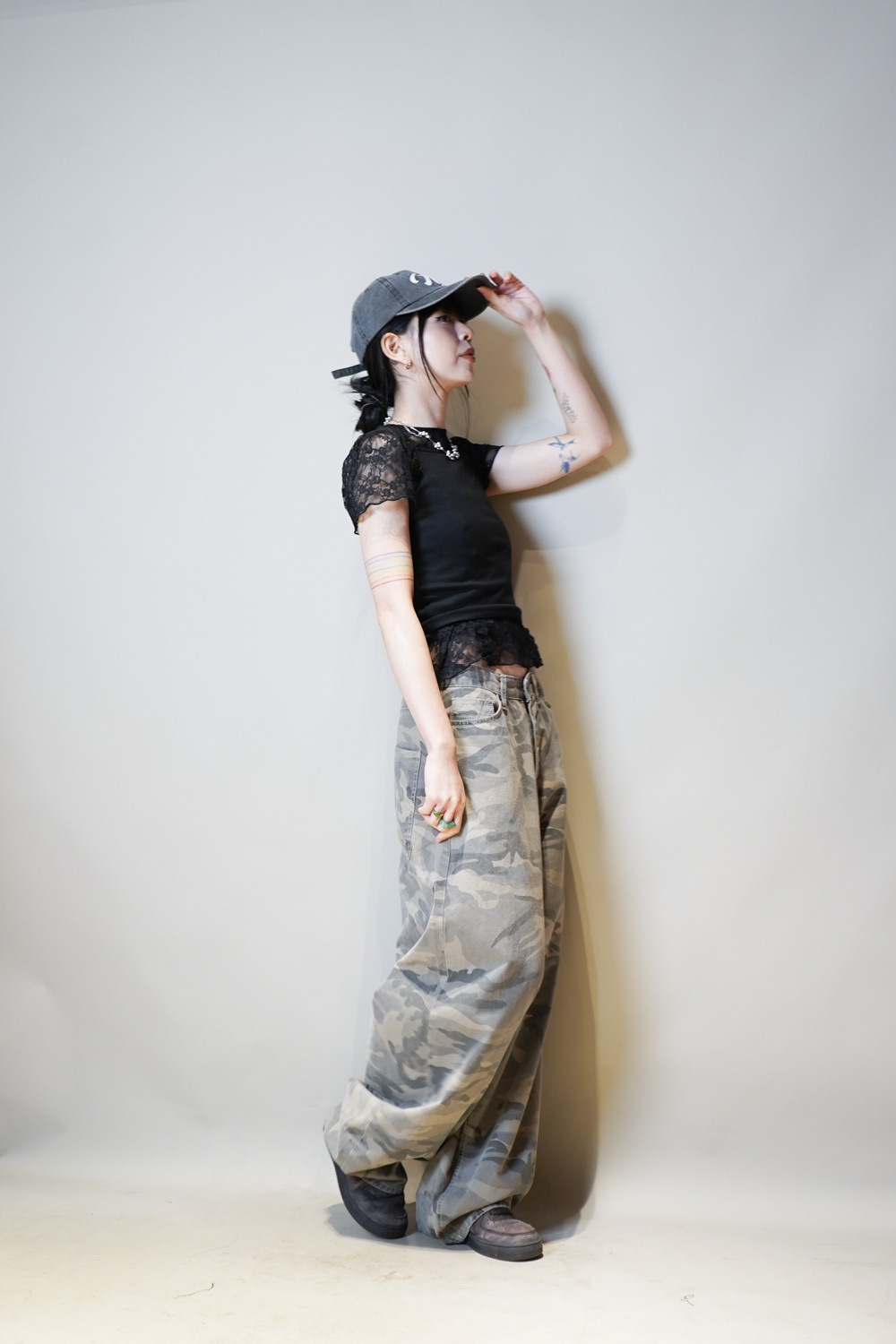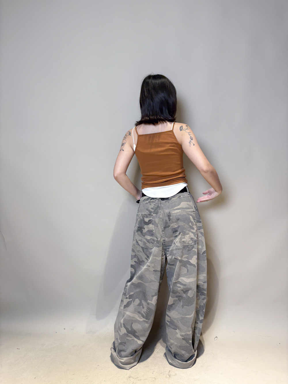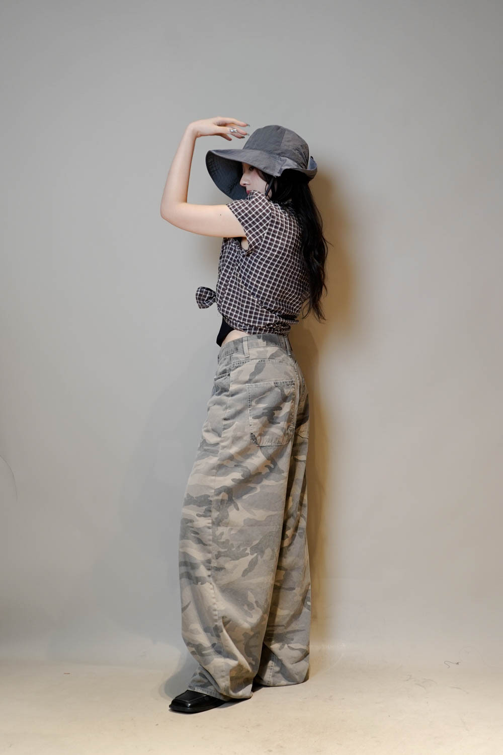 M: Waist: 76cm (29.5”) / Hip: 118cm (46”) / Rise: 38cm / Length: 110cm / Thigh: 78cm / Hem: 52cm