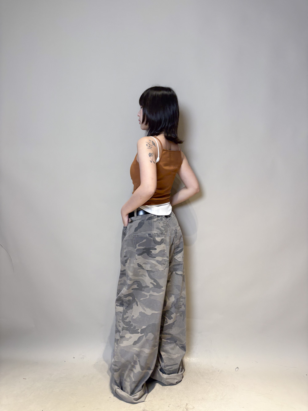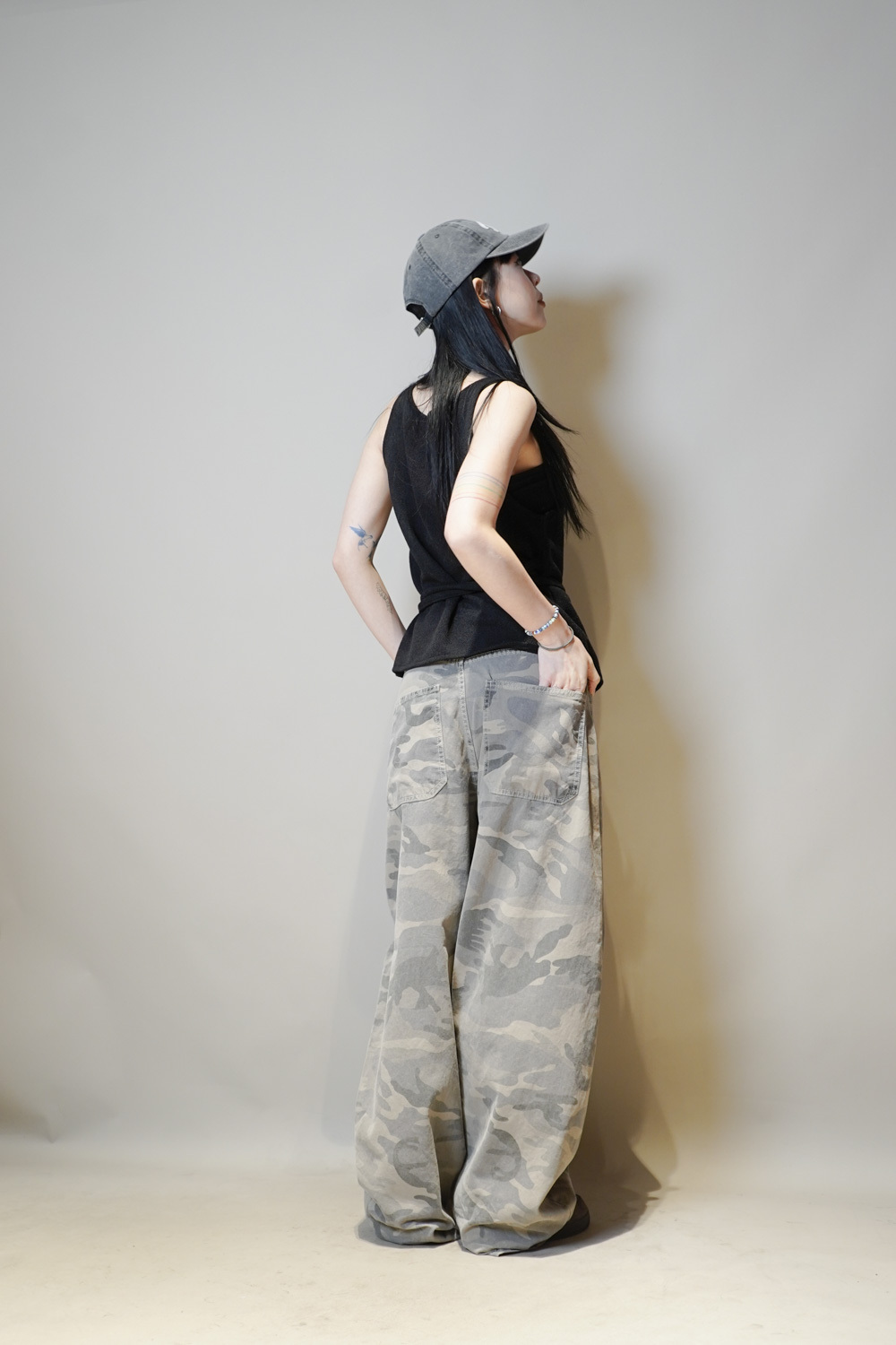 L:Waist: 80cm (31”) / Hip: 122cm (48”) / Rise: 41cm / Length: 112cm / Thigh: 80cm / Hem: 56cm