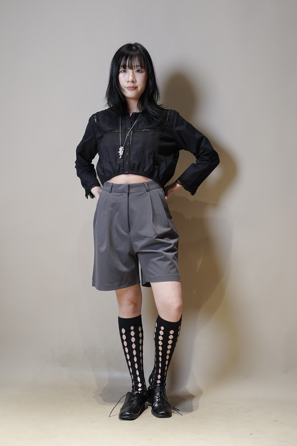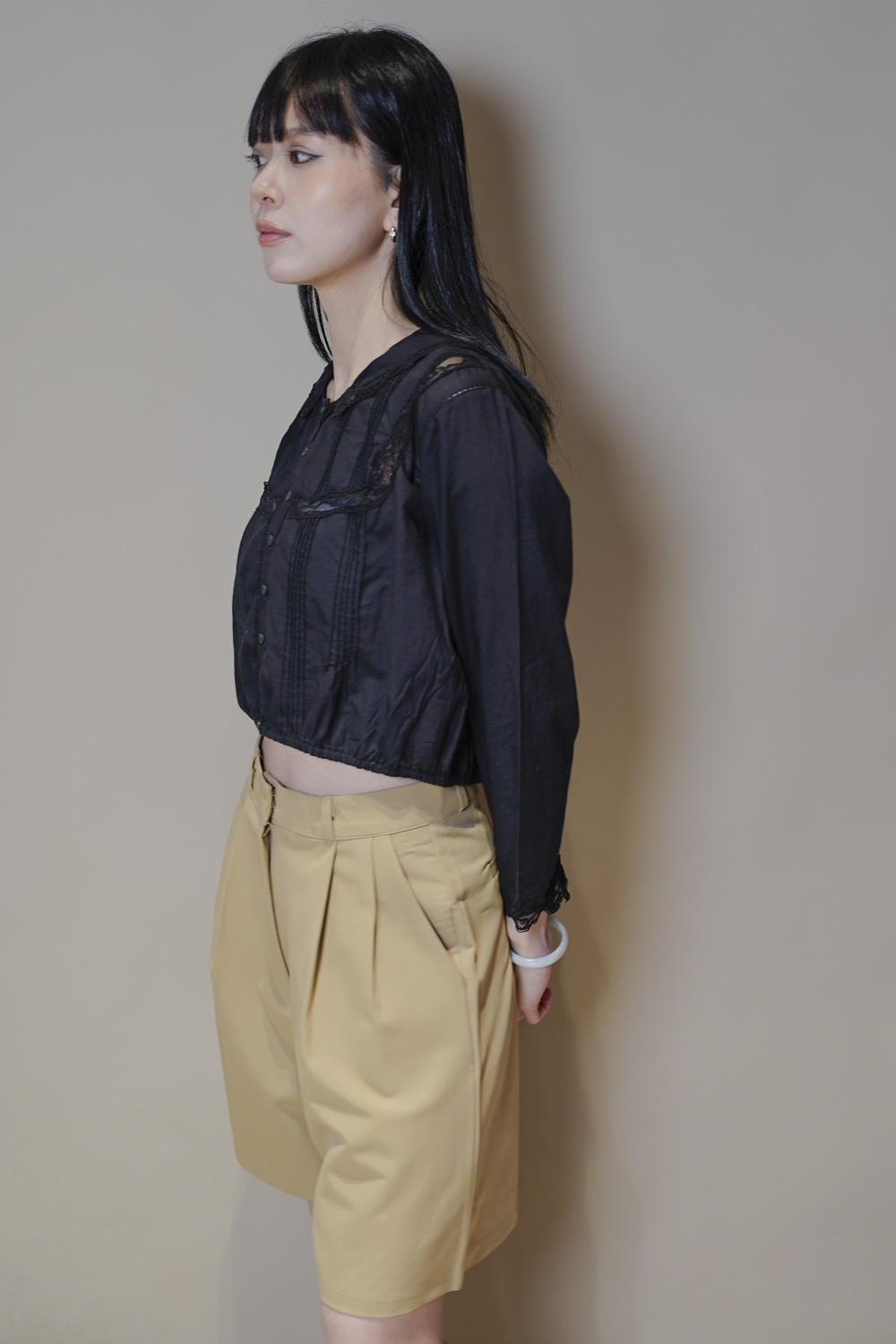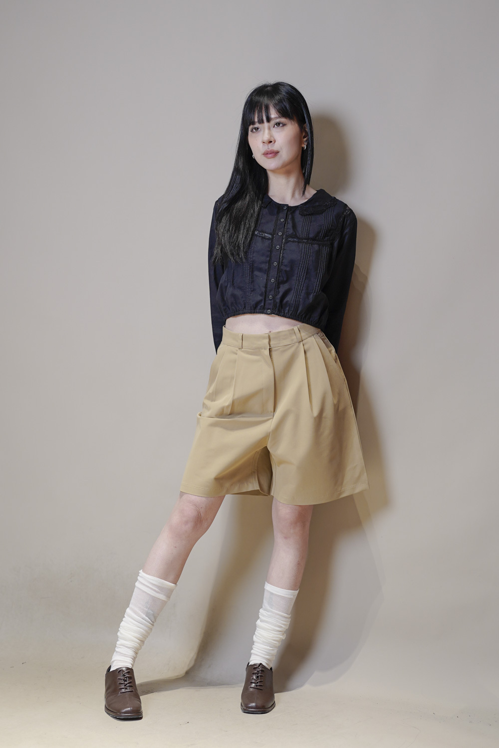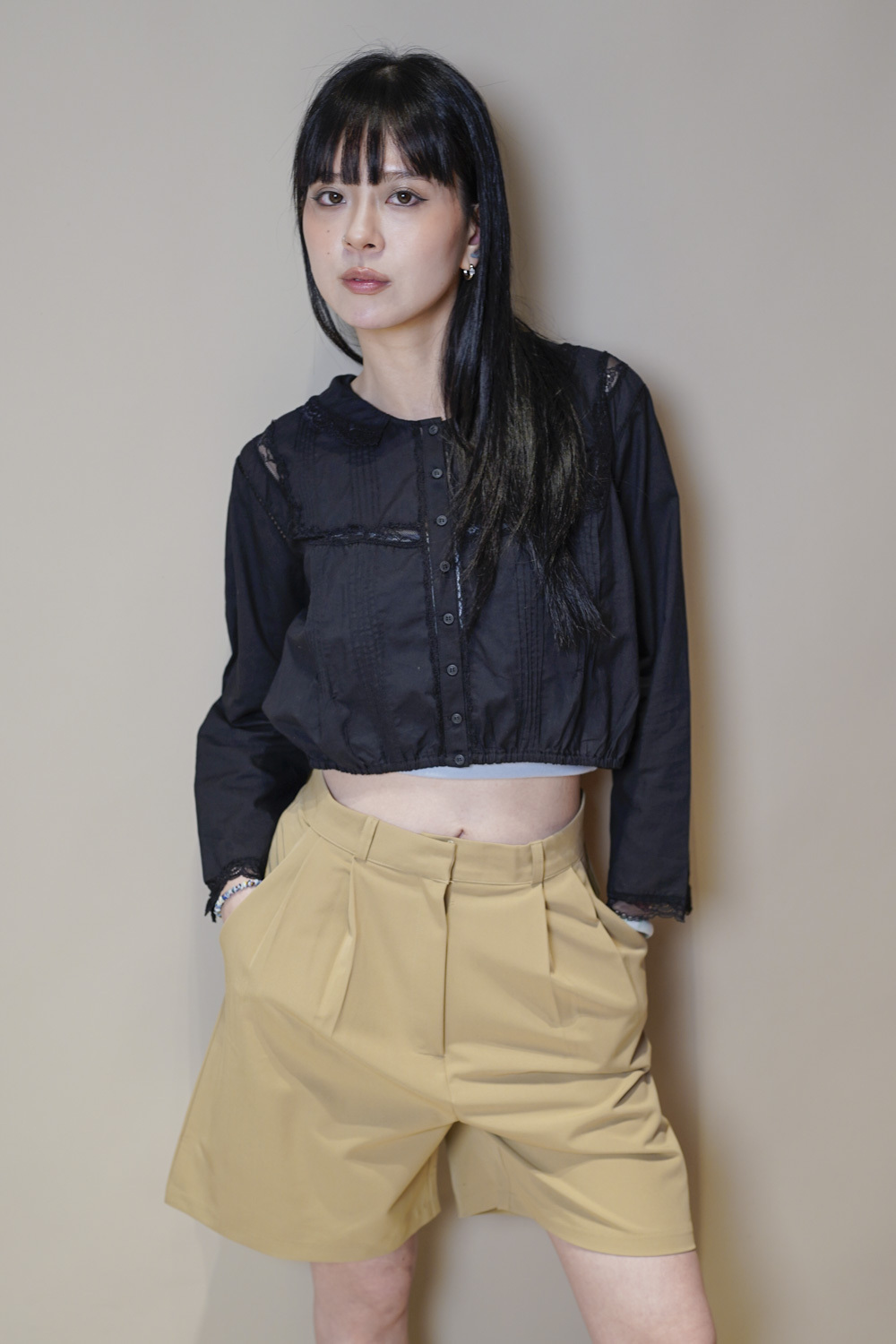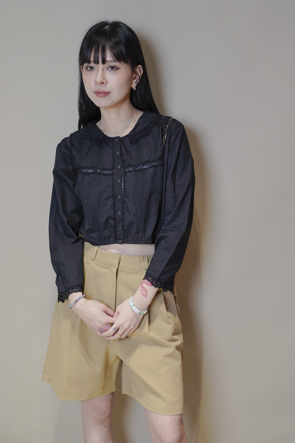 乖巧通花搭配短版設計 / 搭配高腰下身可修飾比例