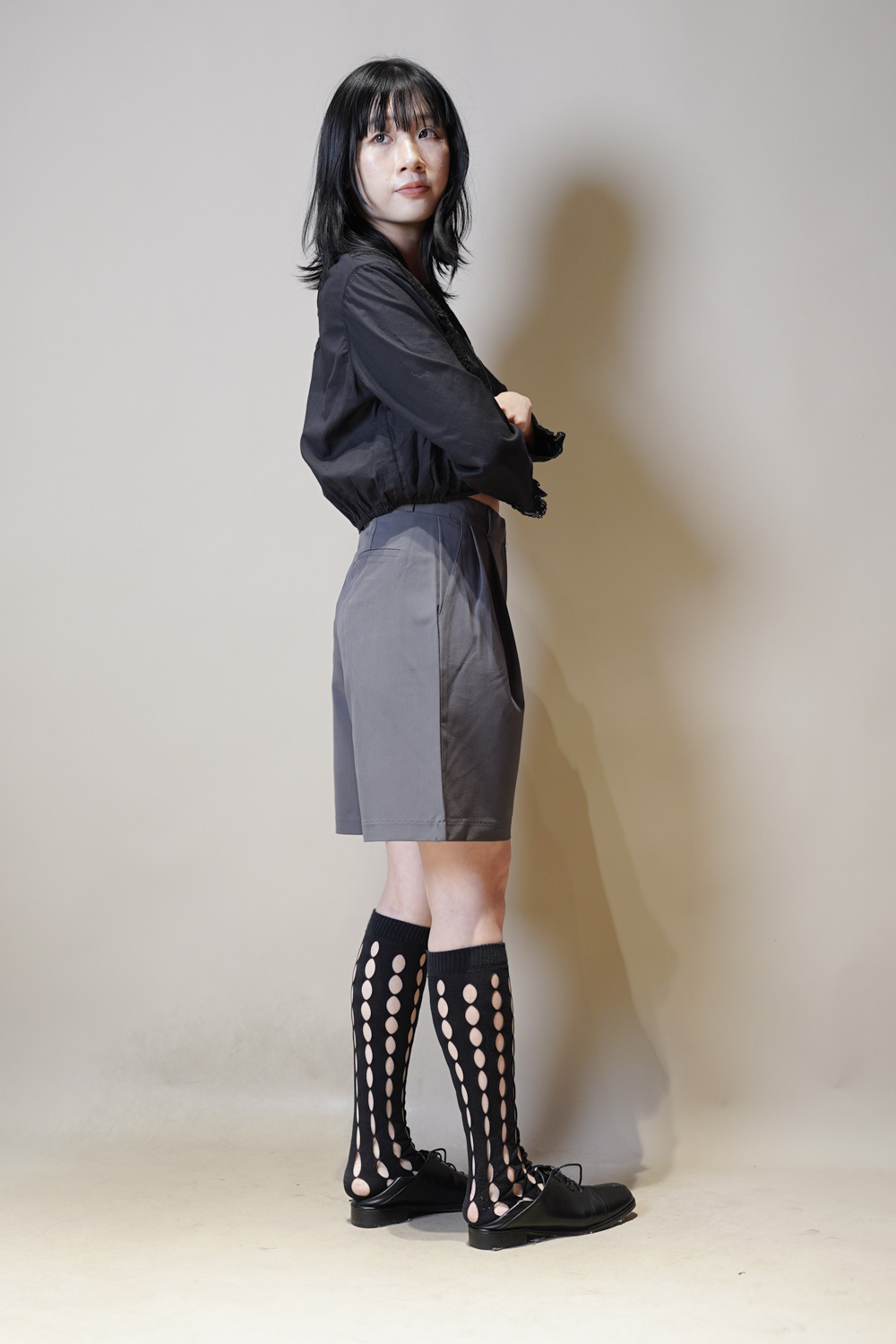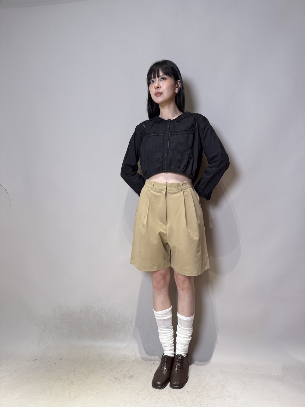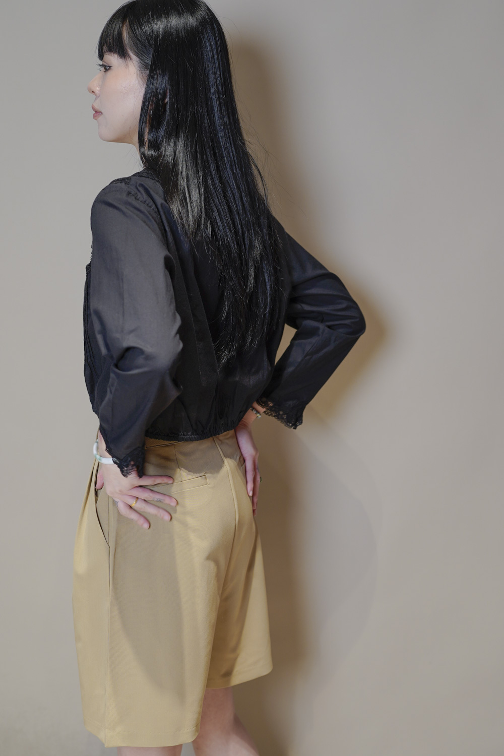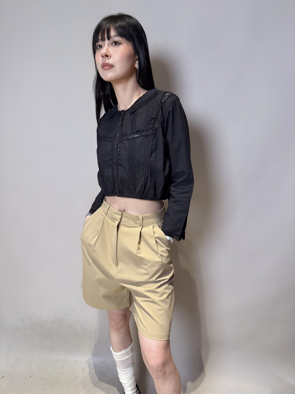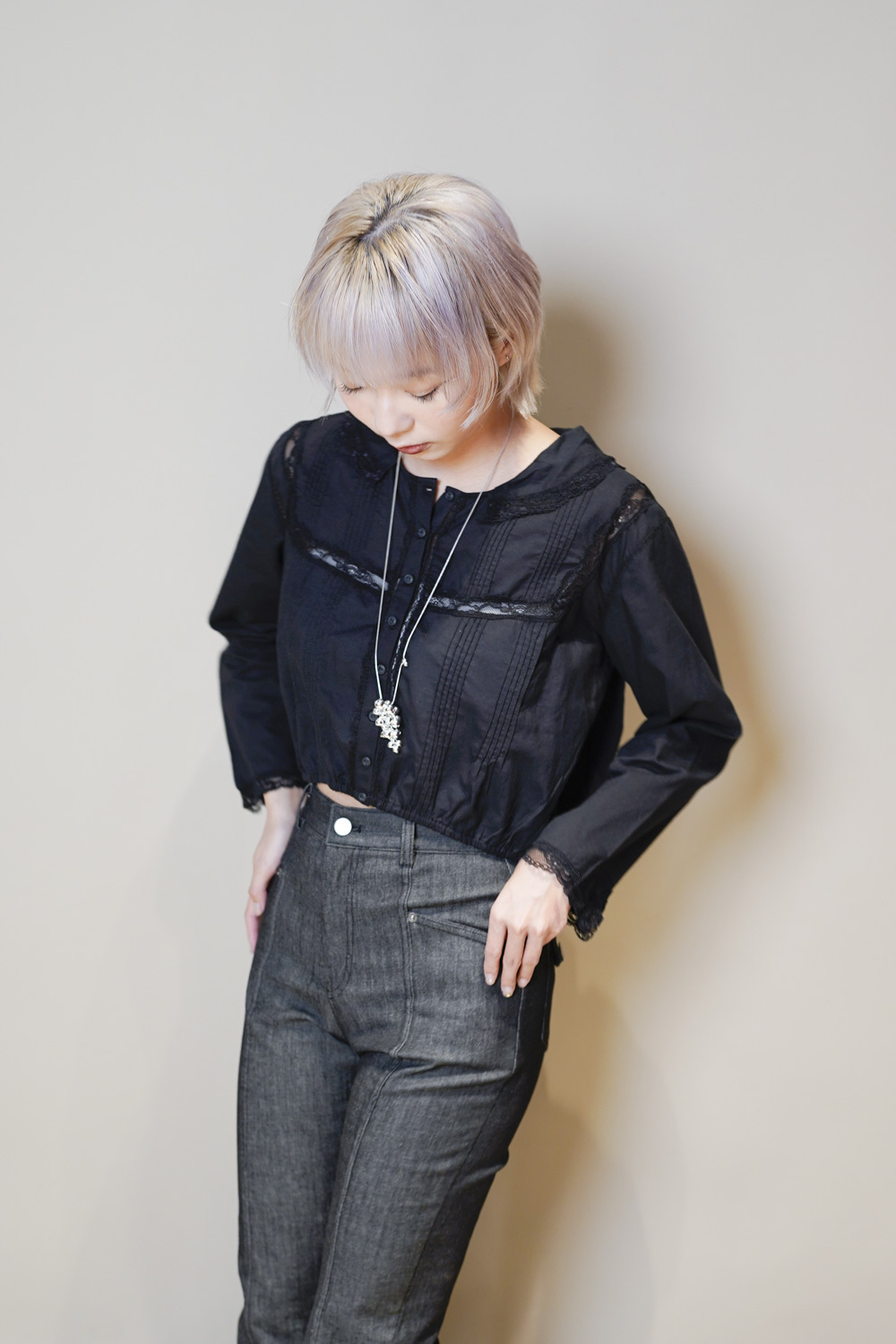 乖巧通花搭配短版設計 / 搭配高腰下身可修飾比例