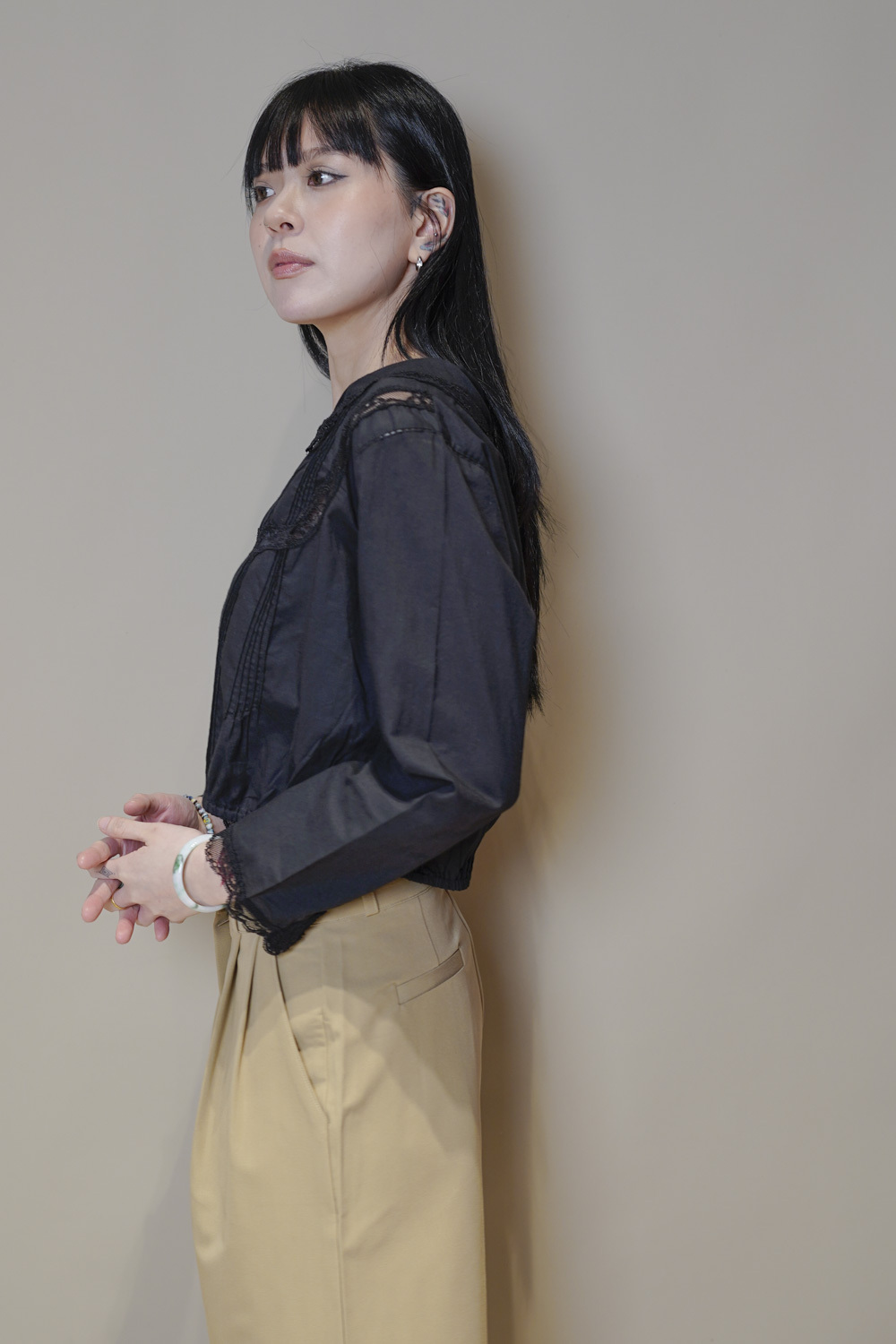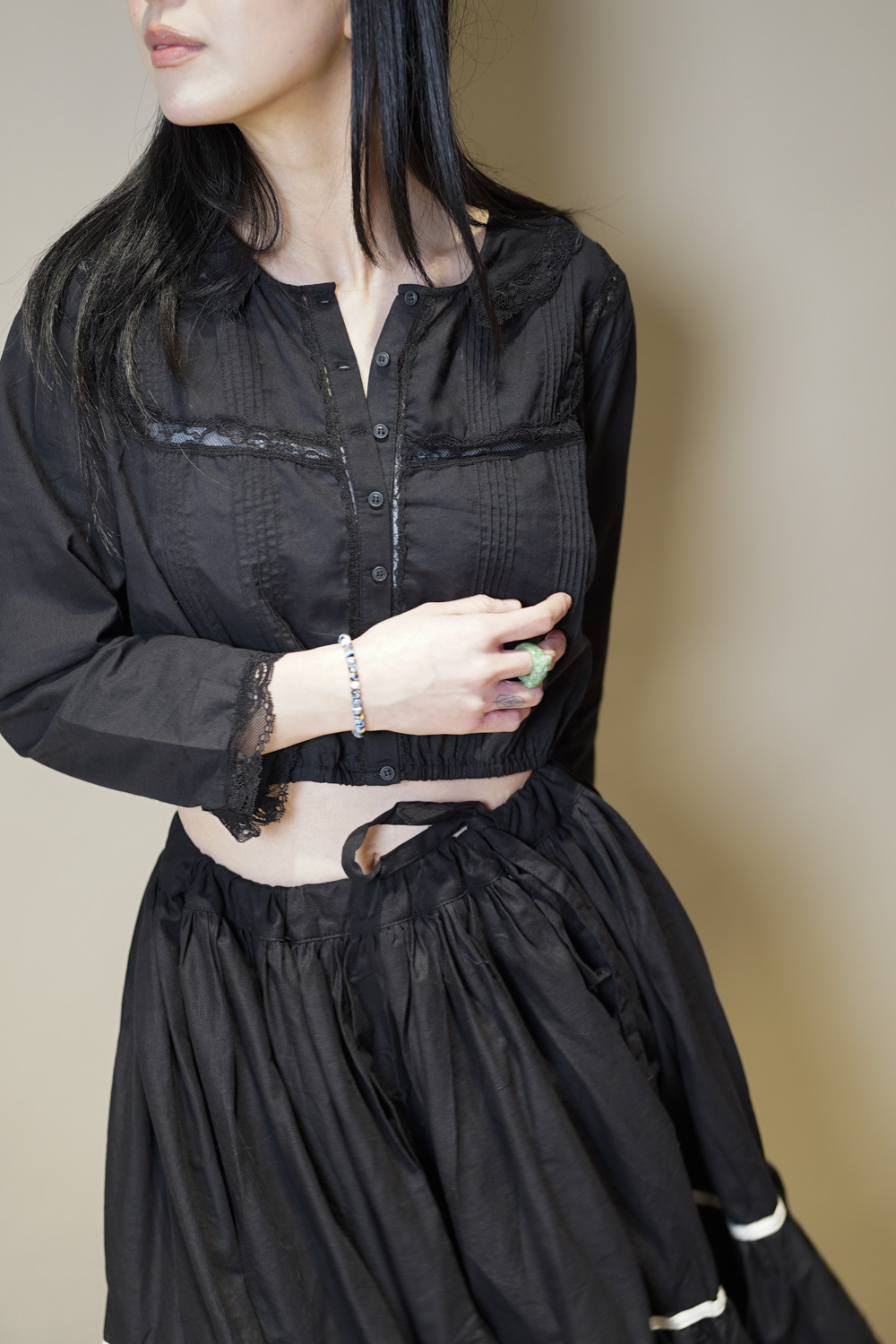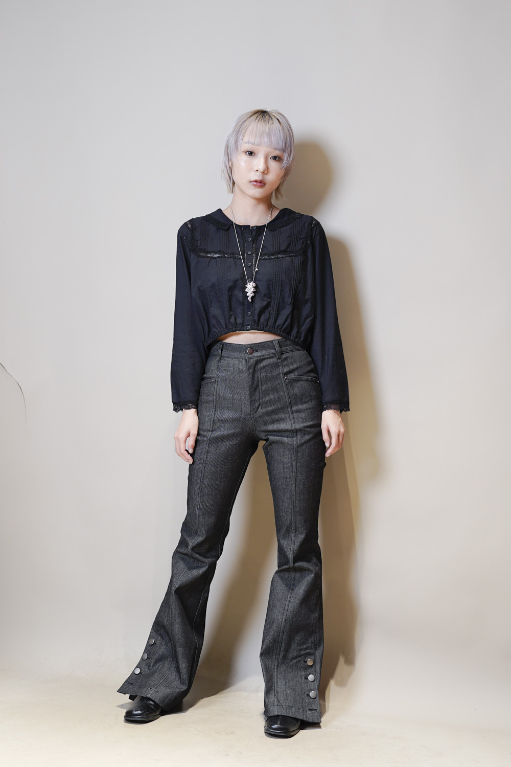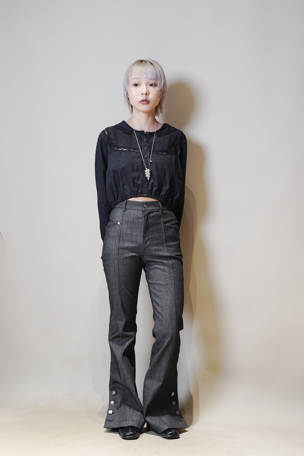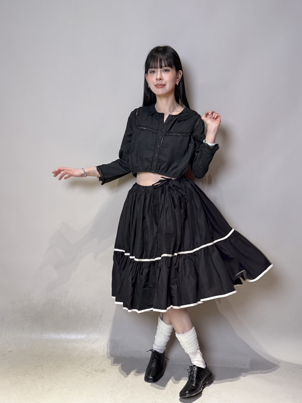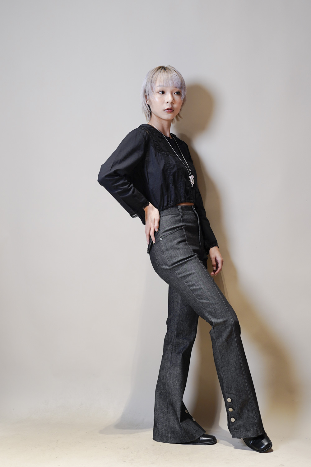 乖巧通花搭配短版設計 / 搭配高腰下身可修飾比例