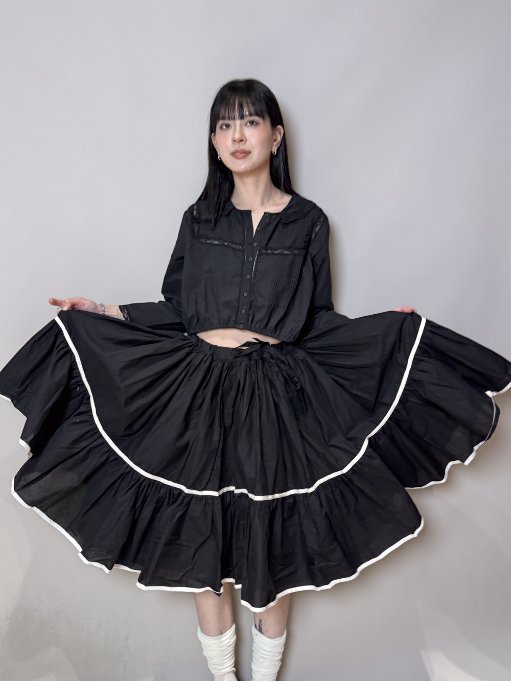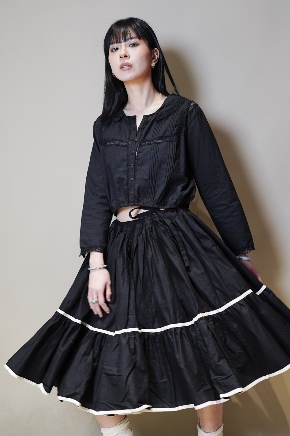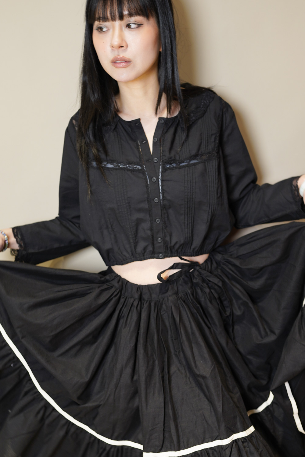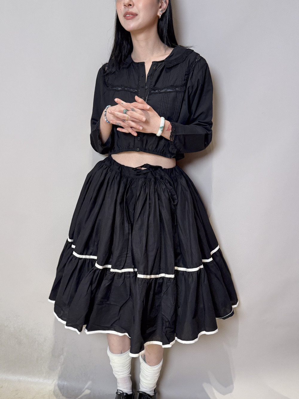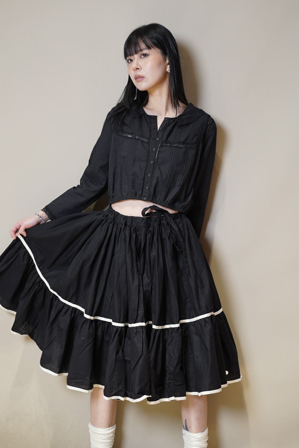 乖巧通花搭配短版設計 / 搭配高腰下身可修飾比例