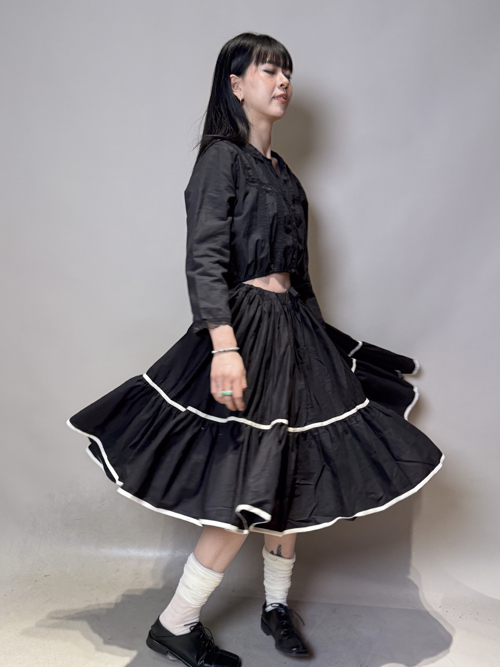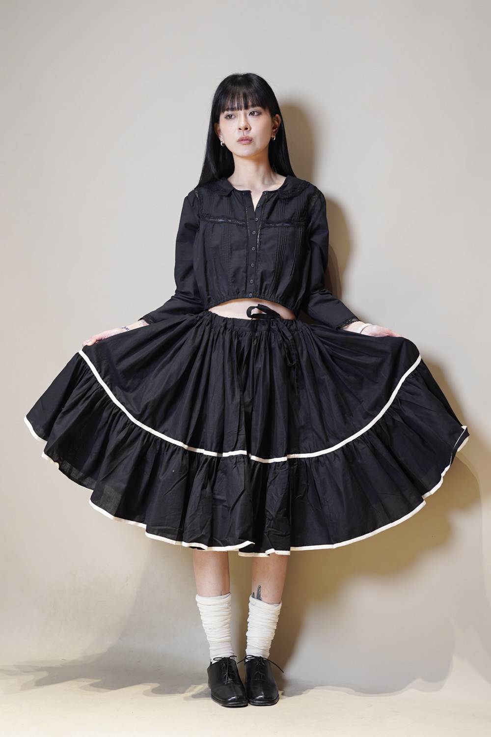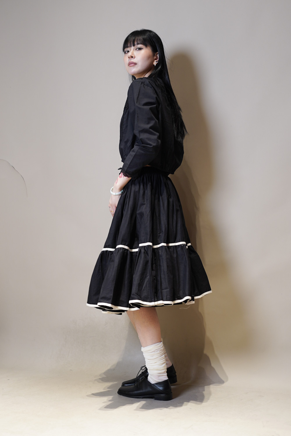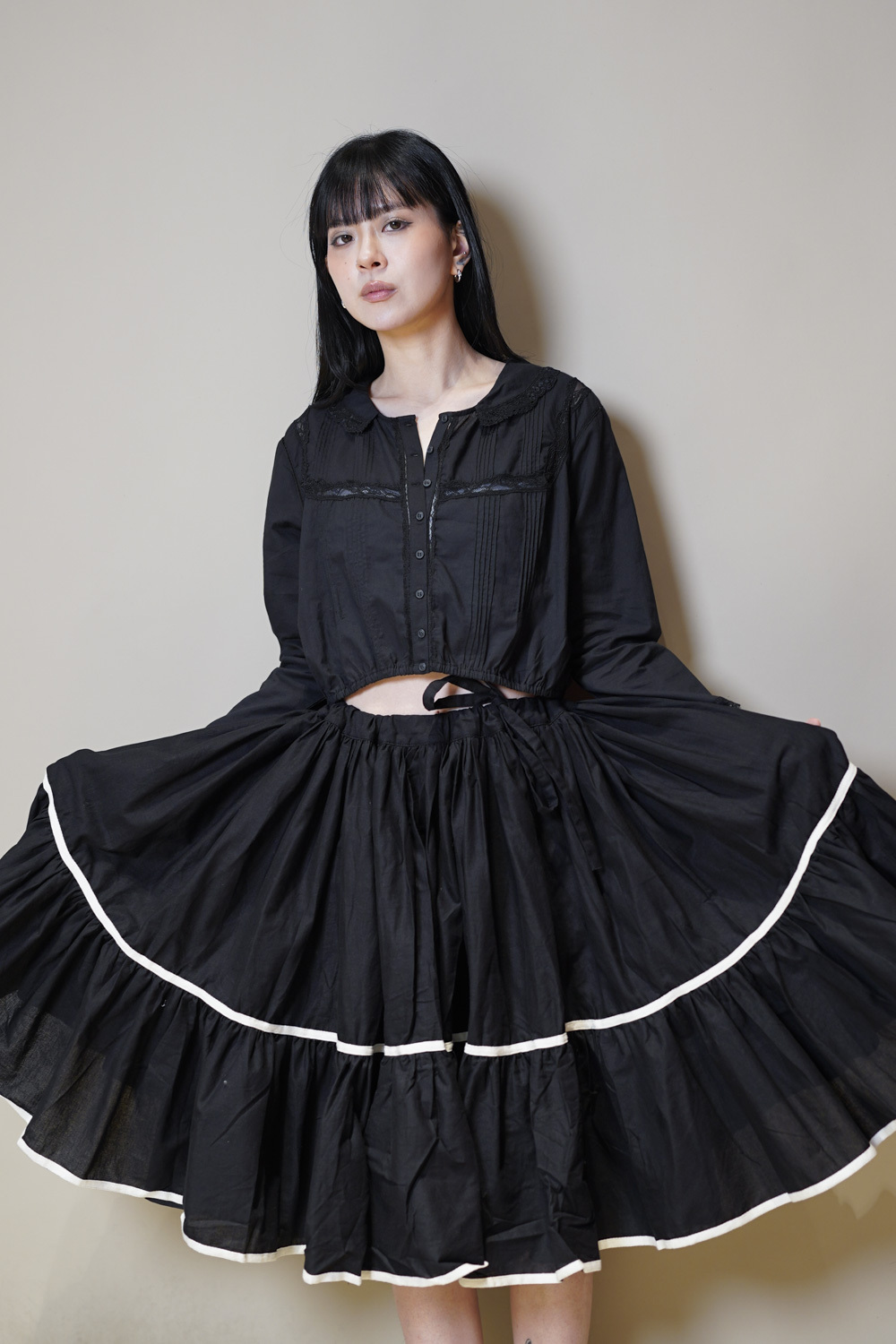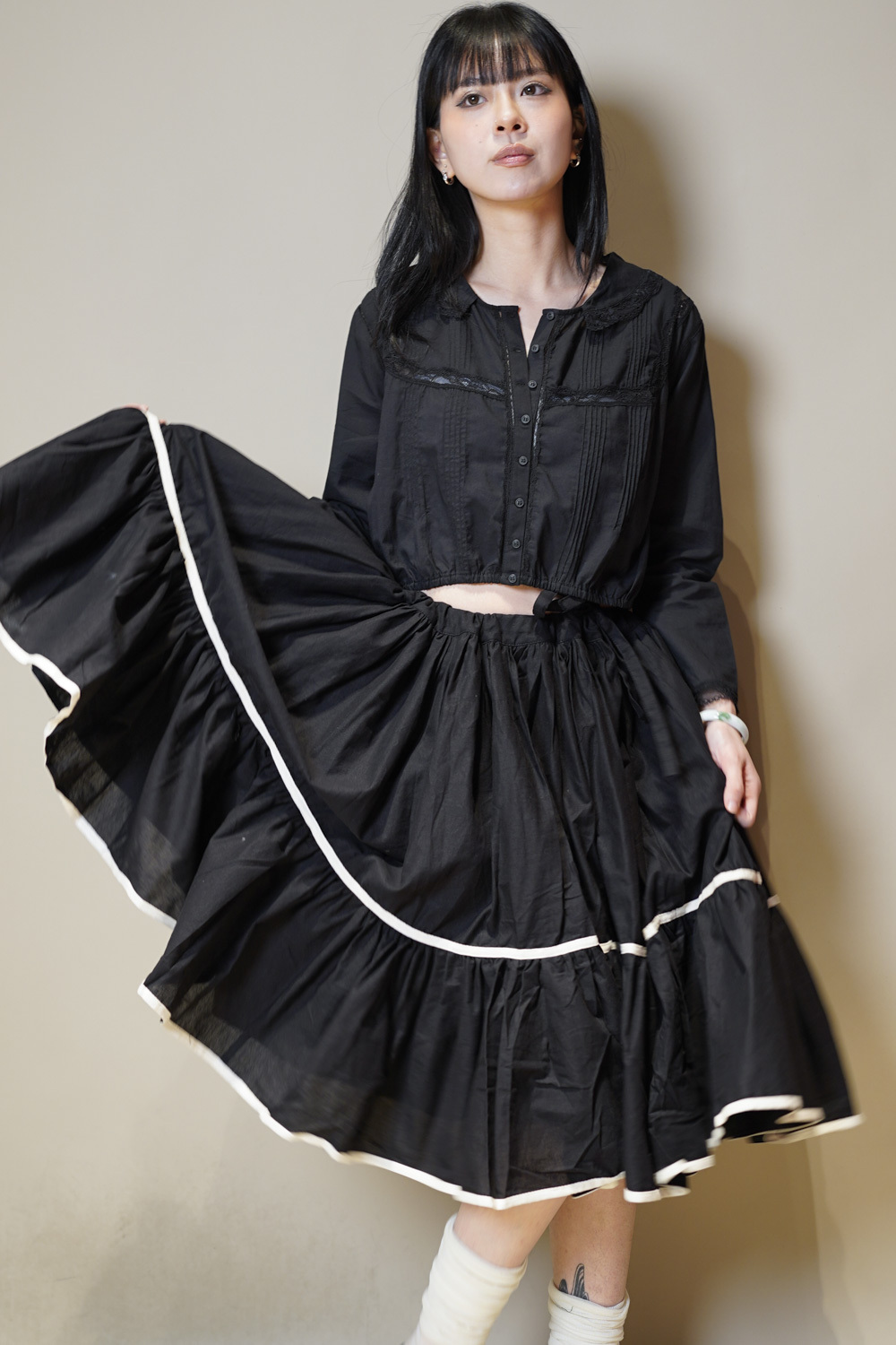 乖巧通花搭配短版設計 / 搭配高腰下身可修飾比例