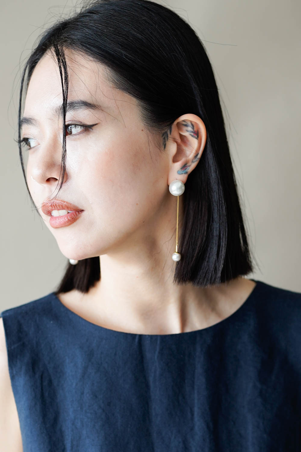 經典氣質款 / 長款珍珠耳環 修飾面形/ 優雅秀氣 / 不宜長期沾水 / 鈦合金耳針低敏感度