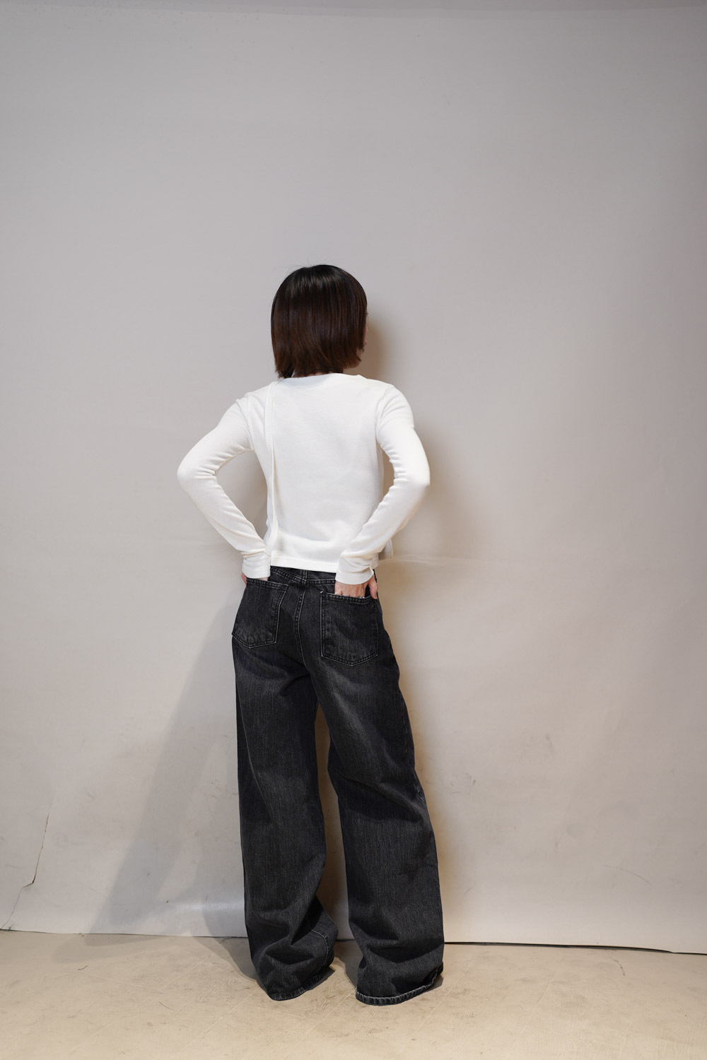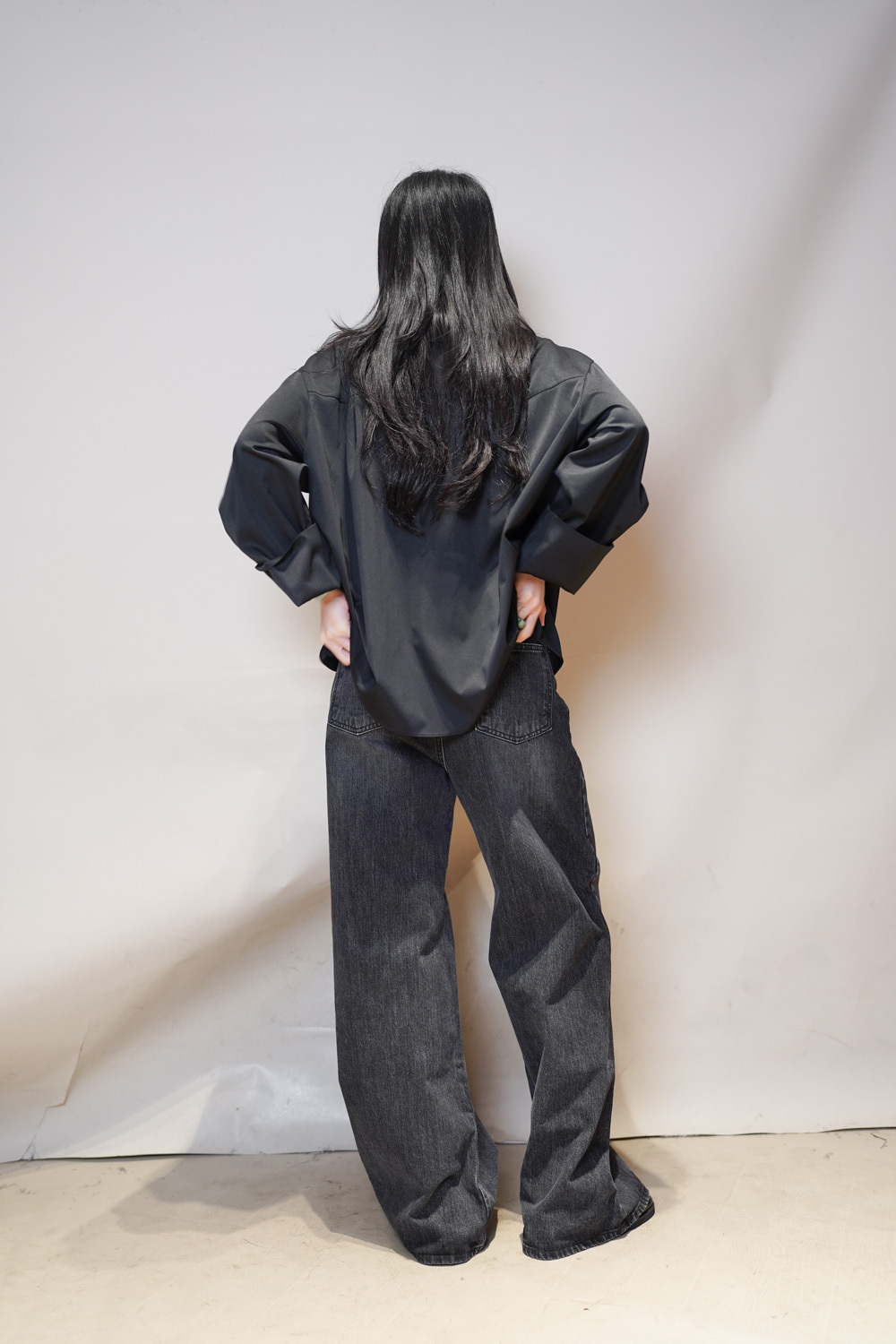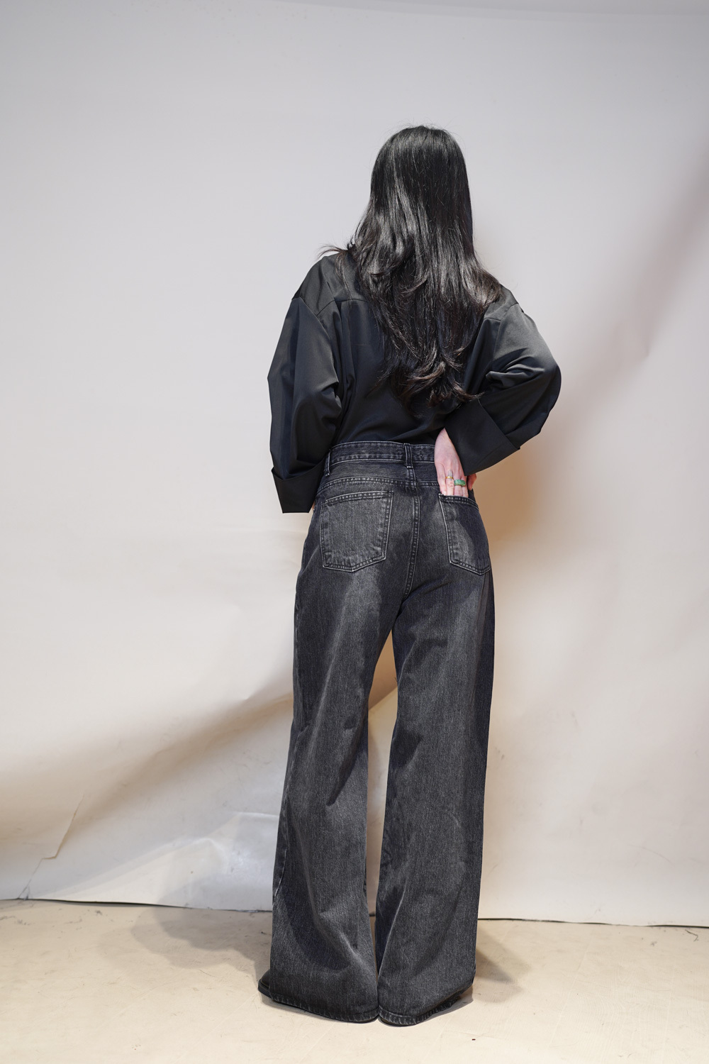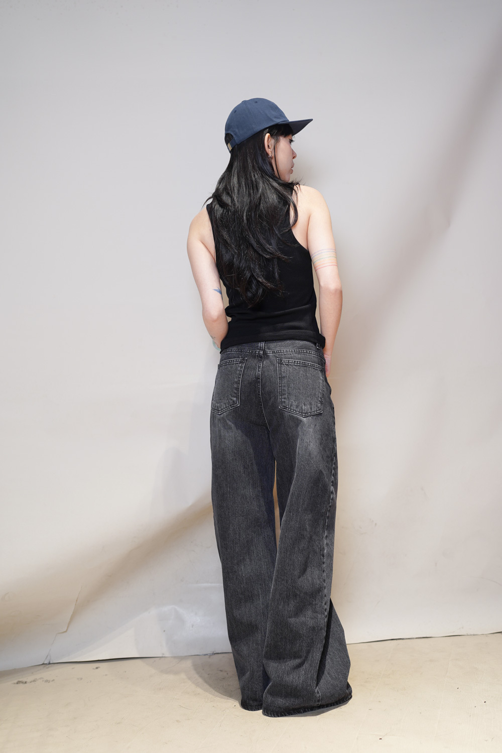 M: Waist: 72cm (28.5”) / Hip: 100cm (40”) / Rise: 33cm / Thigh: 64cm / Hem: 62cm / Length: 106cm