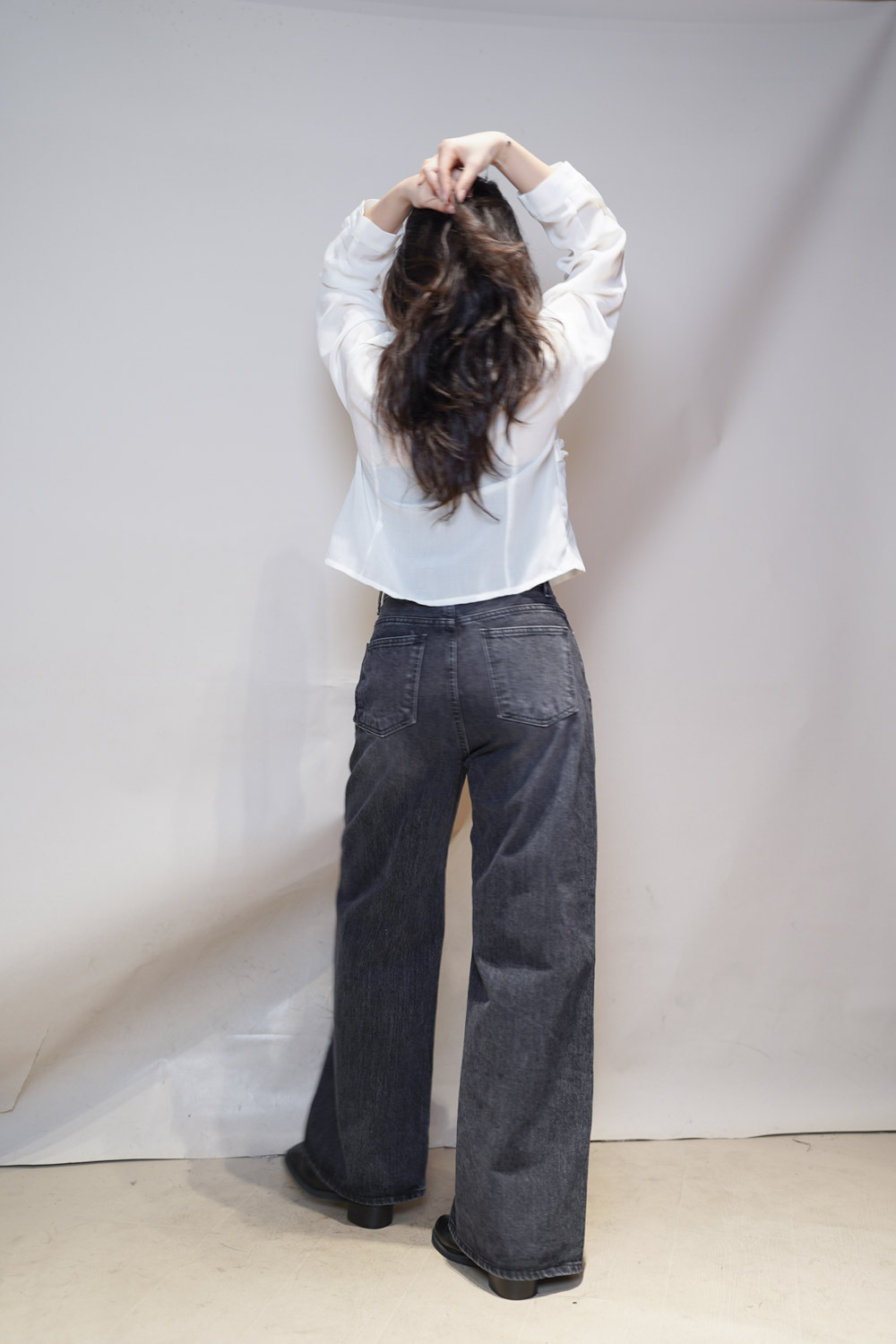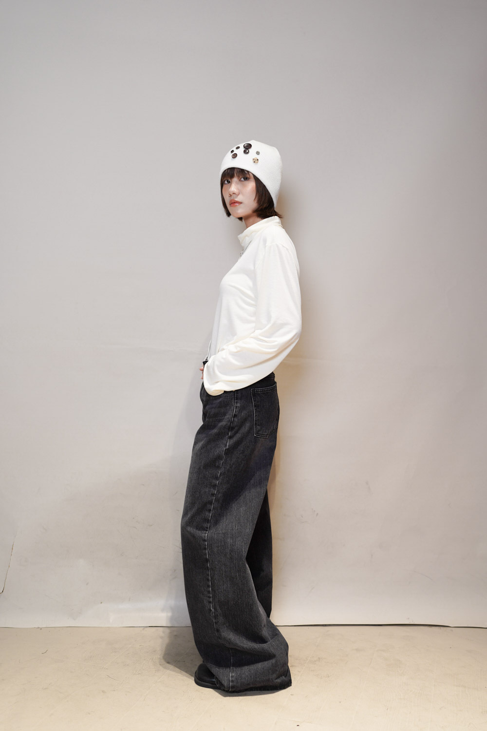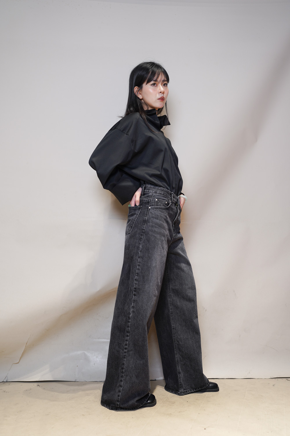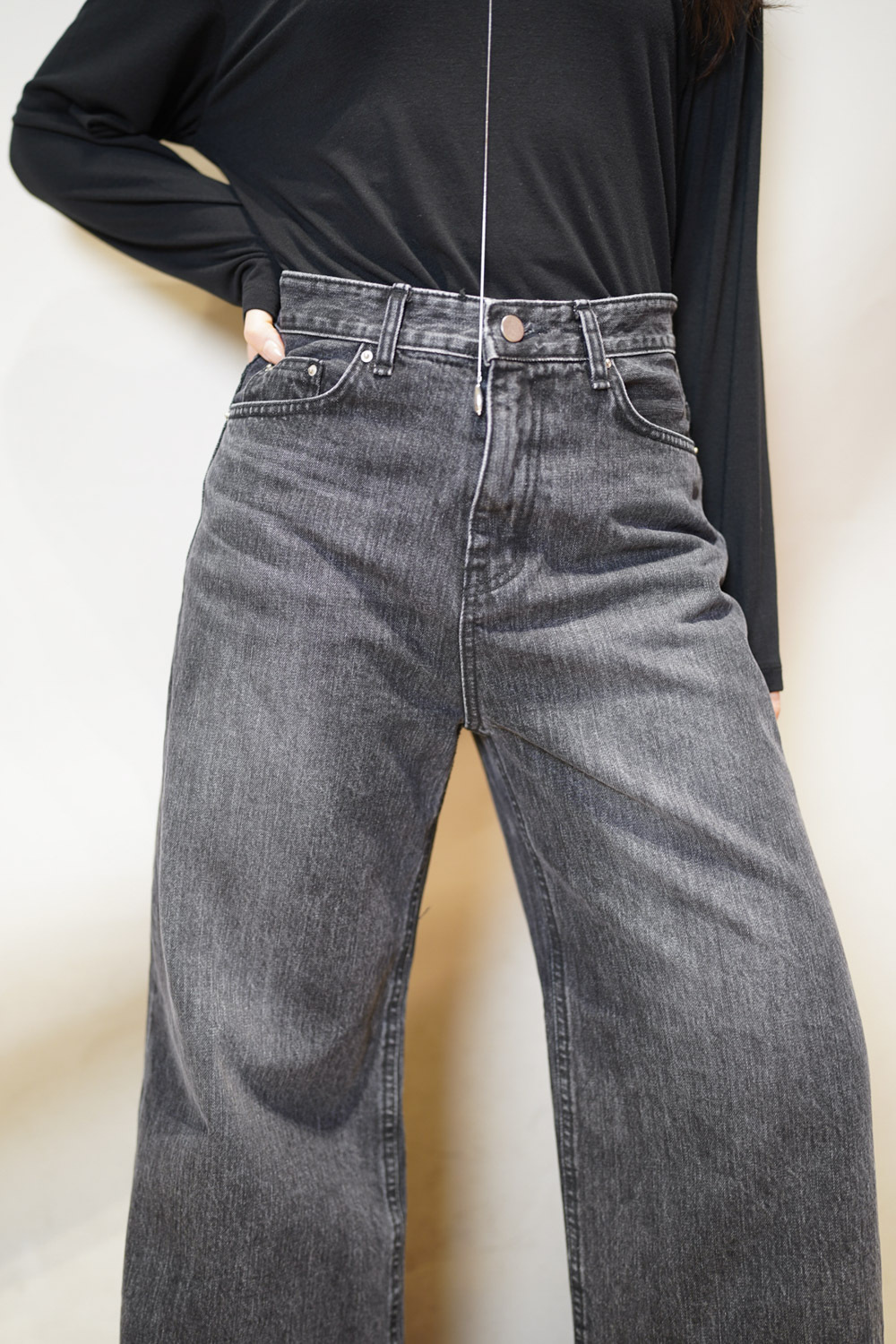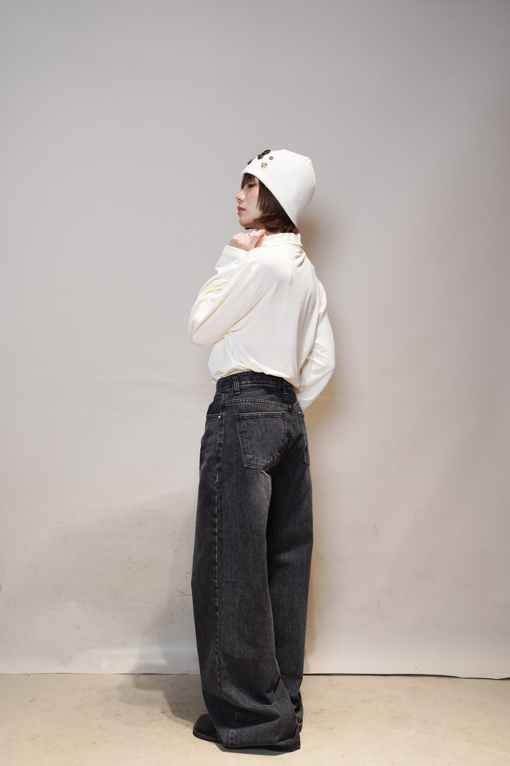 M: Waist: 72cm (28.5”) / Hip: 100cm (40”) / Rise: 33cm / Thigh: 64cm / Hem: 62cm / Length: 106cm